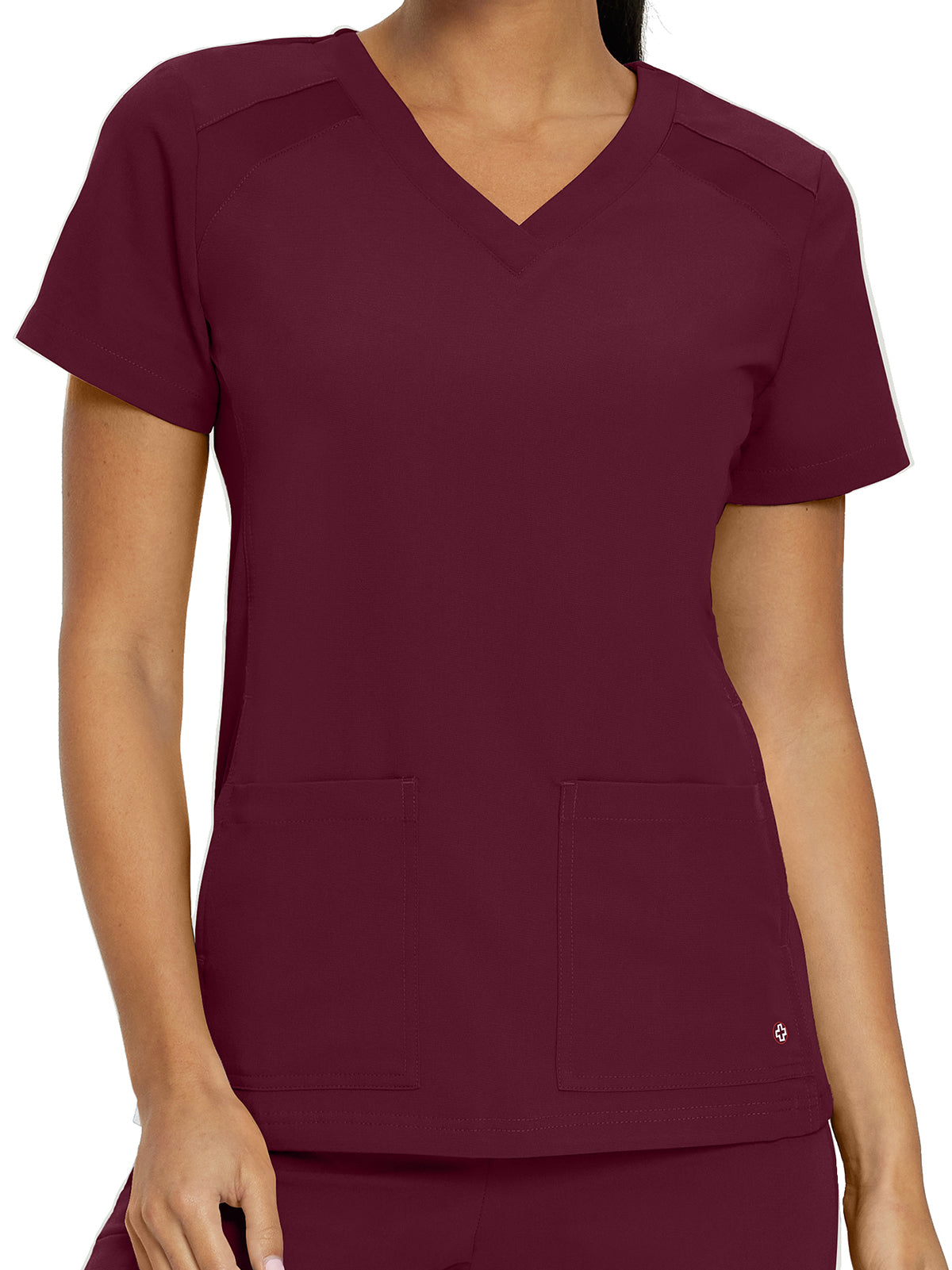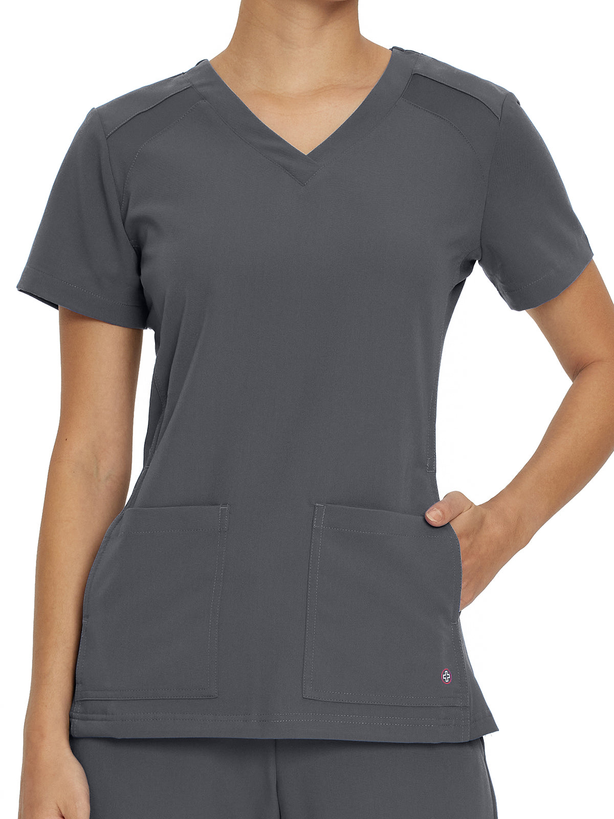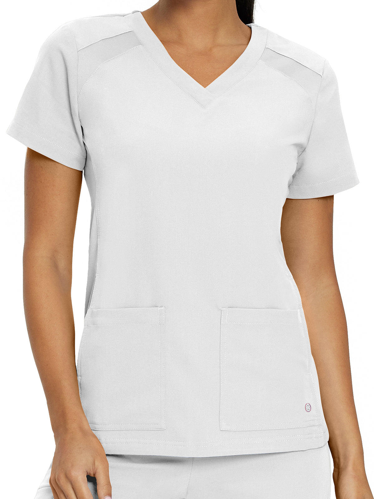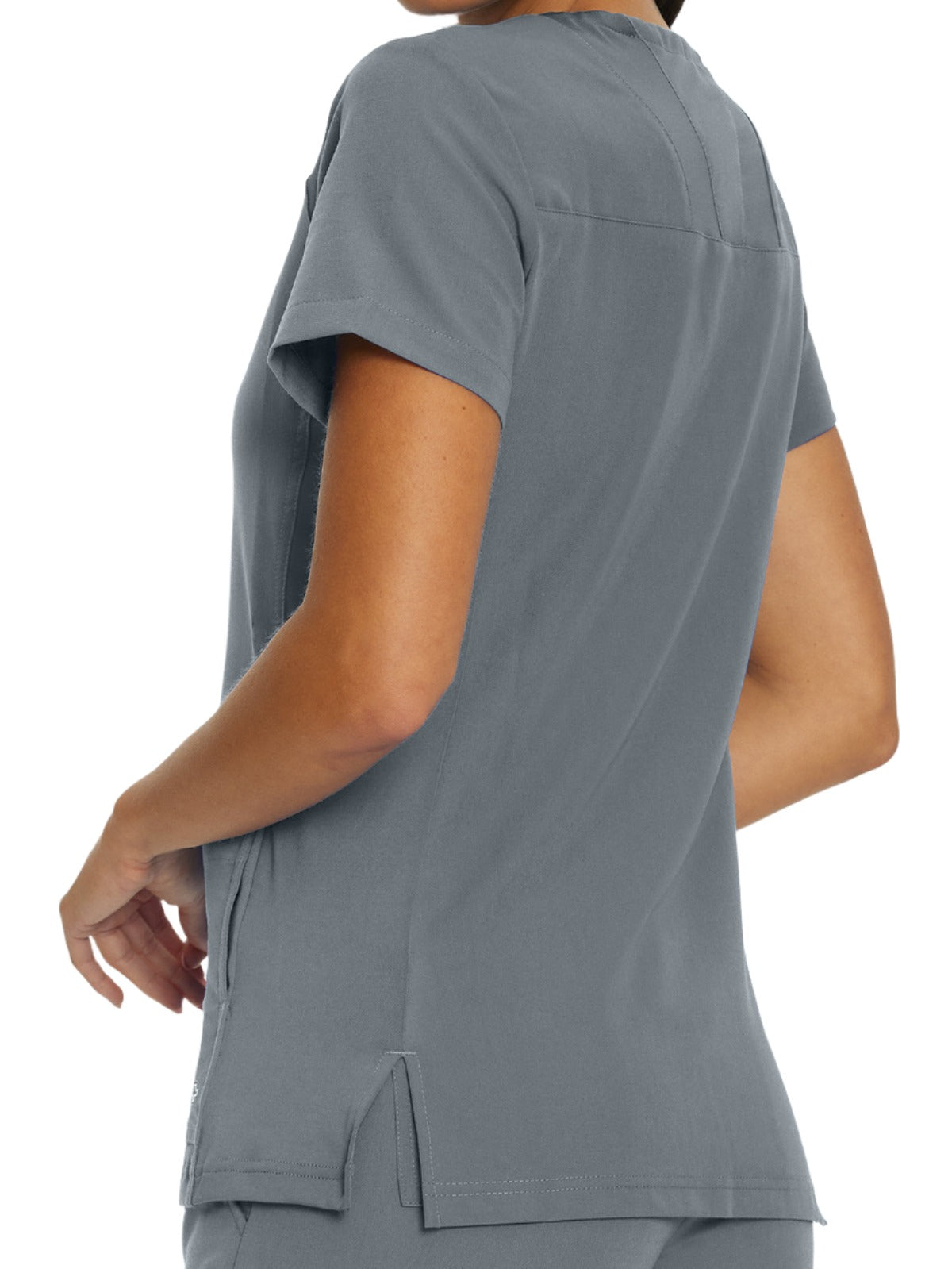 At White Cross, we know that healthcare professionals are often called upon to be exceptional, which is why we make our garments exceptional too. The V-Tess women's 4-pocket V-neck scrub top is fade resistant and wrinkle resistant with a jersey-knit front and back yoke for ventilation. This top also has front and back princess seams for feminine shaping, side vents for extra ease of movement, and a super stretch.