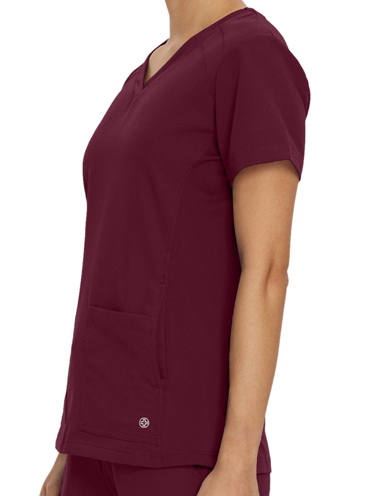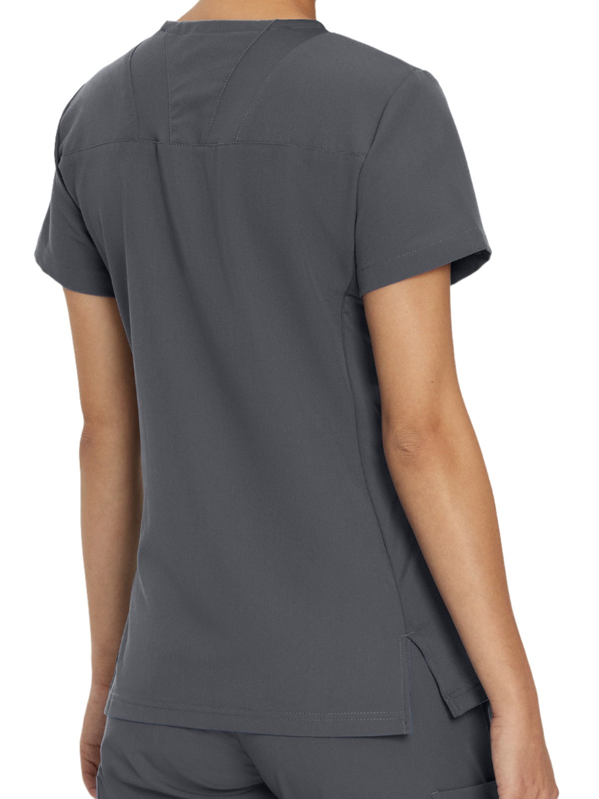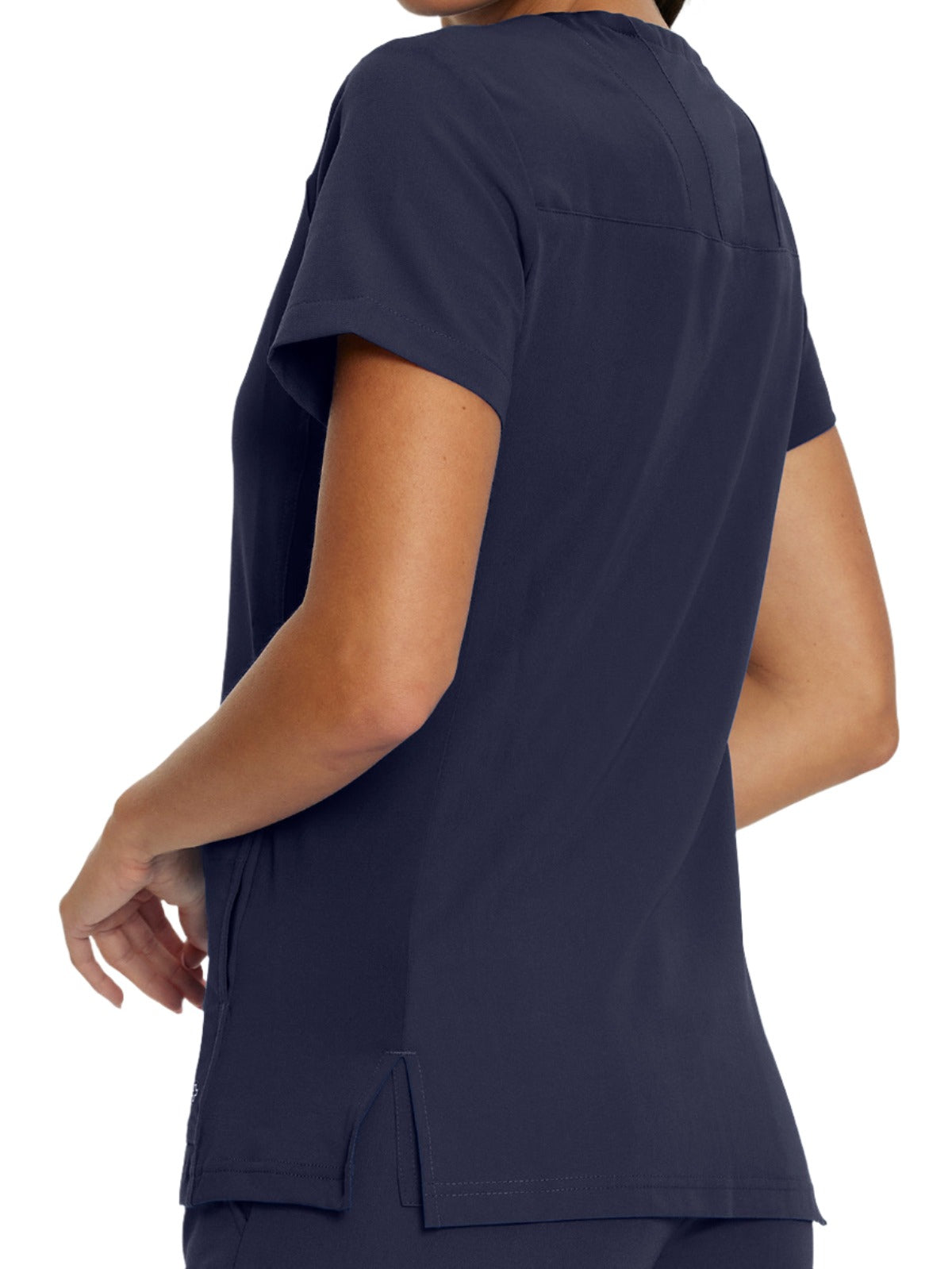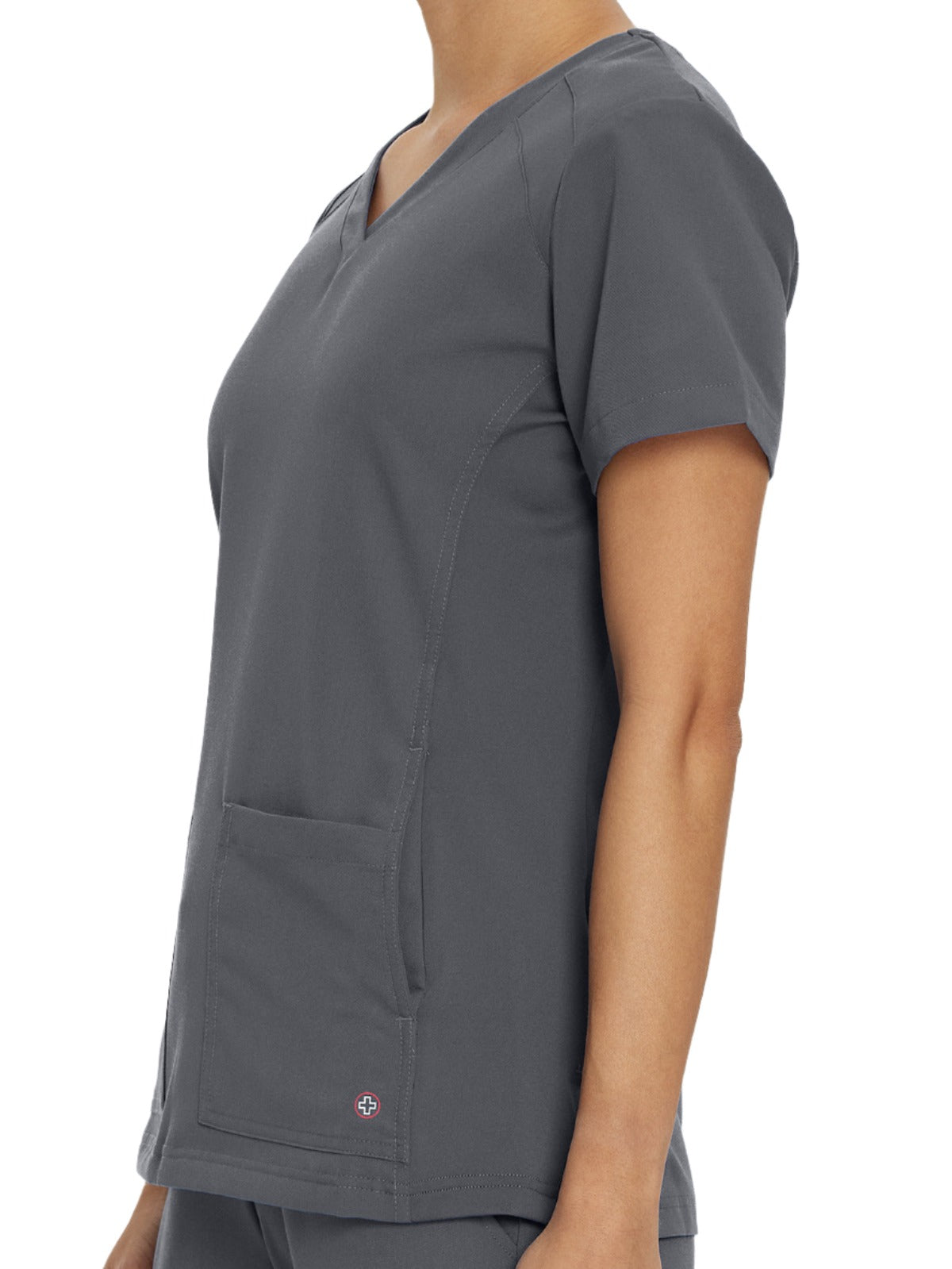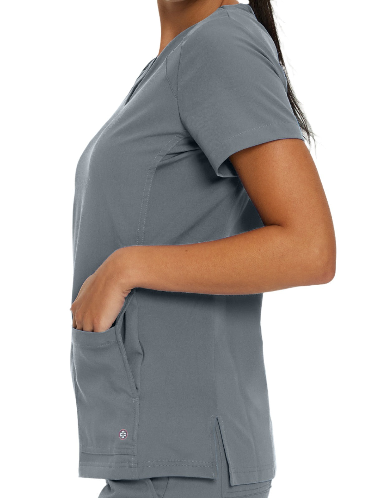 At White Cross, we know that healthcare professionals are often called upon to be exceptional, which is why we make our garments exceptional too. The V-Tess women's 4-pocket V-neck scrub top is fade resistant and wrinkle resistant with a jersey-knit front and back yoke for ventilation. This top also has front and back princess seams for feminine shaping, side vents for extra ease of movement, and a super stretch.