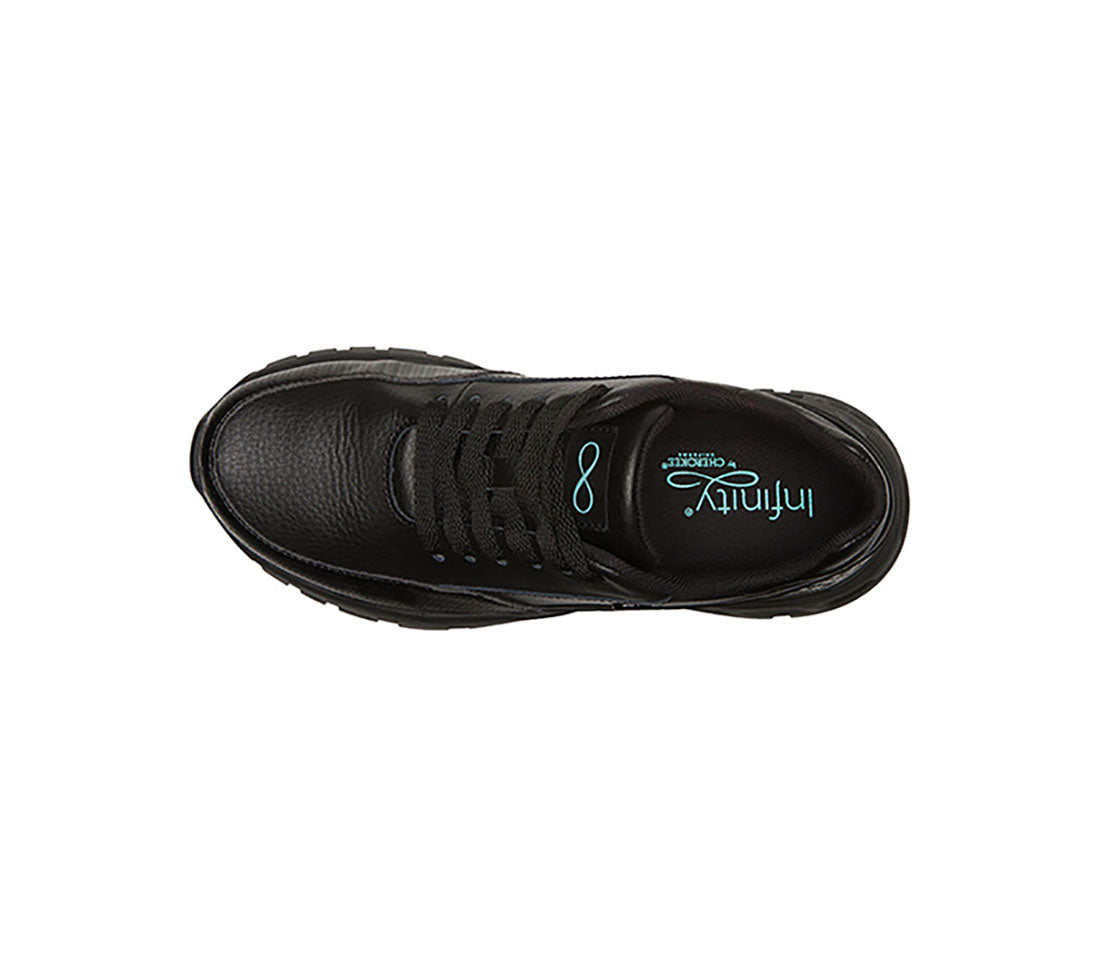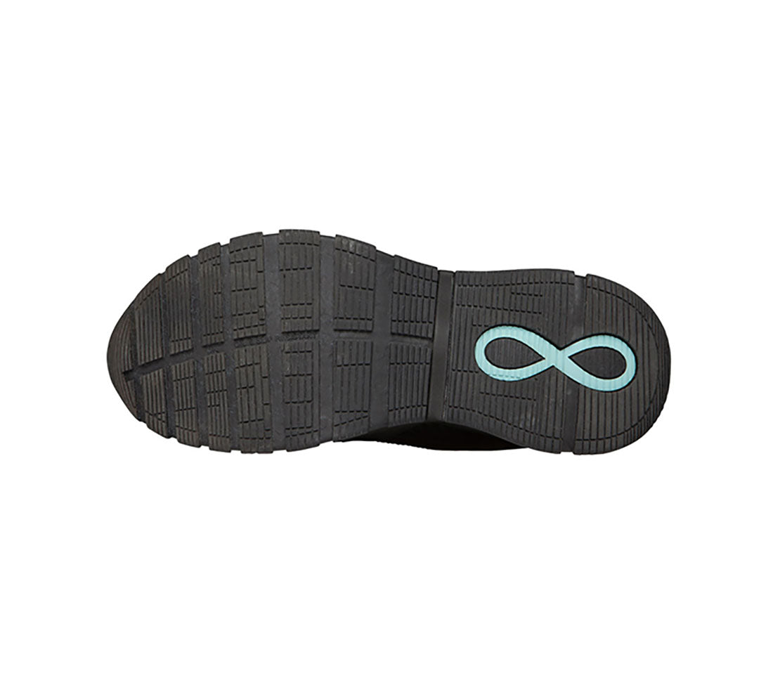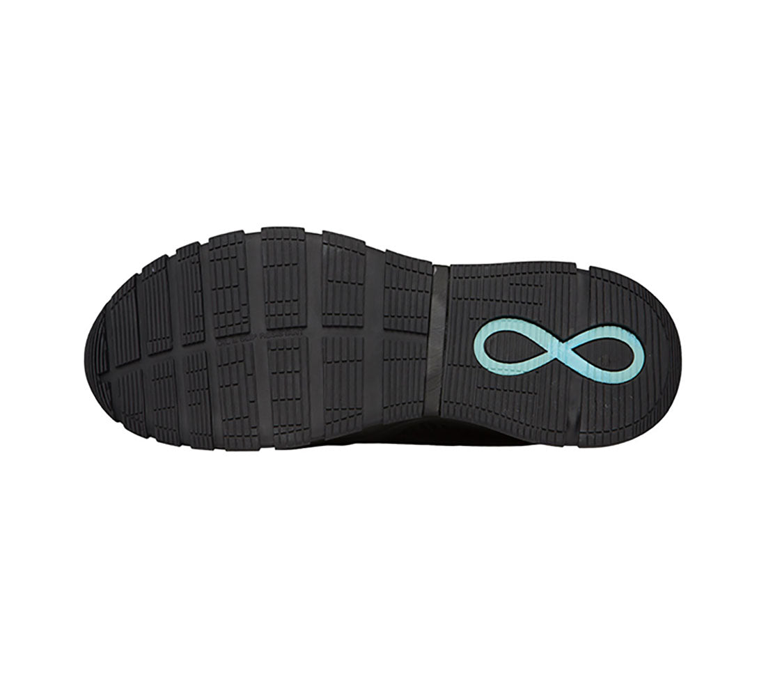 Removable shock absorbing latex-free polyurethane insole with arch support and heel cupping for all day comfort.