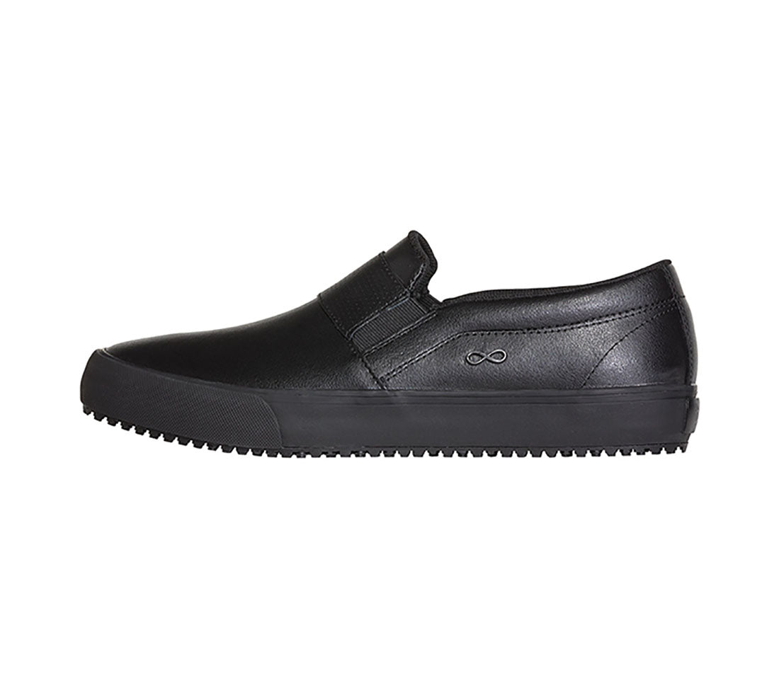In casually cool styles for men and women, the slip-on leather Rush is the perfect work-to-weekend shoe. Genuine leather uppers, oil and slip-resistant rubber outsole, an excellent removable shock absorbing latex-free polyurethane insole with arch support and heel cupping for...