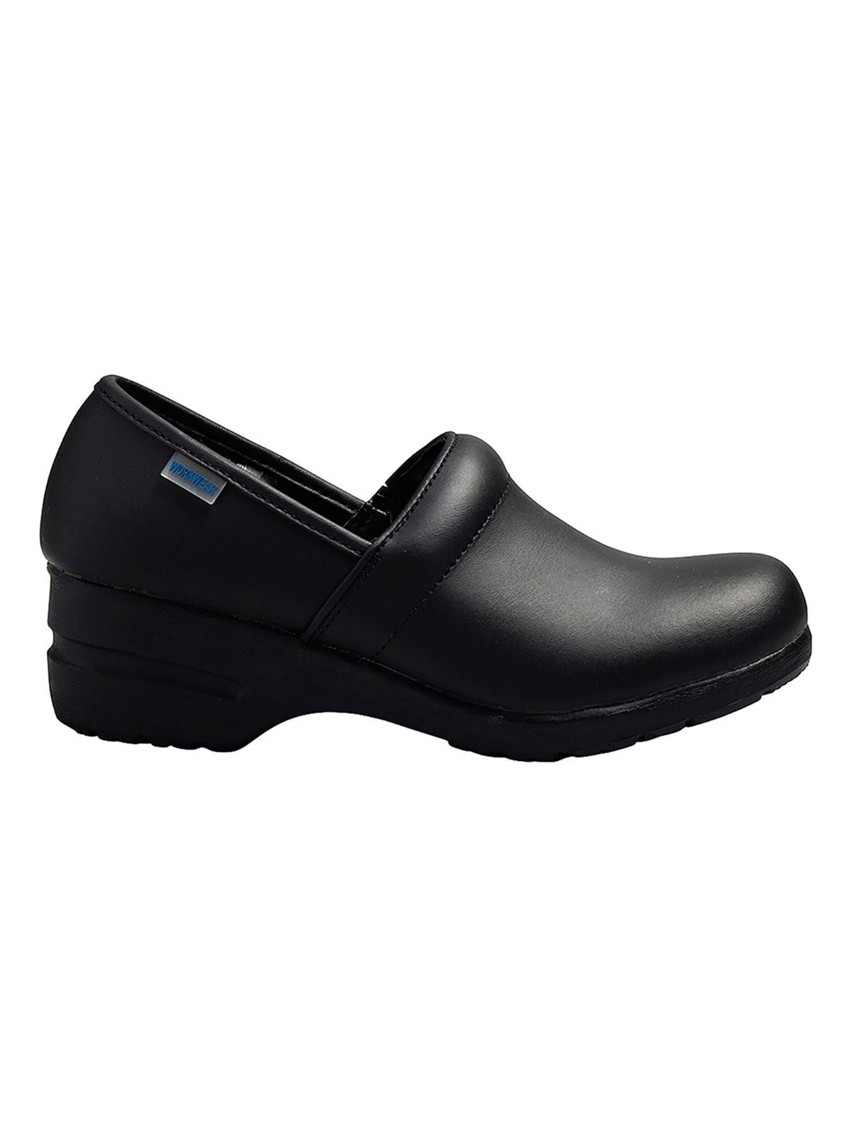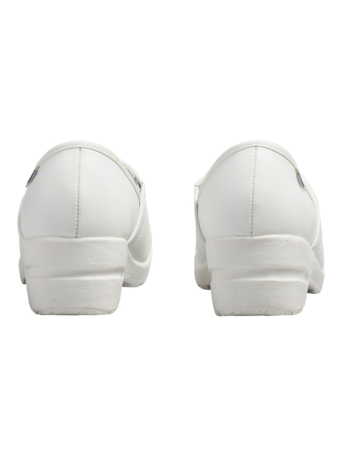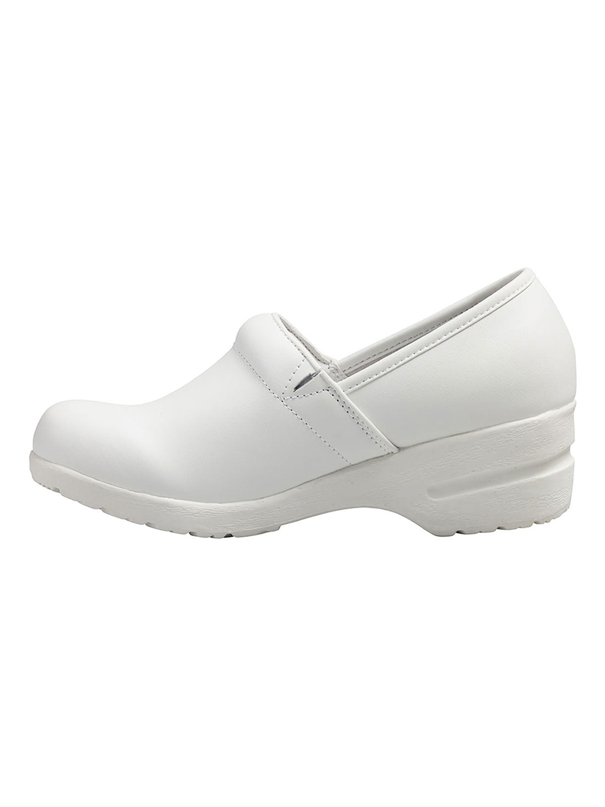 The Harmony from Cherokee is a padded-collar slip-on nursing clog made with a durable leather upper and moisture-absorbing lining materials. Features a contemporary molded outsole with medium height heel.