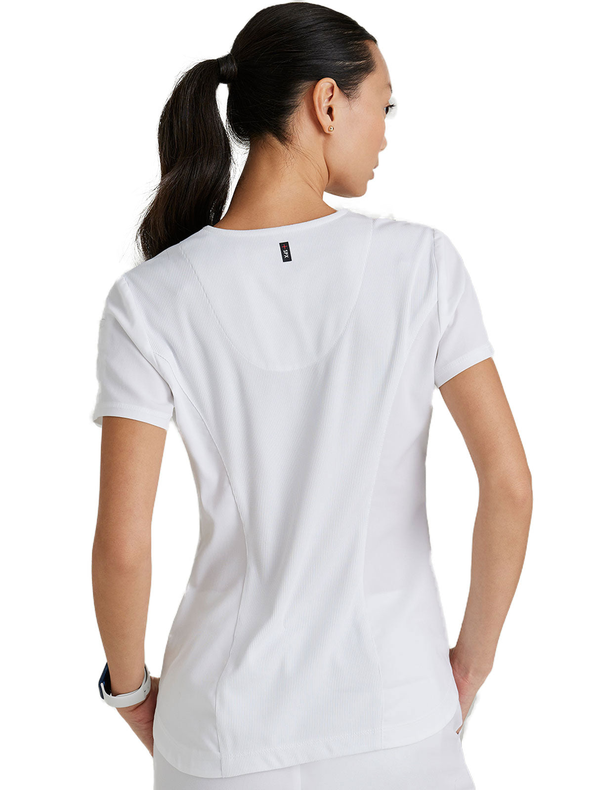 The uniforms worn by healthcare professionals should accommodate their active lifestyle as they are continuously on the go. Rib-knit fabric on the back and shoulders of the Grey's Anatomy Tuck-In Scrub Top offers the stretch and flexibility required to manage the demands of the profession. Say goodbye to stifling uniforms and hello to mobility.