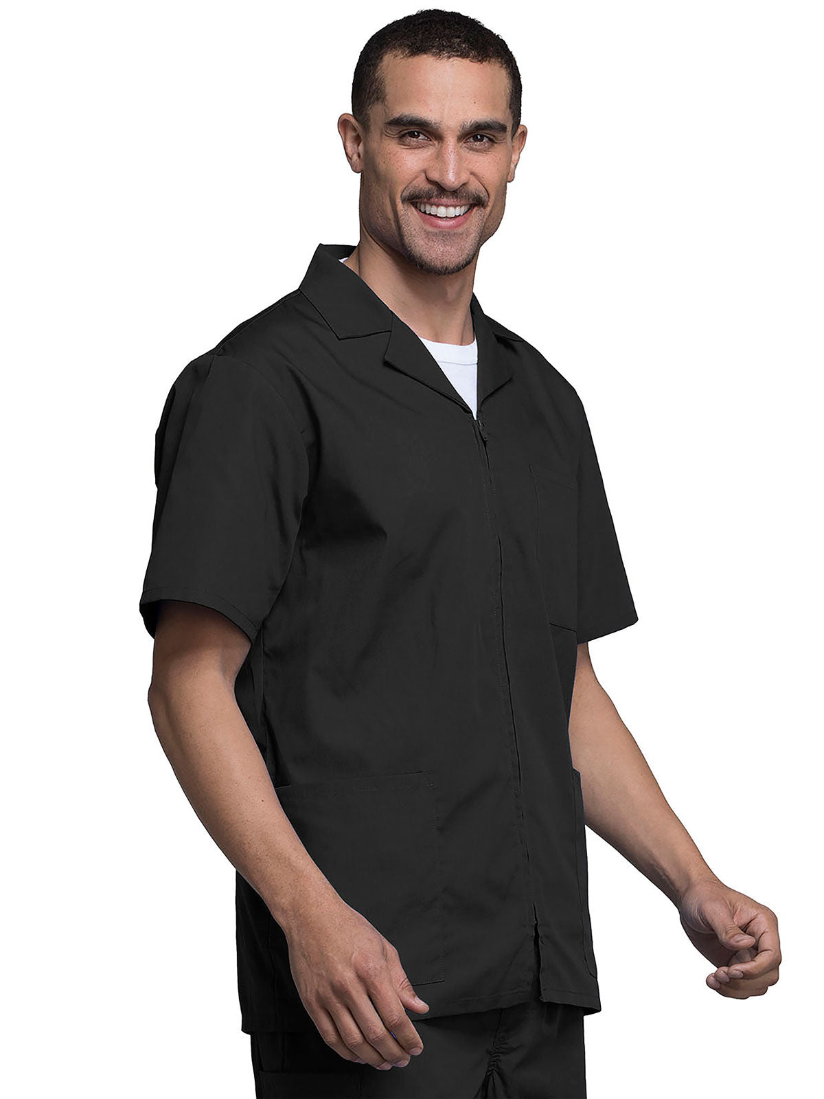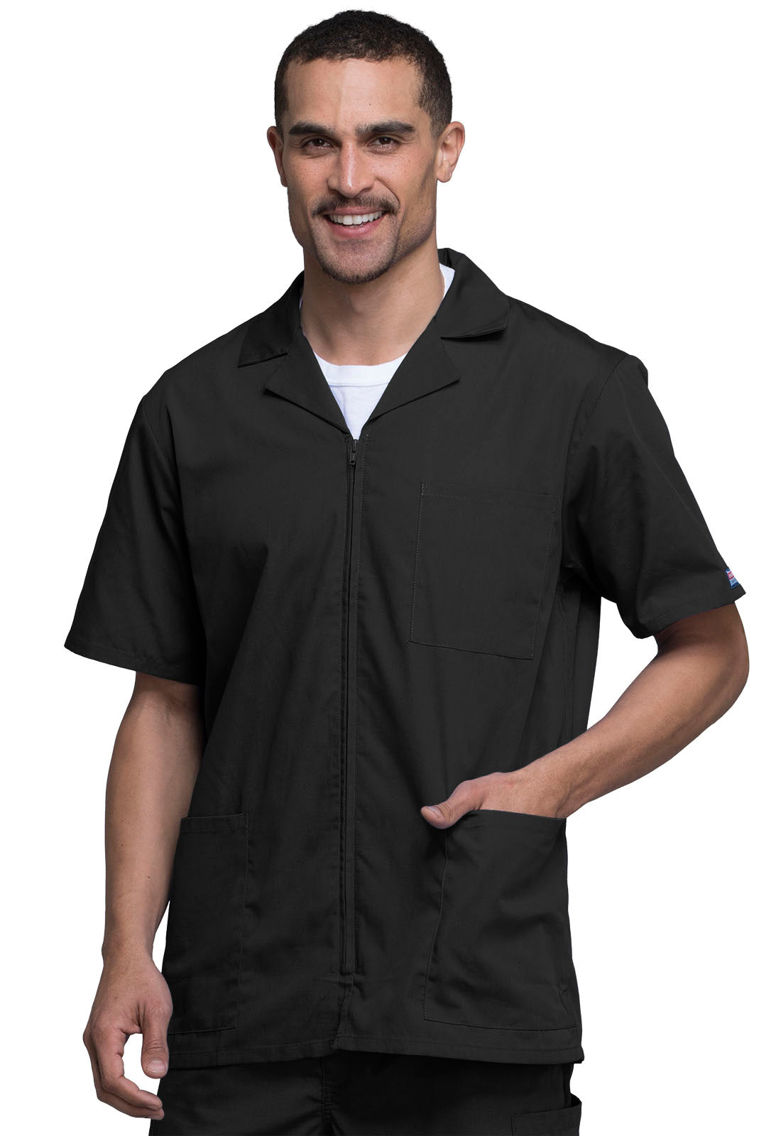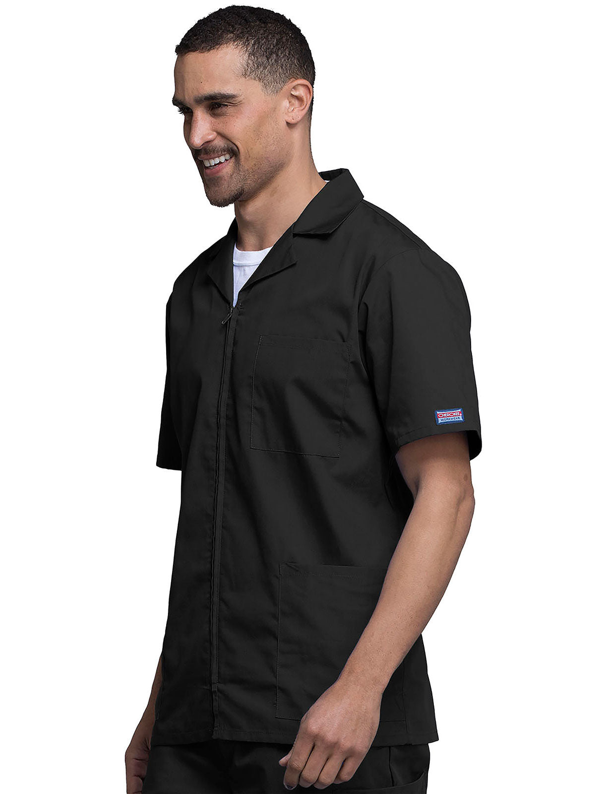 This Men's Traditional fit zip front jacket sports a lapel collar, chest pocket and two patch pockets. Center back length 30 1/2".