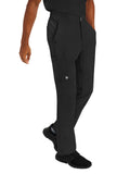 A Contemporary fit, low rise, straight leg pant features an elastic knit waistband and adjustable drawstring. Also featured are rib knit front and back yokes, angled front pockets, front leg seams with a zip closure cargo pocket, one back patch...