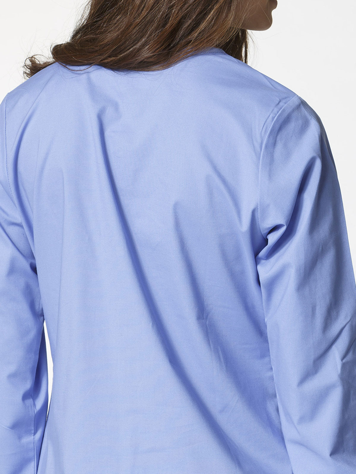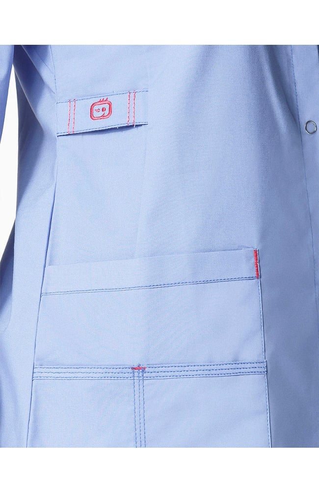 This sporty, snap-front scrub jacket from WonderFlex is made of premium stretch fabric. WonderFLEX is a cotton-rich, premium fabric. It has enough give to be supremely comfortable while maintaining its shape for a polished look. It has two front patch pockets, one layered with an additional divided pocket. The curved neckline is flattering and non-restricting. There is a front yoke and front princess seams for fashion styling in a hardworking warm up. Dropped shoulder shoulders and rib knit cuffs keep the fit comfy and cozy.