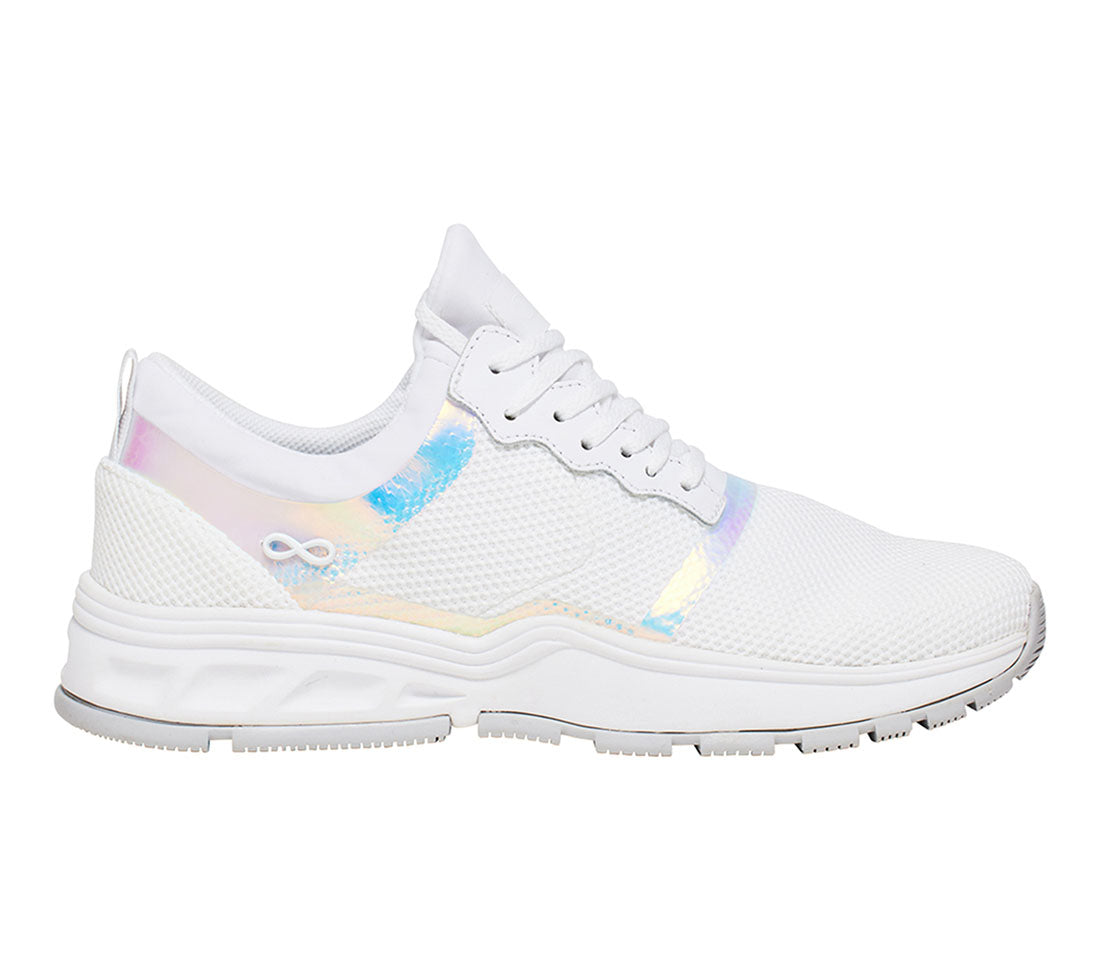 The sporty Fly Jogger for men and women come in a range of fashion-forward colors and patterns, with features that cradle the feet in cushion & comfort. Oil- and slip-resistant rubber outsole with strategically placed flex grooves. High cushioned molded EVA midsole for all-day comfort. Removable shock absorbing latex-free polyurethane insole with arch support and heel cupping. Mesh upper with strategic TPU overlays and bootie construction for a foot-hugging fit. FEATURES Certainty® antimicrobial insole and interior lining to reduce odor-causing bacteria. Heel height: 1 1/2"