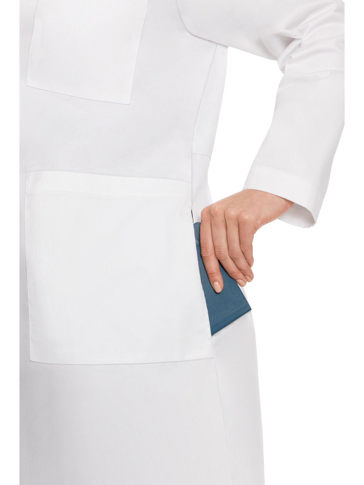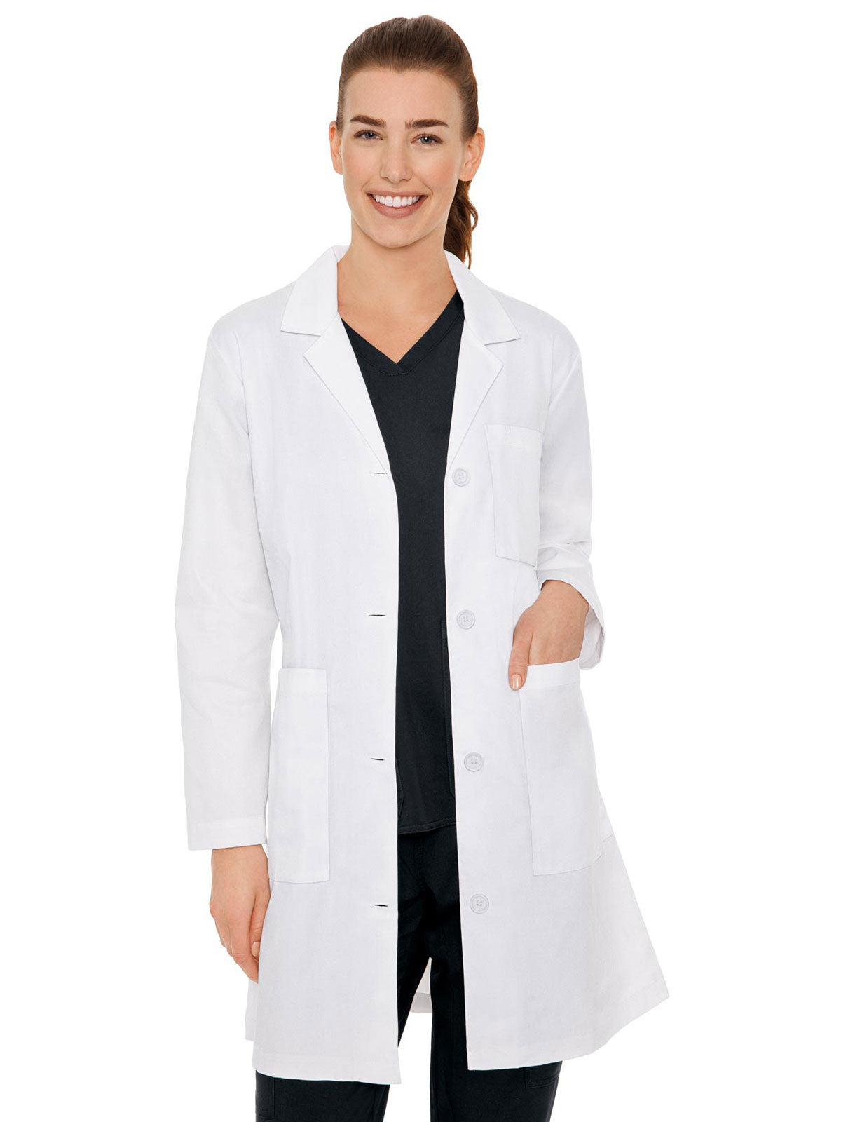 The Med Couture Originals Women's 37" Lab Coat looks professional and feels durable. Lots of pocket space makes it easy to organize pens, tools, and even a tablet.