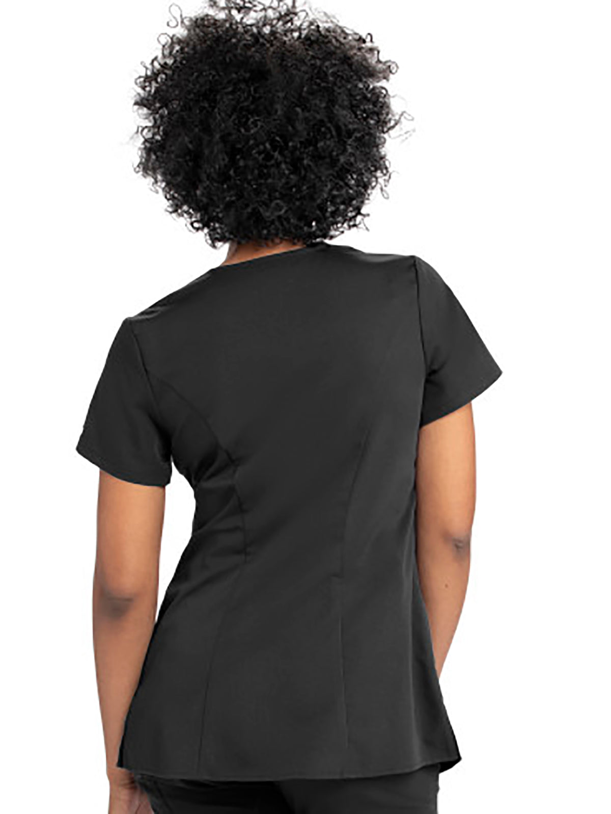 Cherokee workwear core stretch A Modern Classic Cherokee workwear core fit V-neck top features crossover front yokes and patch pockets. The right side pocket has a sectional pocket and I.D. loop. A back yoke, back princess seams, and side vents...