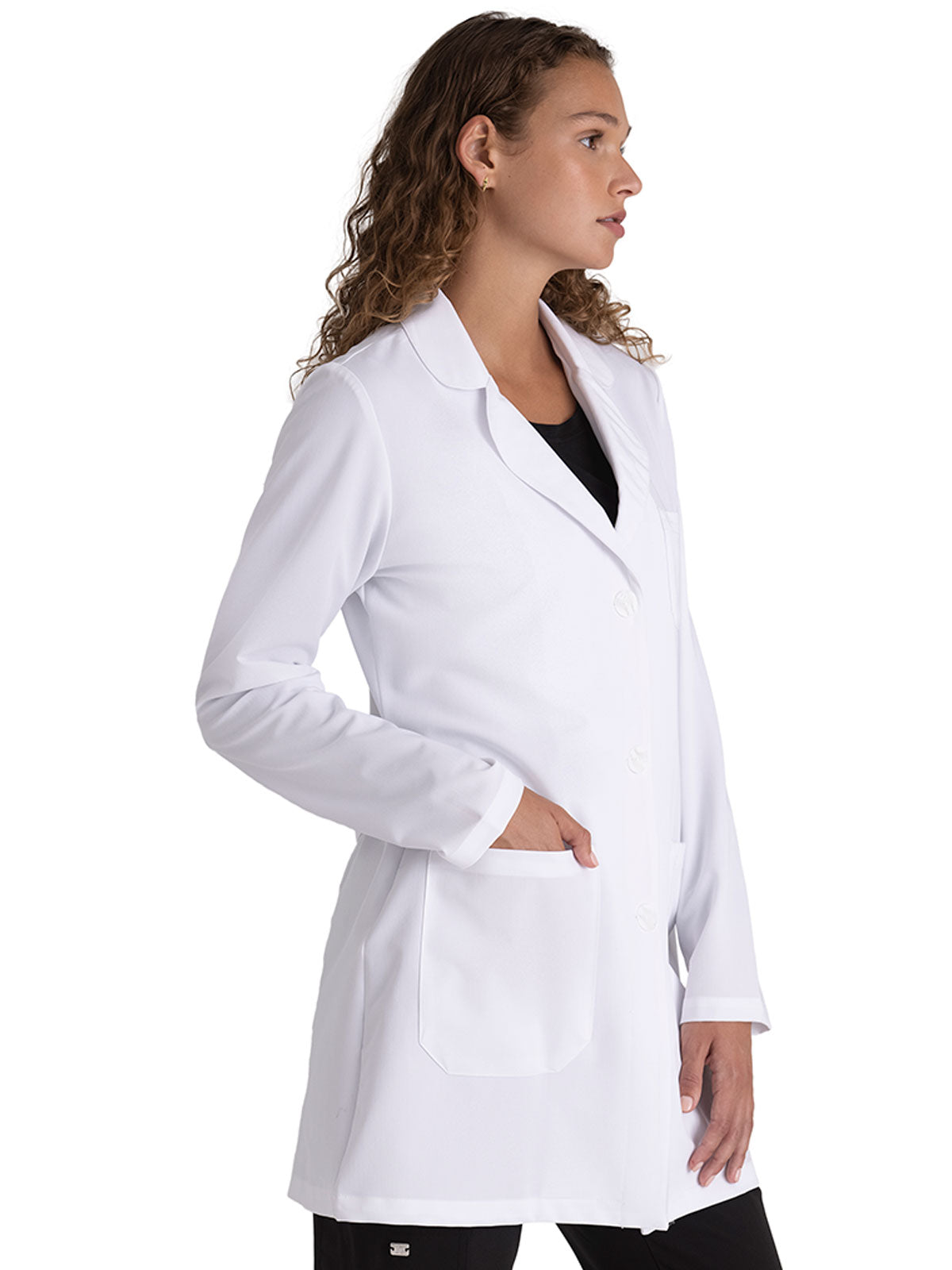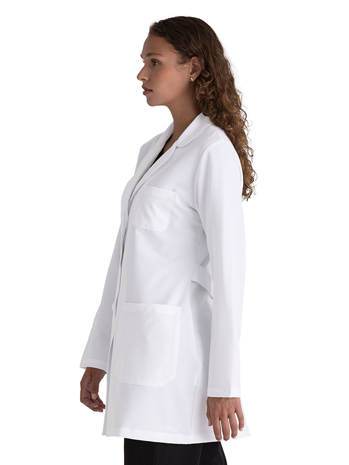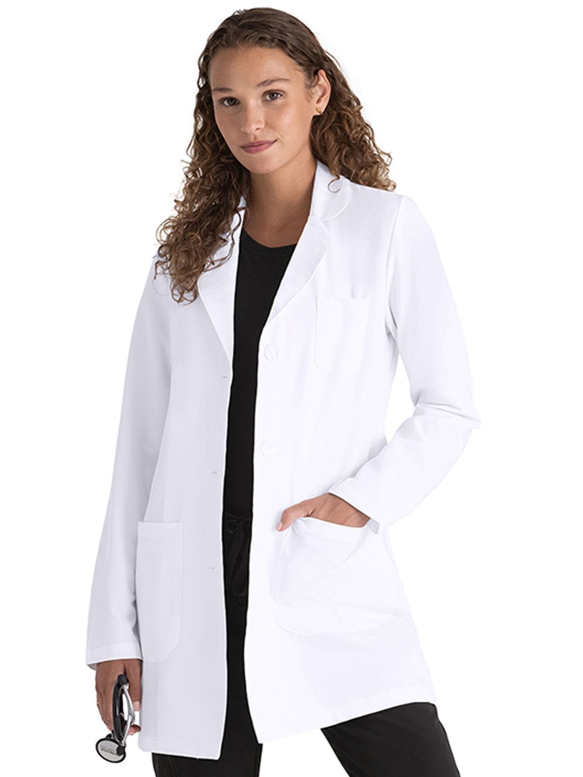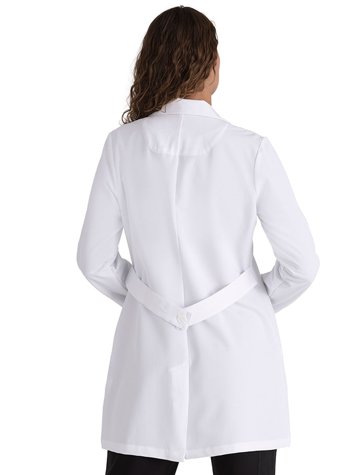 More than a uniform, a lab coat is a badge of honor. This women's Grey's Anatomy Signature lab coat is made of non-yellowing stretch fabric with a soft touch for comfort on your daily rounds. It's wrinkle-resistant and has a round-notch collar and an adjustable belt in back.