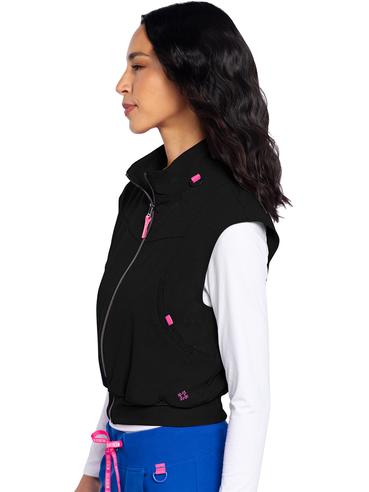Style yourself in layers with the WonderFlex by WonderWink Women's Serenity Solid Scrub Vest. This mutli-purpose utility vest is equally appropriate for both the workplace and the great outdoors. Stand-up zipper neckline Sleeveless Front and back princess seams Front and...