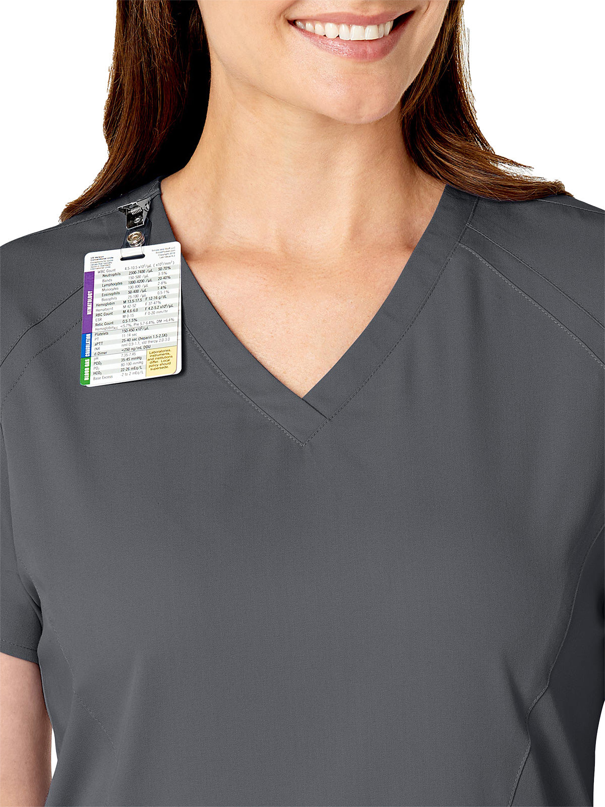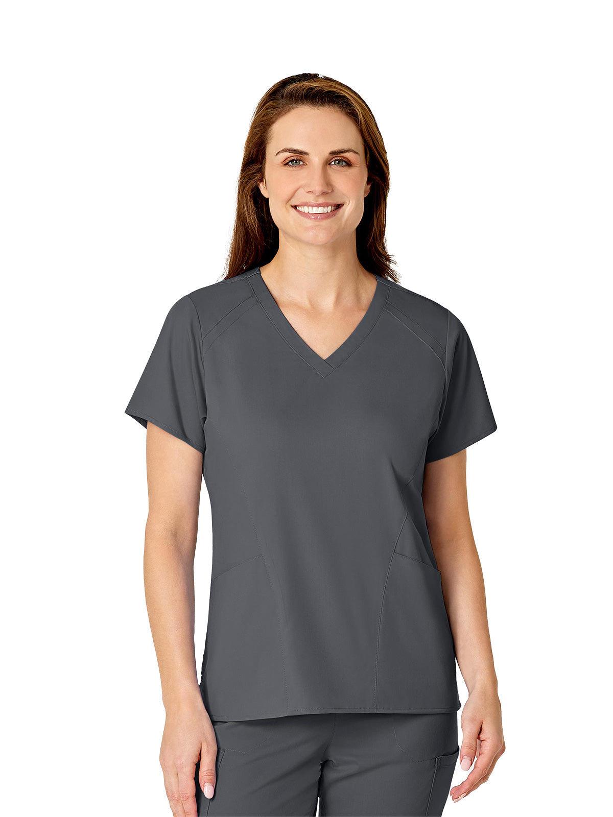 WonderWink PRO is “Designed to Work”. With its ease of care you can wash, wear and go, with the polyester, rayon and spandex fabric you can expect all day comfort. This trendy V-neck top has ample room for you instruments with two top loading pockets and two side entry pockets. The modern fit is cut closer to your shape for a flattering and contoured look without sacrificing comfort.