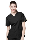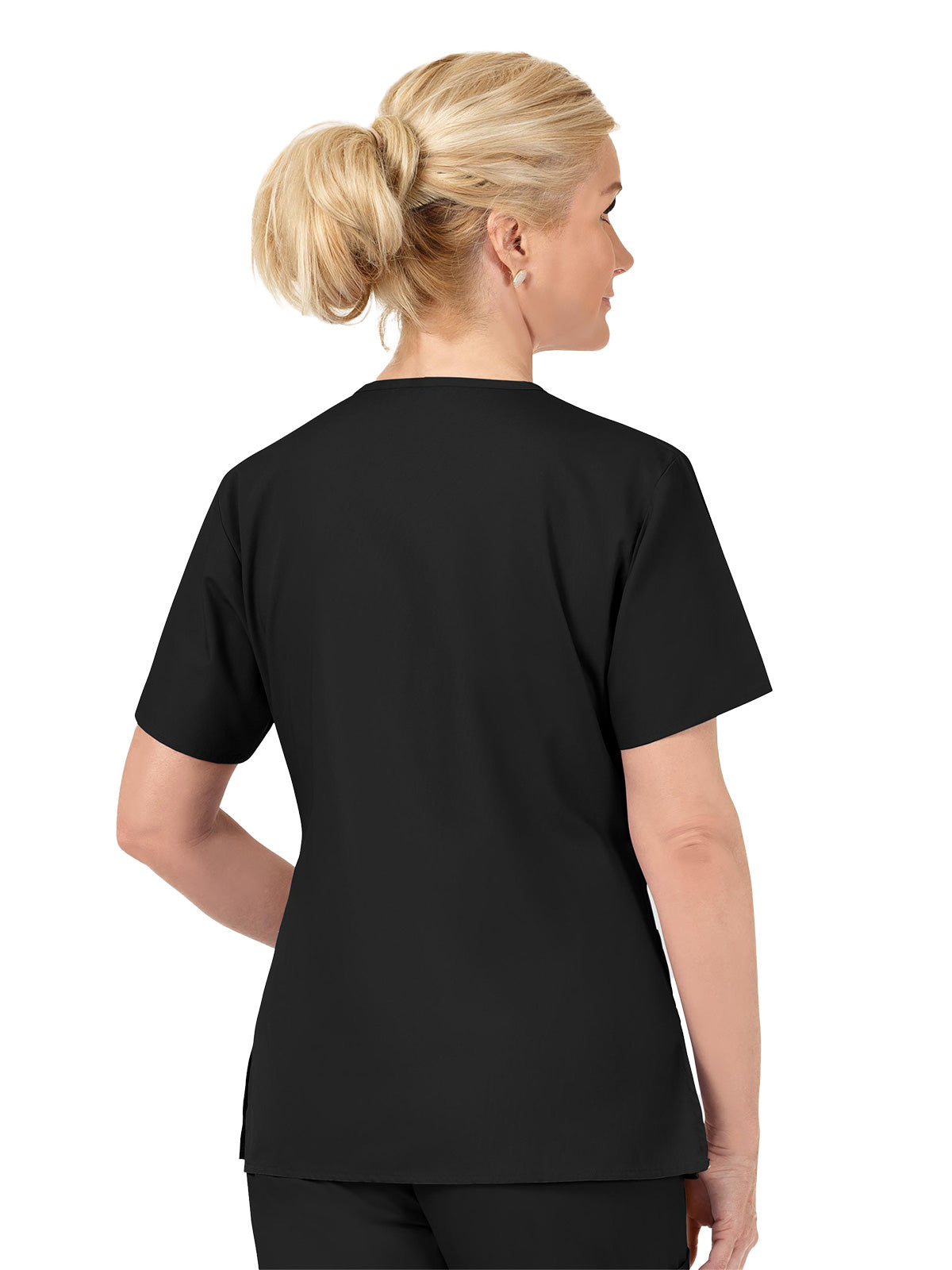 WonderWink Fit and True-Plus Fit Top loading 4 lower pockets Hidden utility loop WonderWink silicone ring Shoulder badge loop Side vents Available in XXS - XL (Size M length: 27 1/4") & Plus: 1X - 5X 100% microfiber poly 4-way...