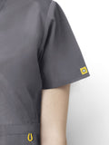 WonderWink Fit and True-Plus Fit Top loading 4 lower pockets Hidden utility loop WonderWink silicone ring Shoulder badge loop Side vents Available in XXS - XL (Size M length: 27 1/4") & Plus: 1X - 5X 100% microfiber poly 4-way...