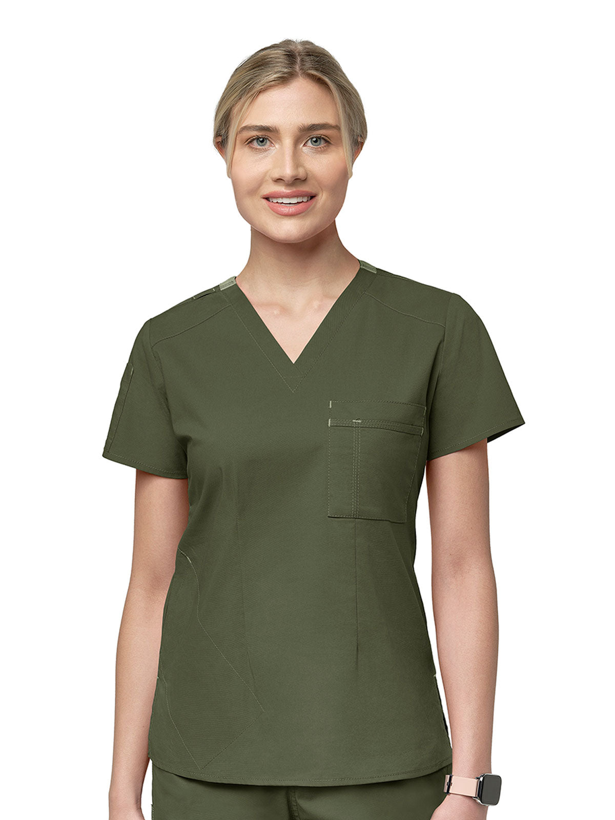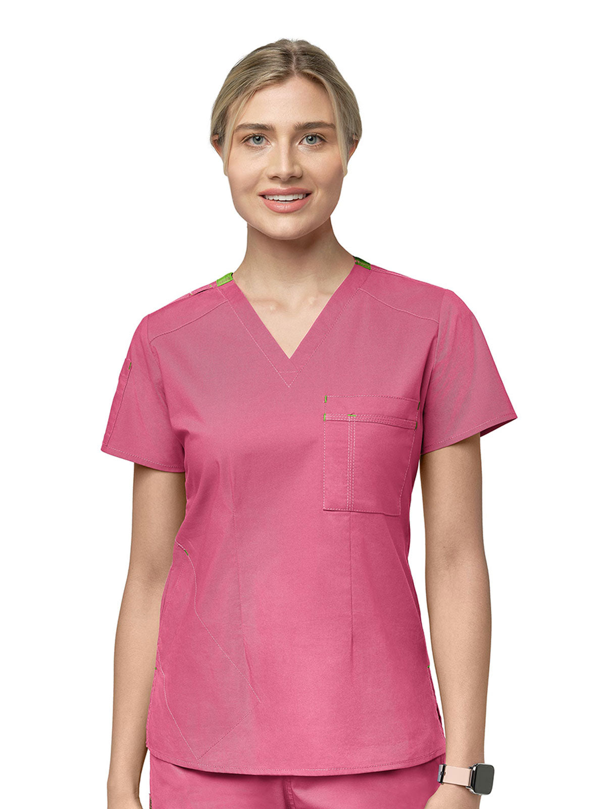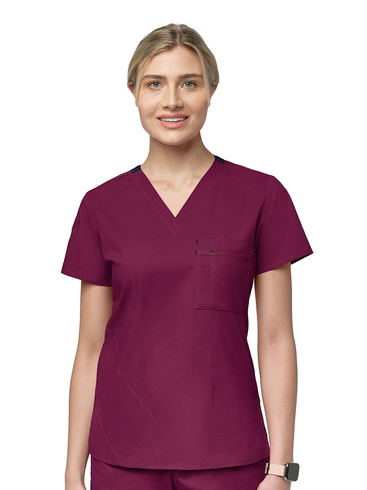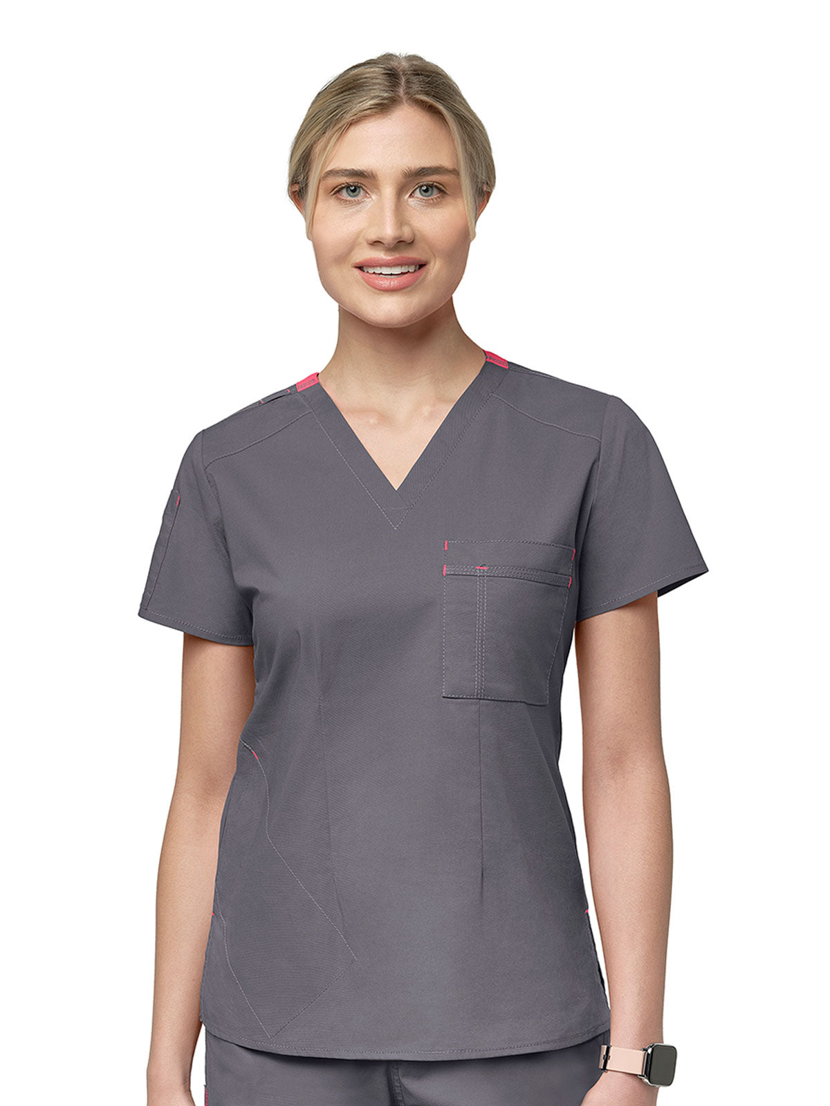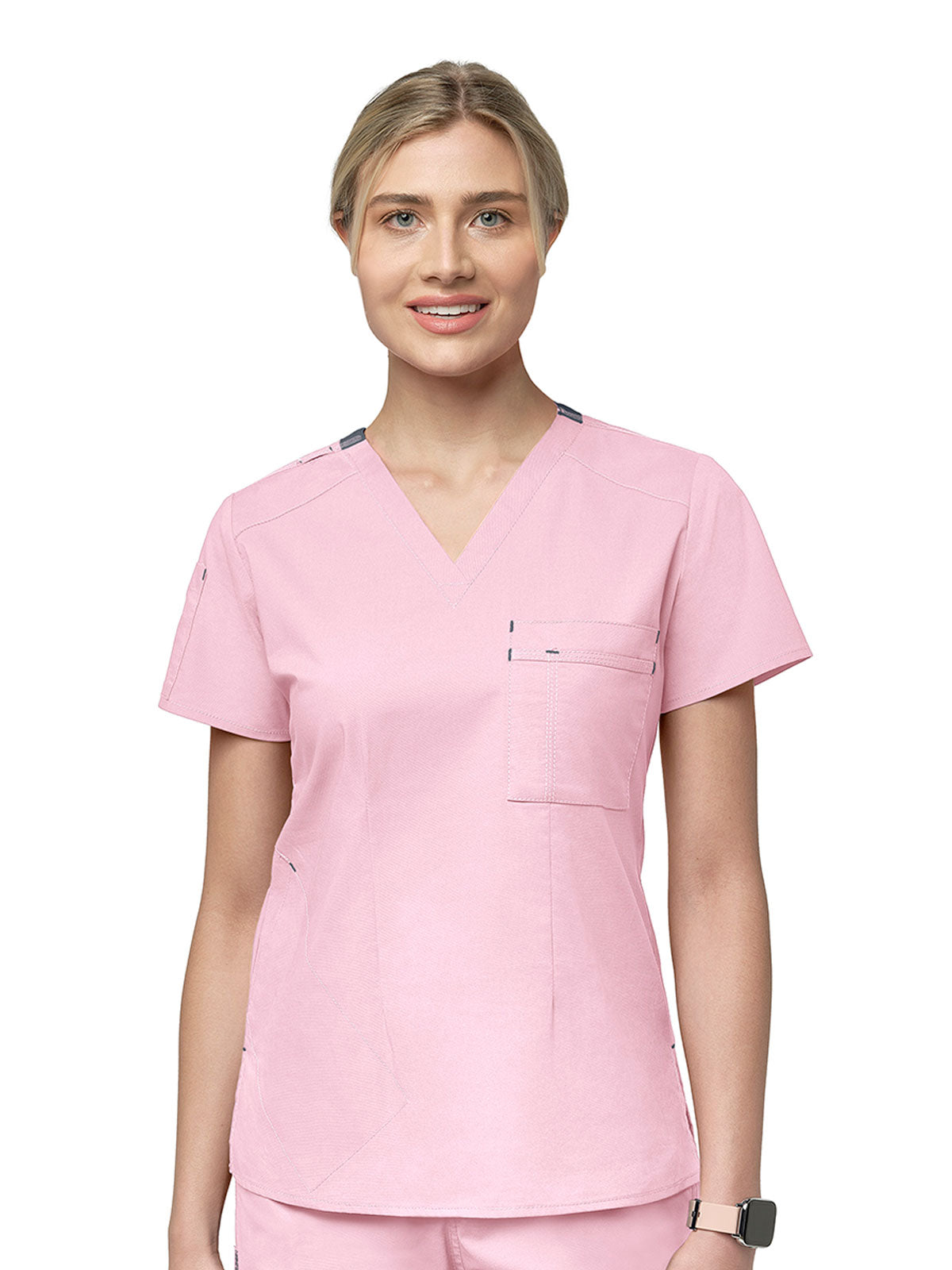 WonderFlex - Women's Chest Pocket V-Neck Tuck In Scrub Top