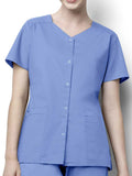 WonderWink Fit and True-Plus Fit Top loading 4 lower pockets Hidden utility loop WonderWink silicone ring Shoulder badge loop Side vents Available in XXS - XL (Size M length: 27 1/4") & Plus: 1X - 5X 100% microfiber poly 4-way...