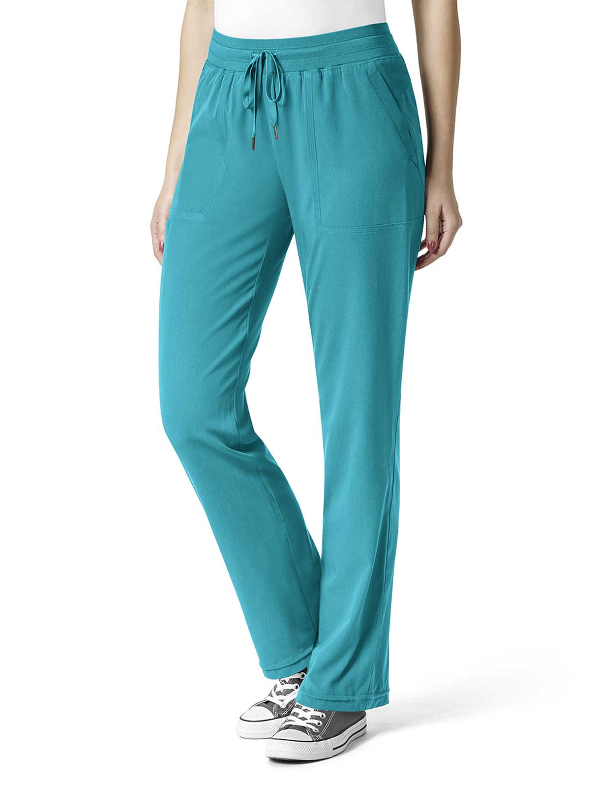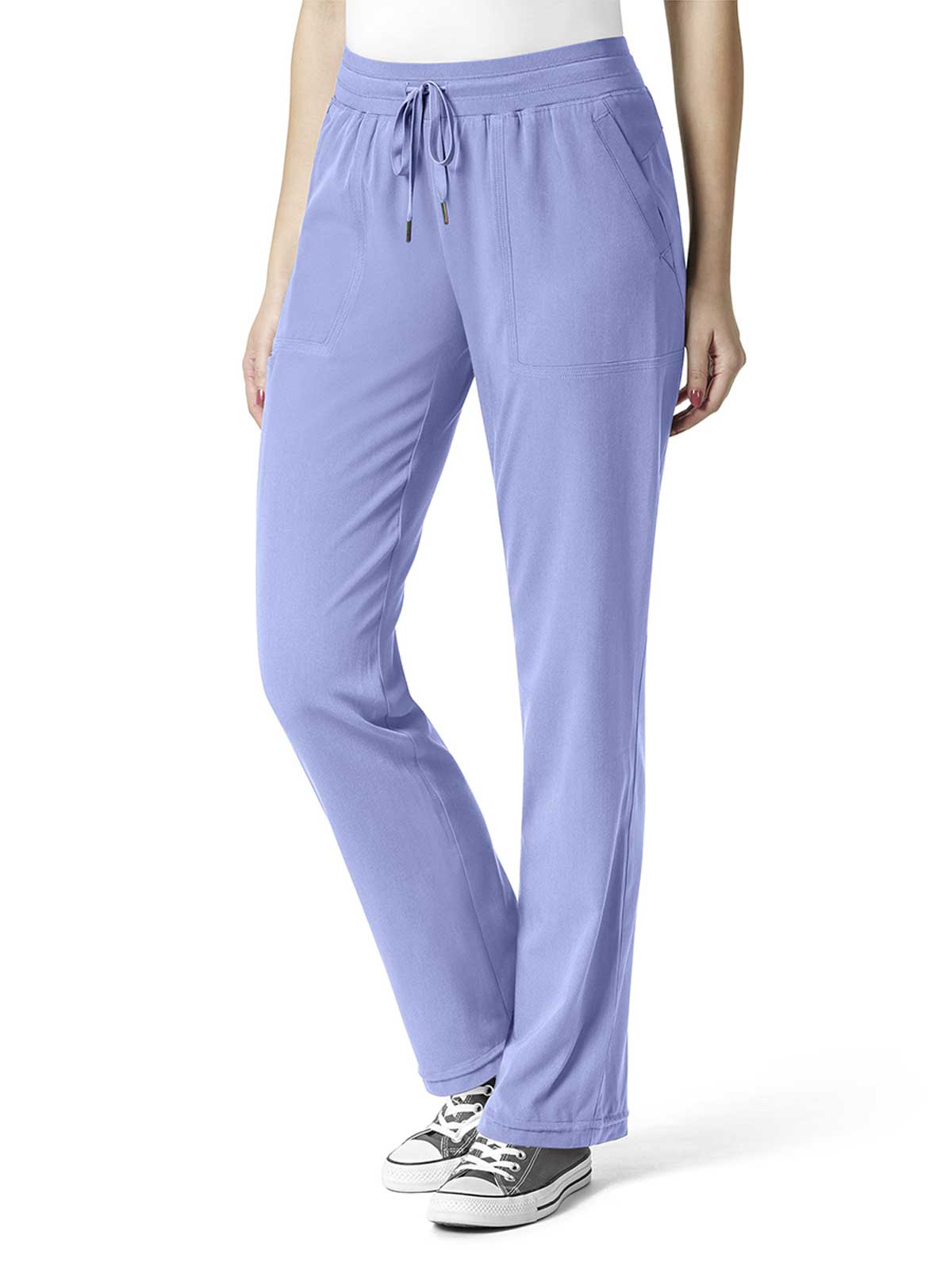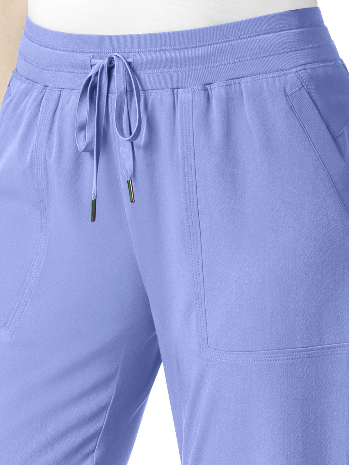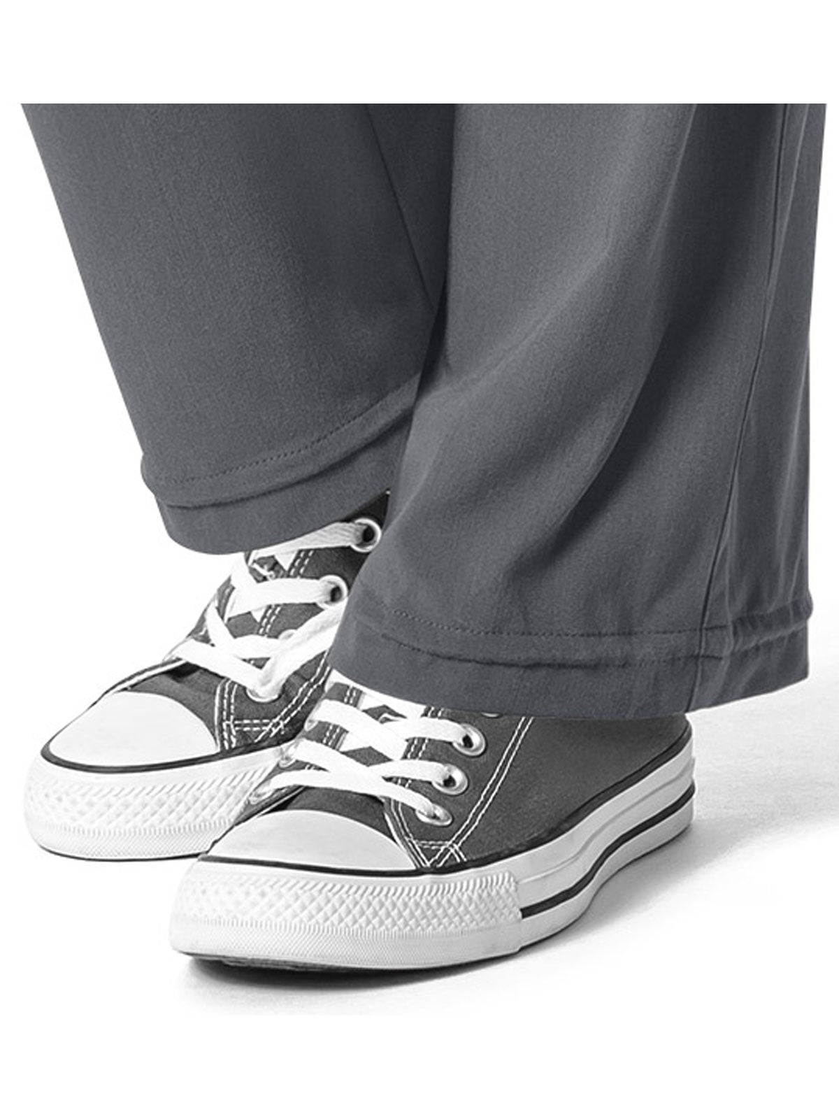 Dyed-to-match flat back rib knit waist with full drawstring.