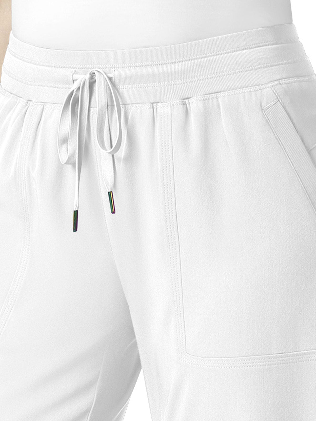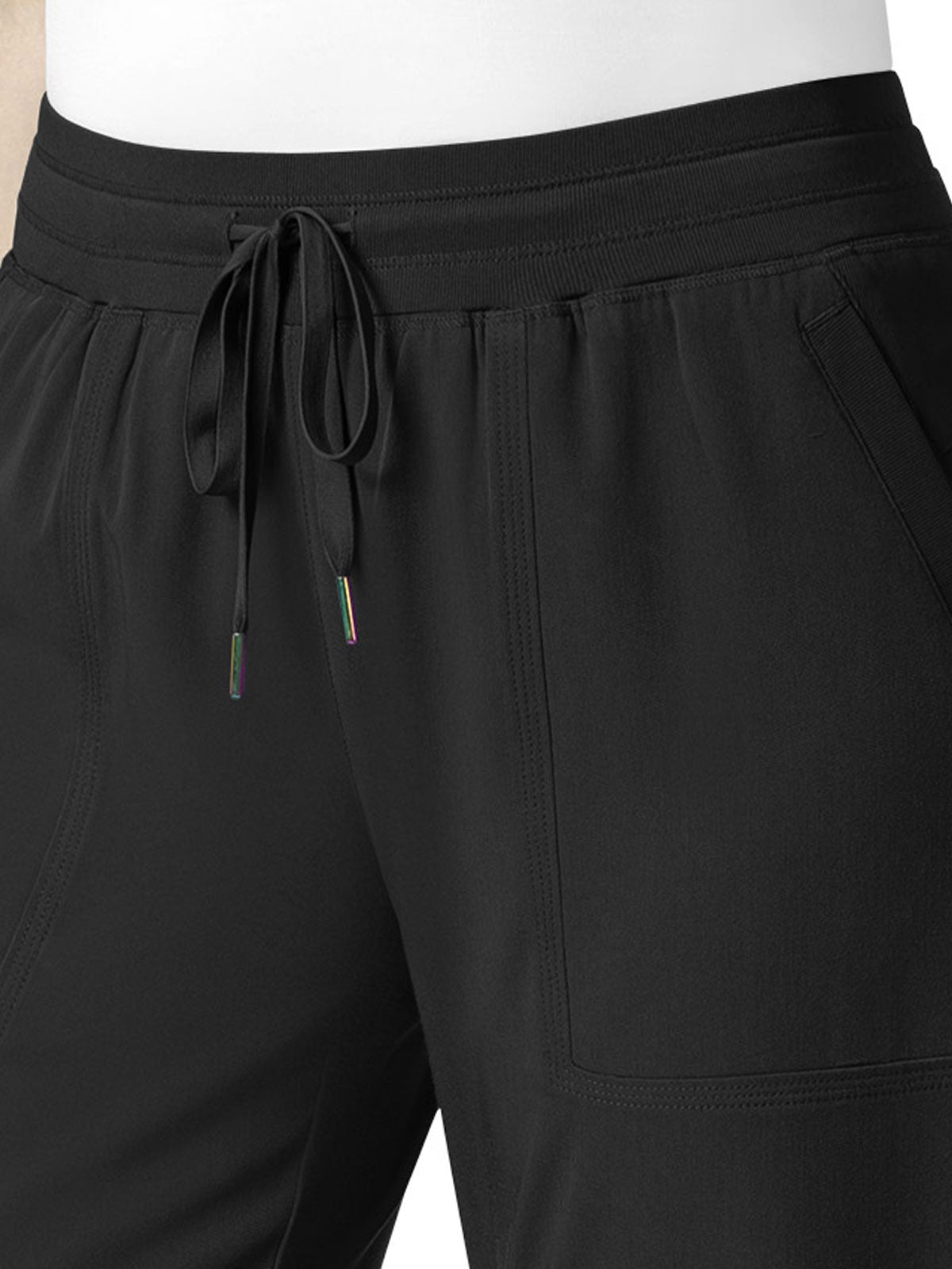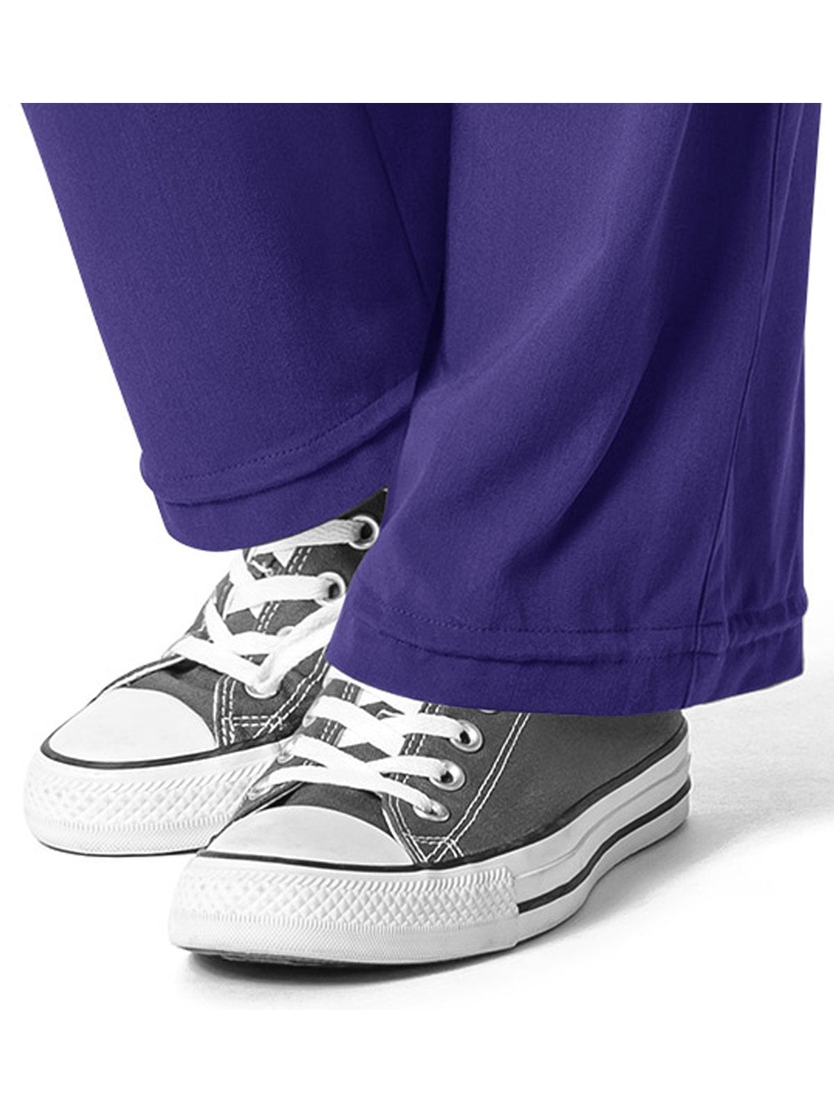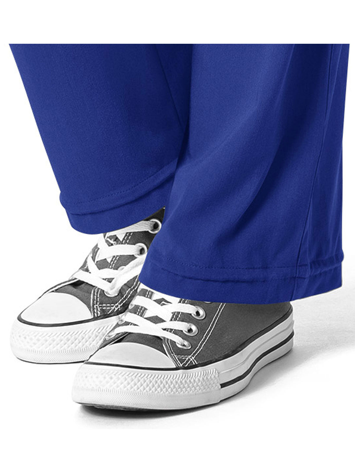Dyed-to-match flat back rib knit waist with full drawstring.