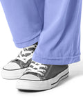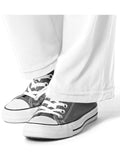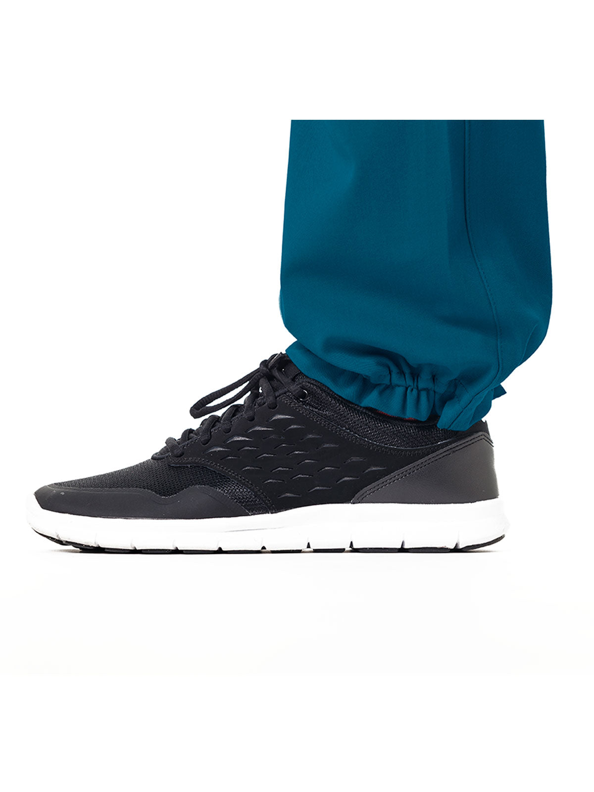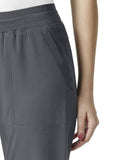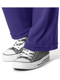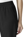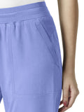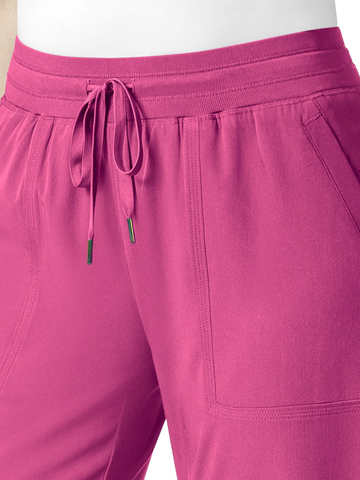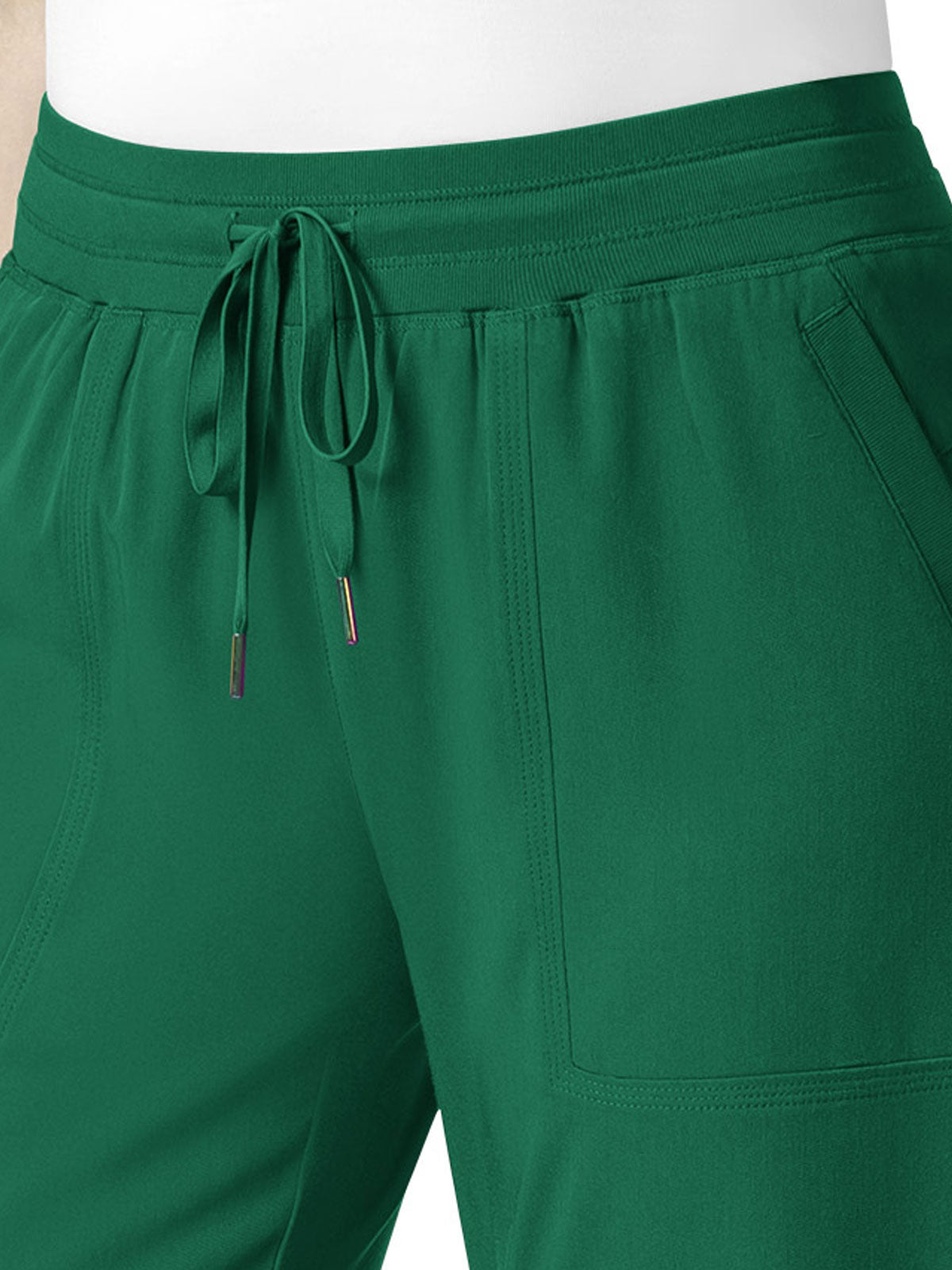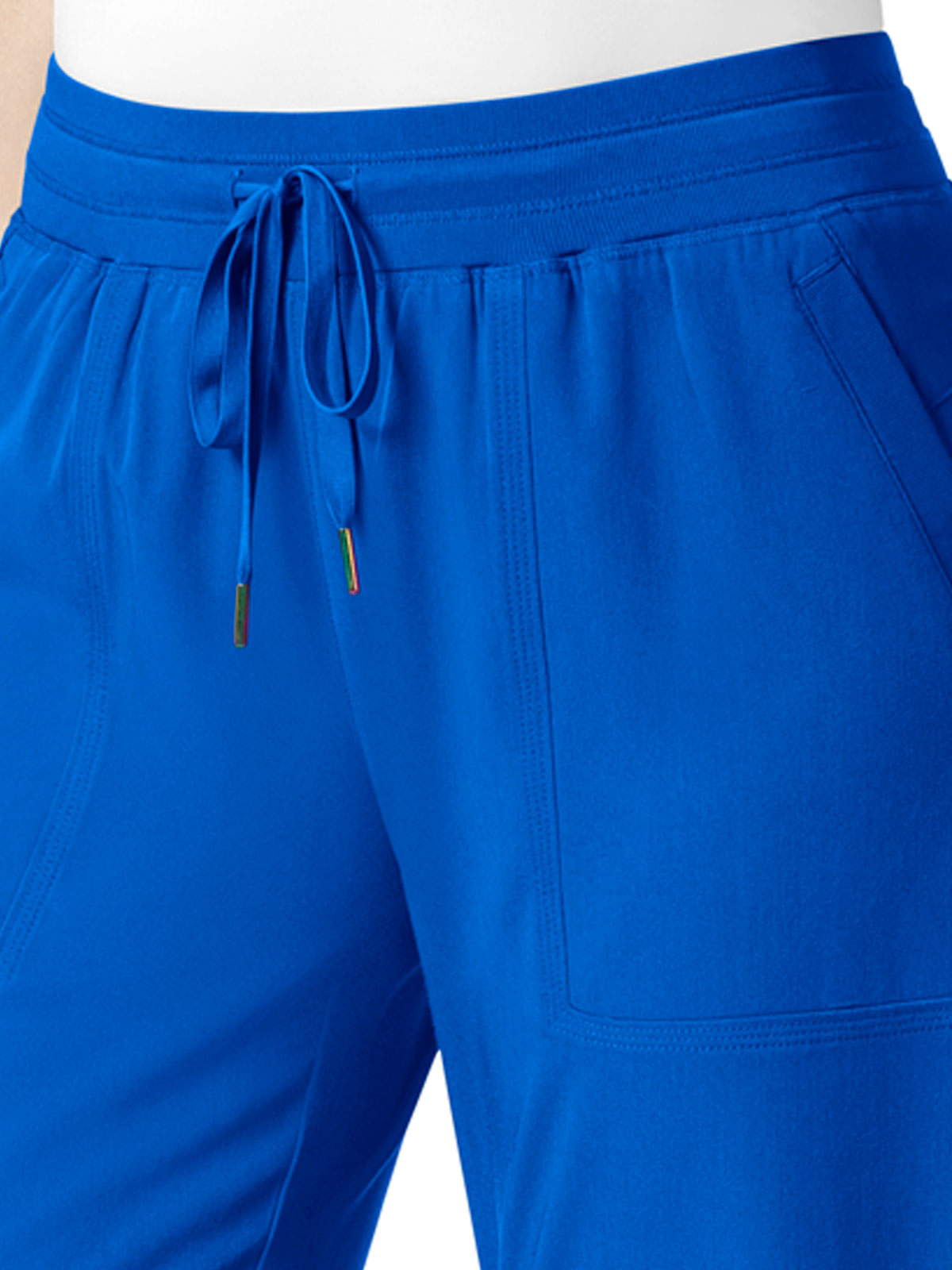 Dyed-to-match flat back rib knit waist with full drawstring.