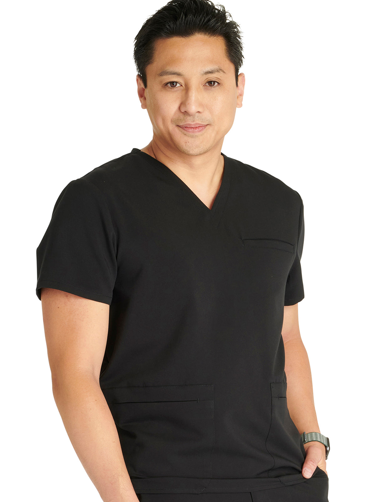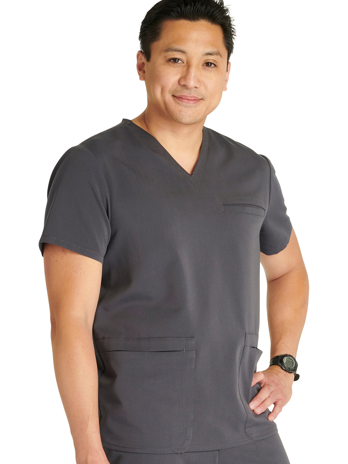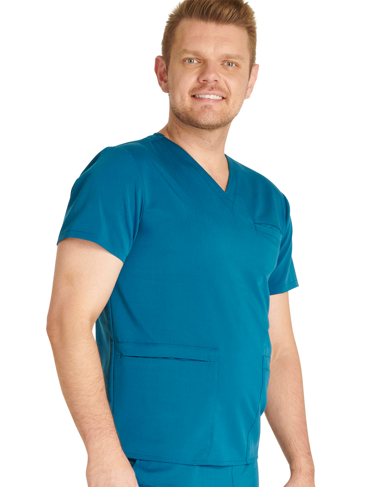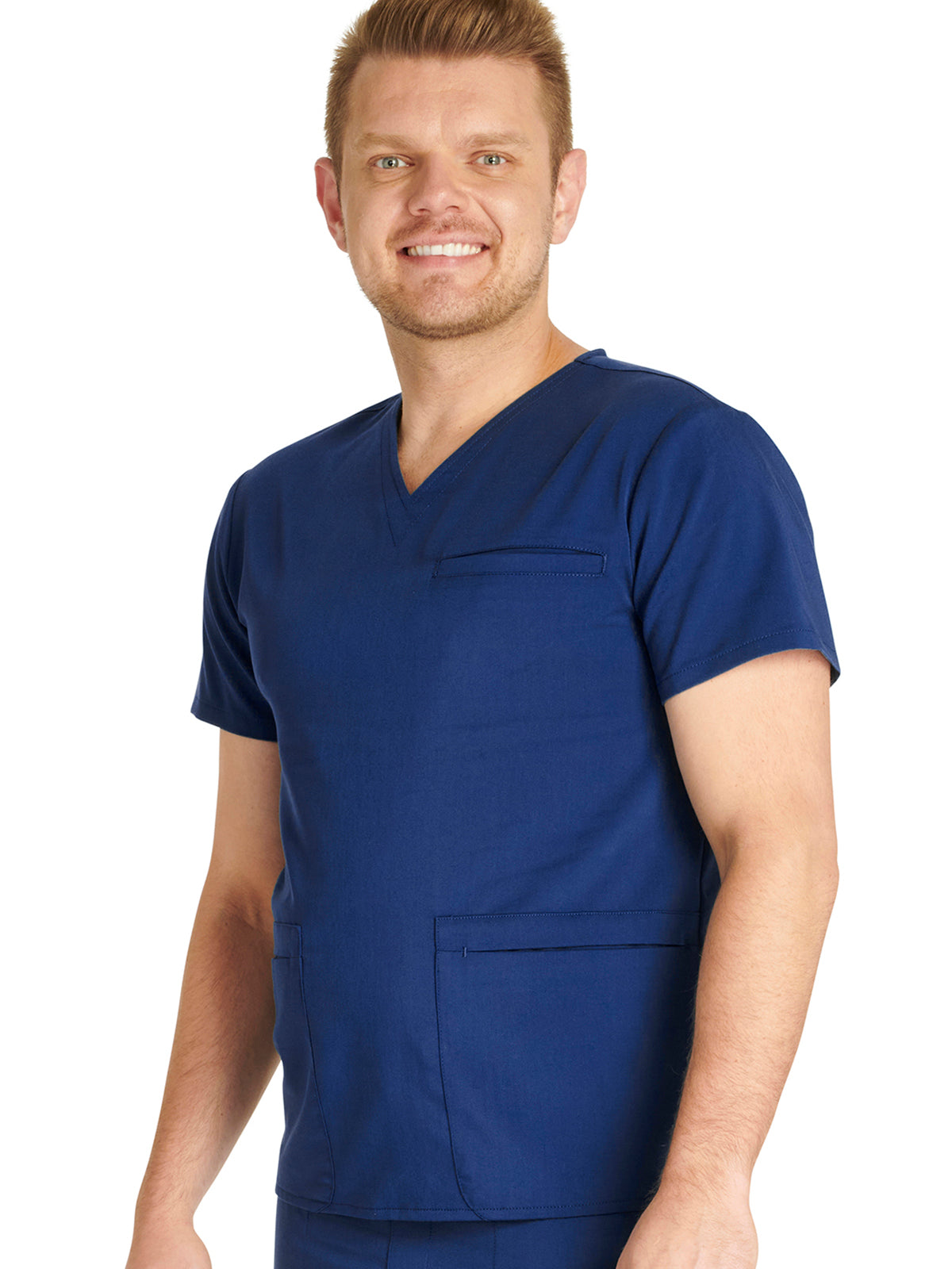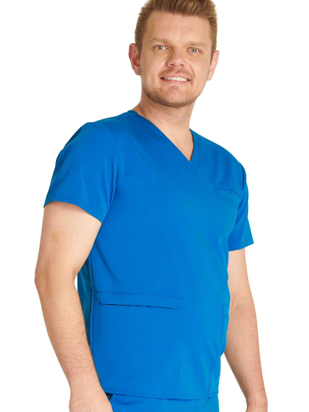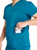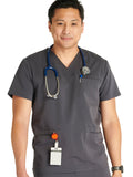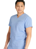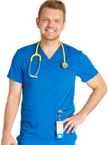 Men's V-Neck 3 Pocket Scrub Top with spacious pockets, easy-care comfort, and durability.