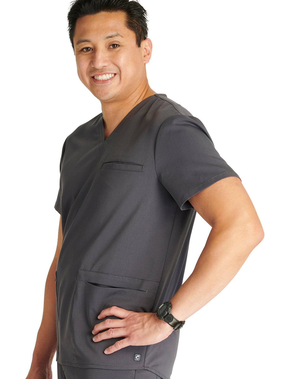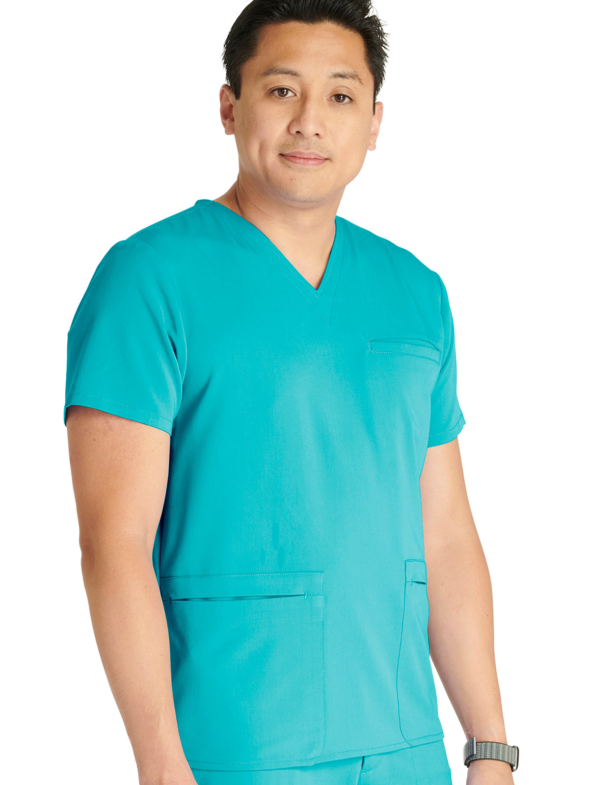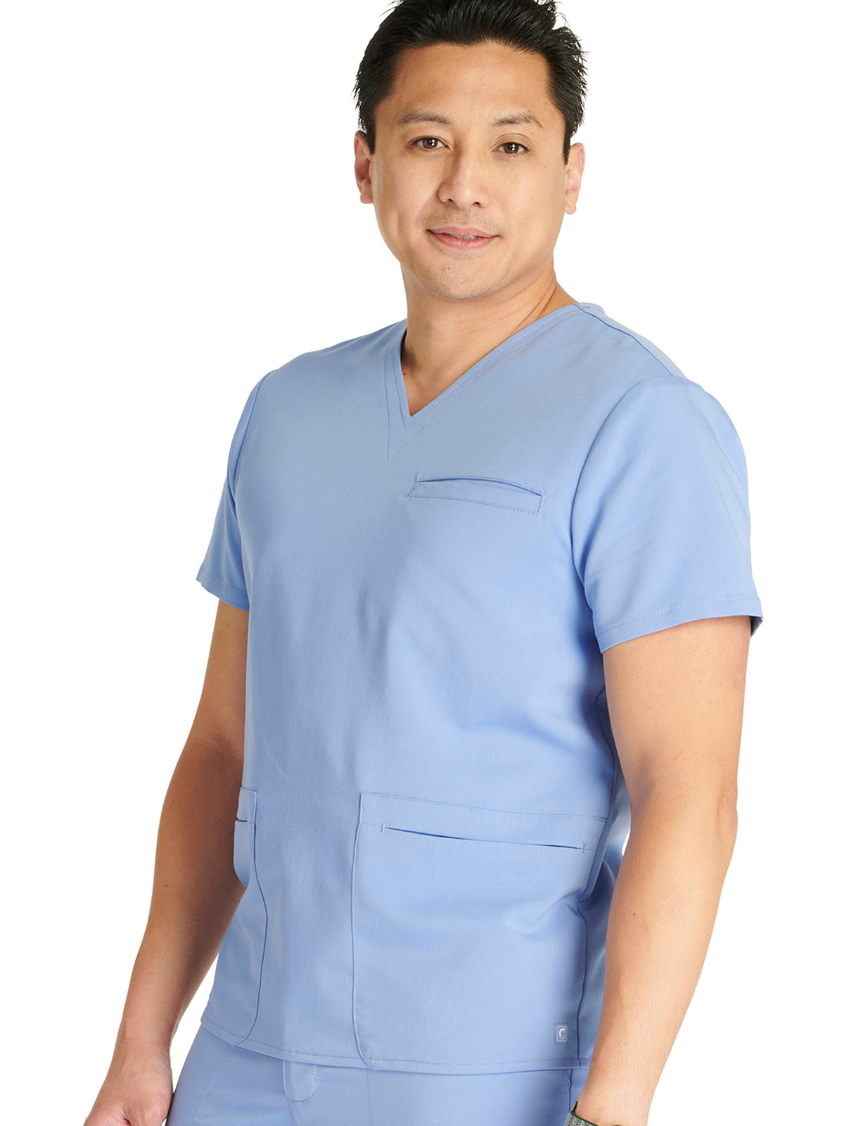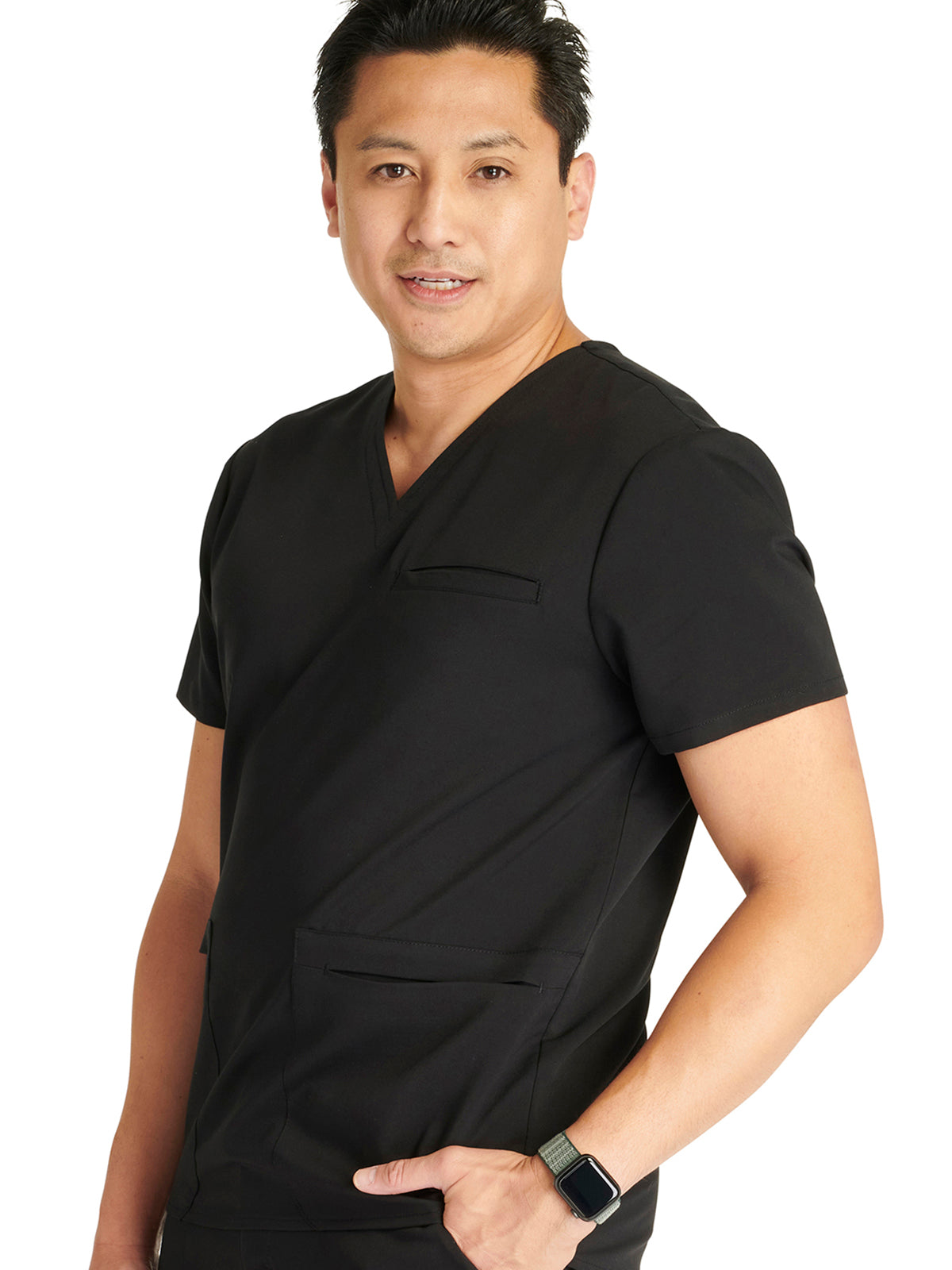 Men's V-Neck 3 Pocket Scrub Top with spacious pockets, easy-care comfort, and durability.