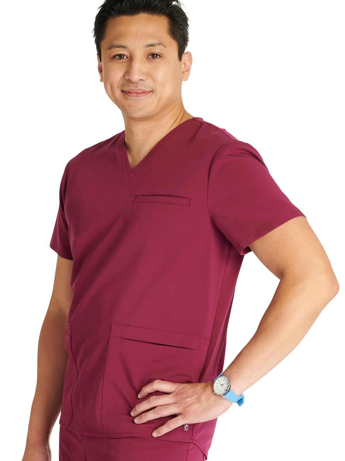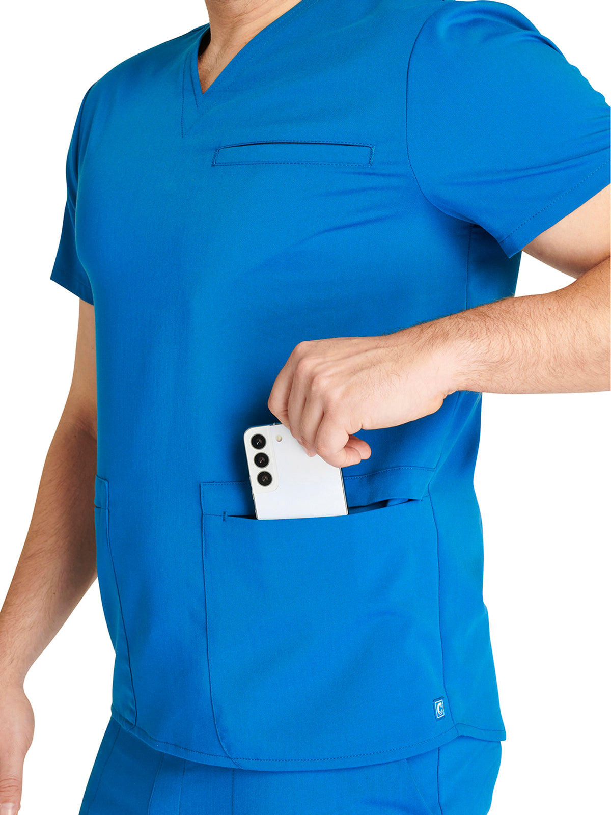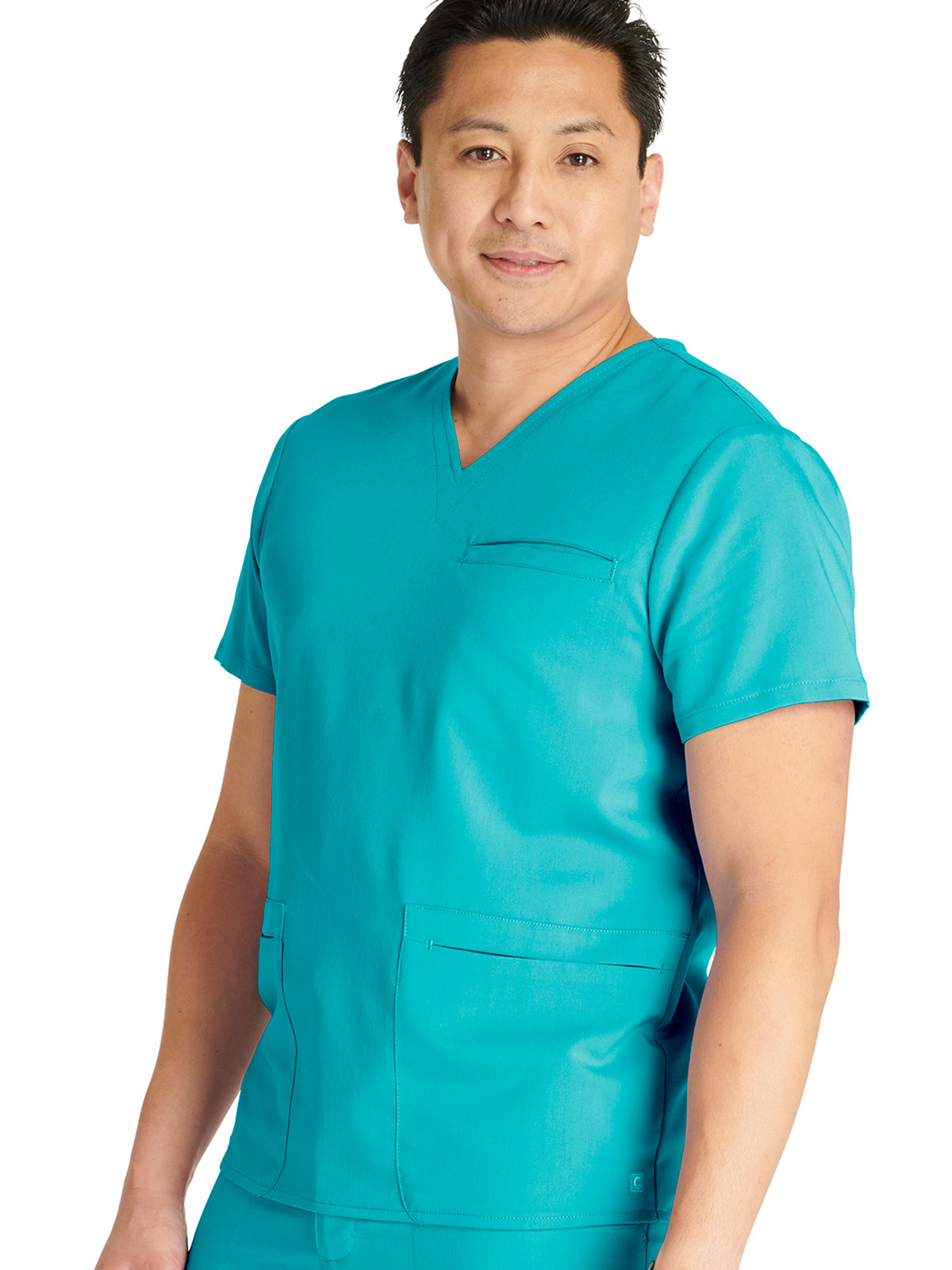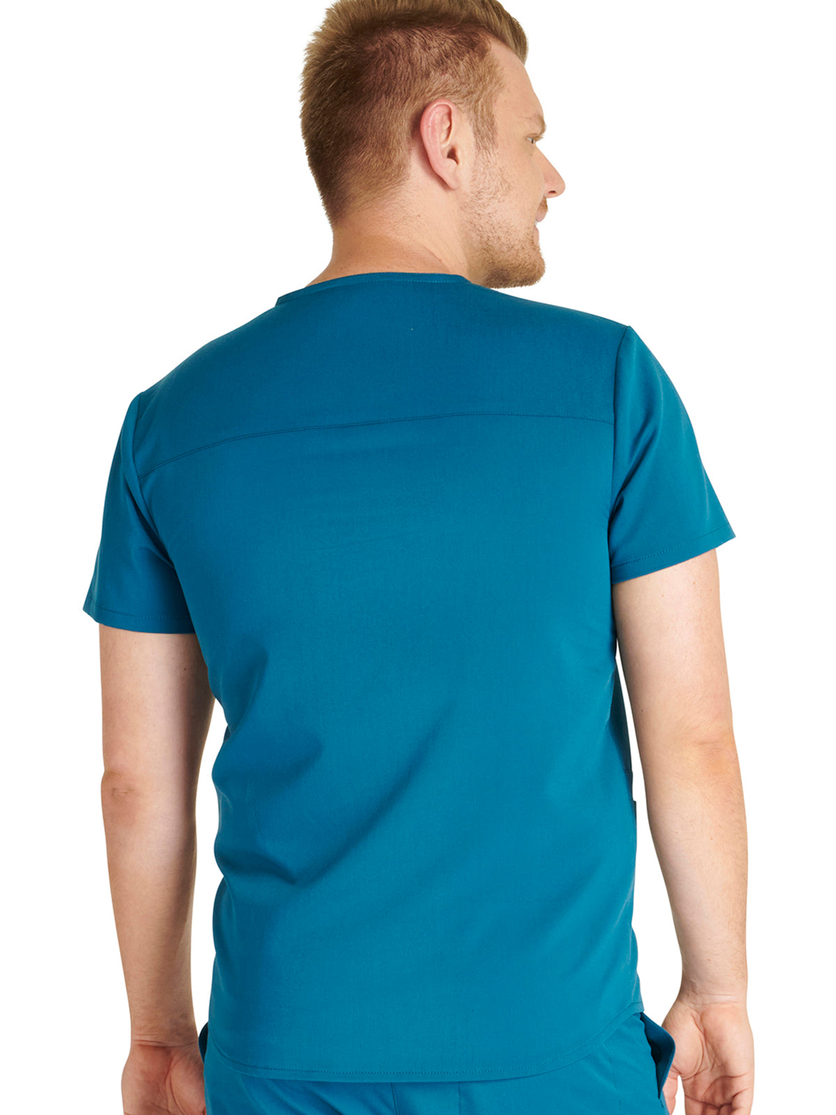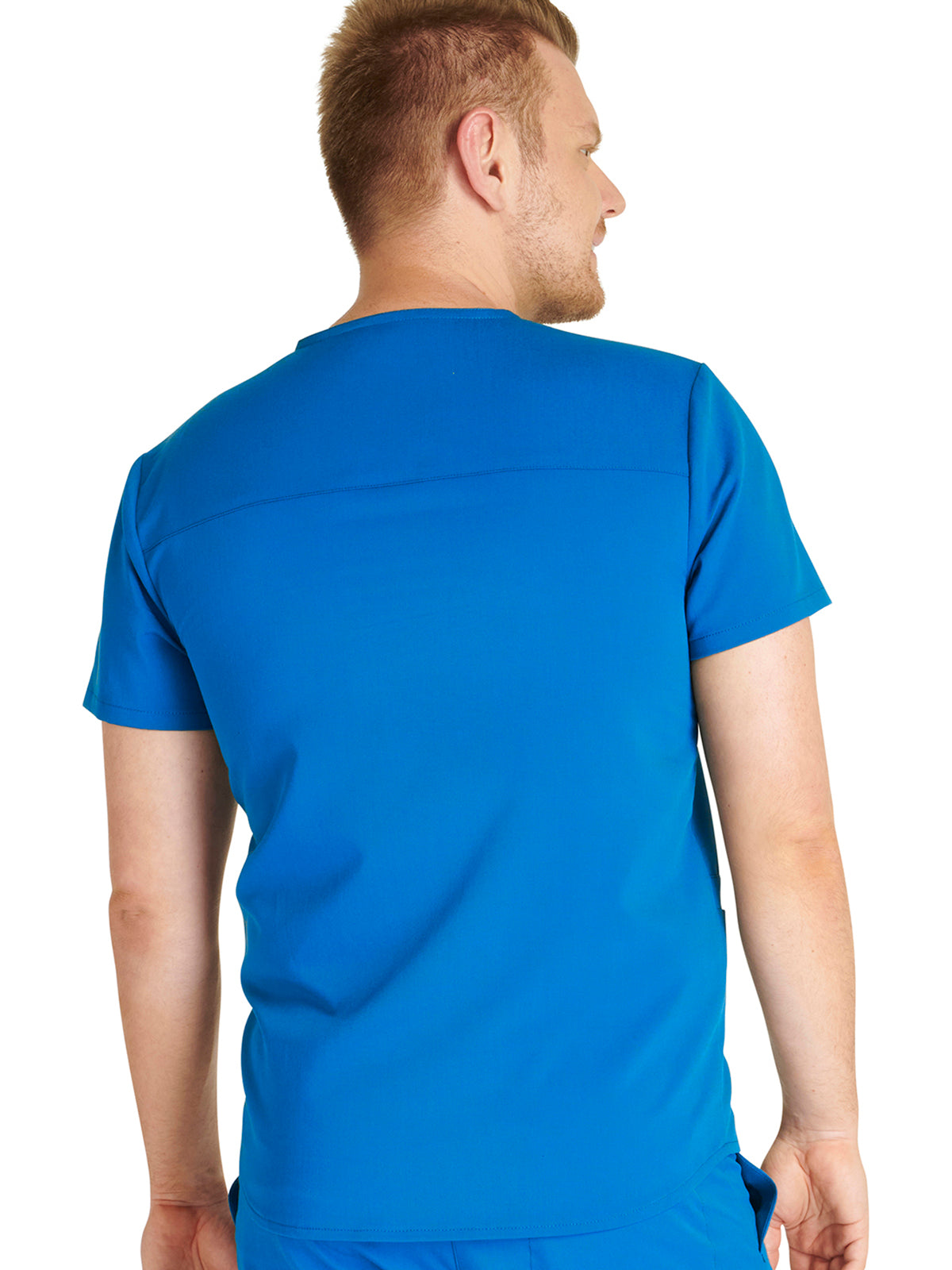 Men's V-Neck 3 Pocket Scrub Top with spacious pockets, easy-care comfort, and durability.