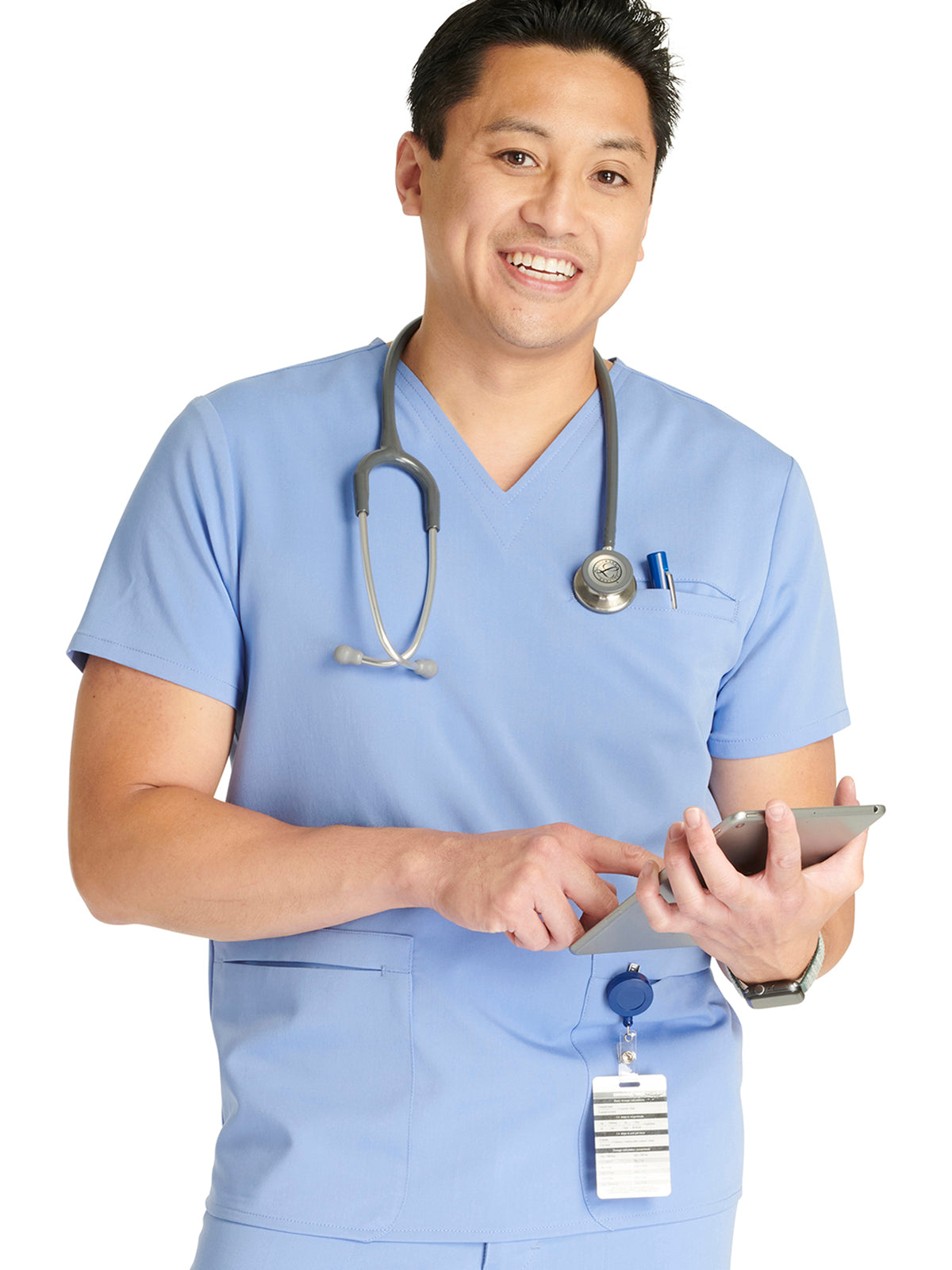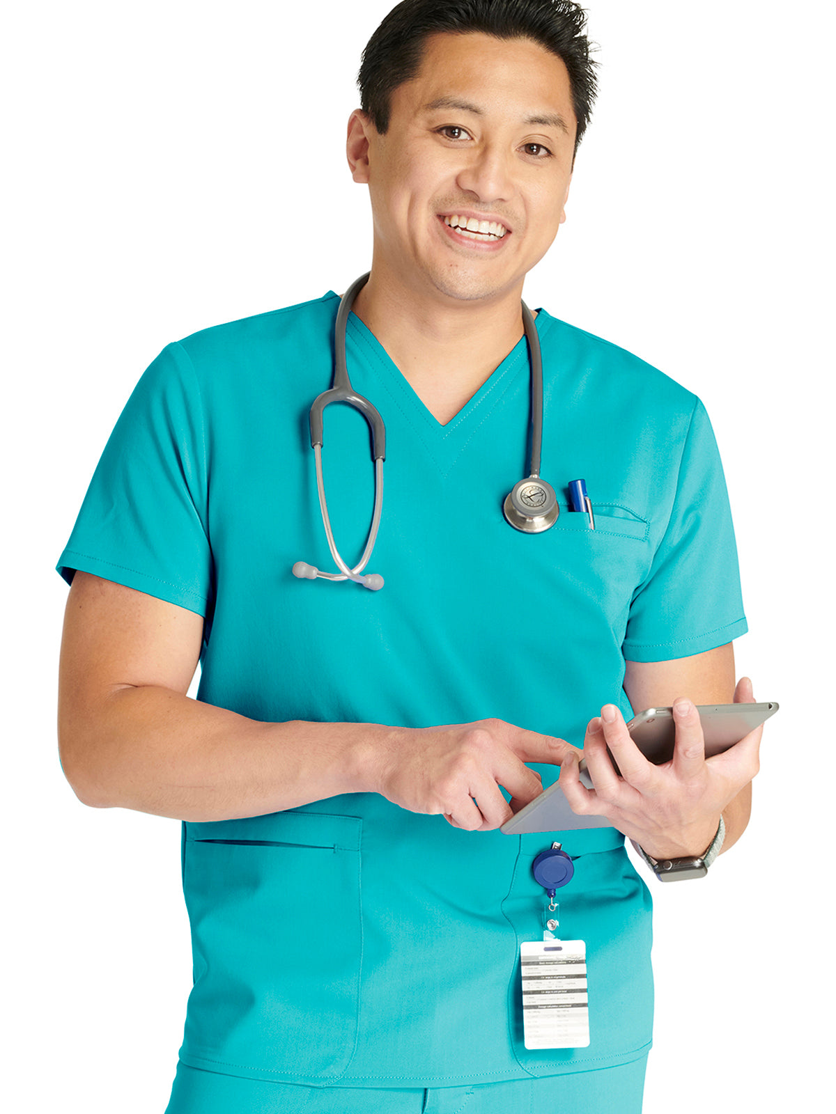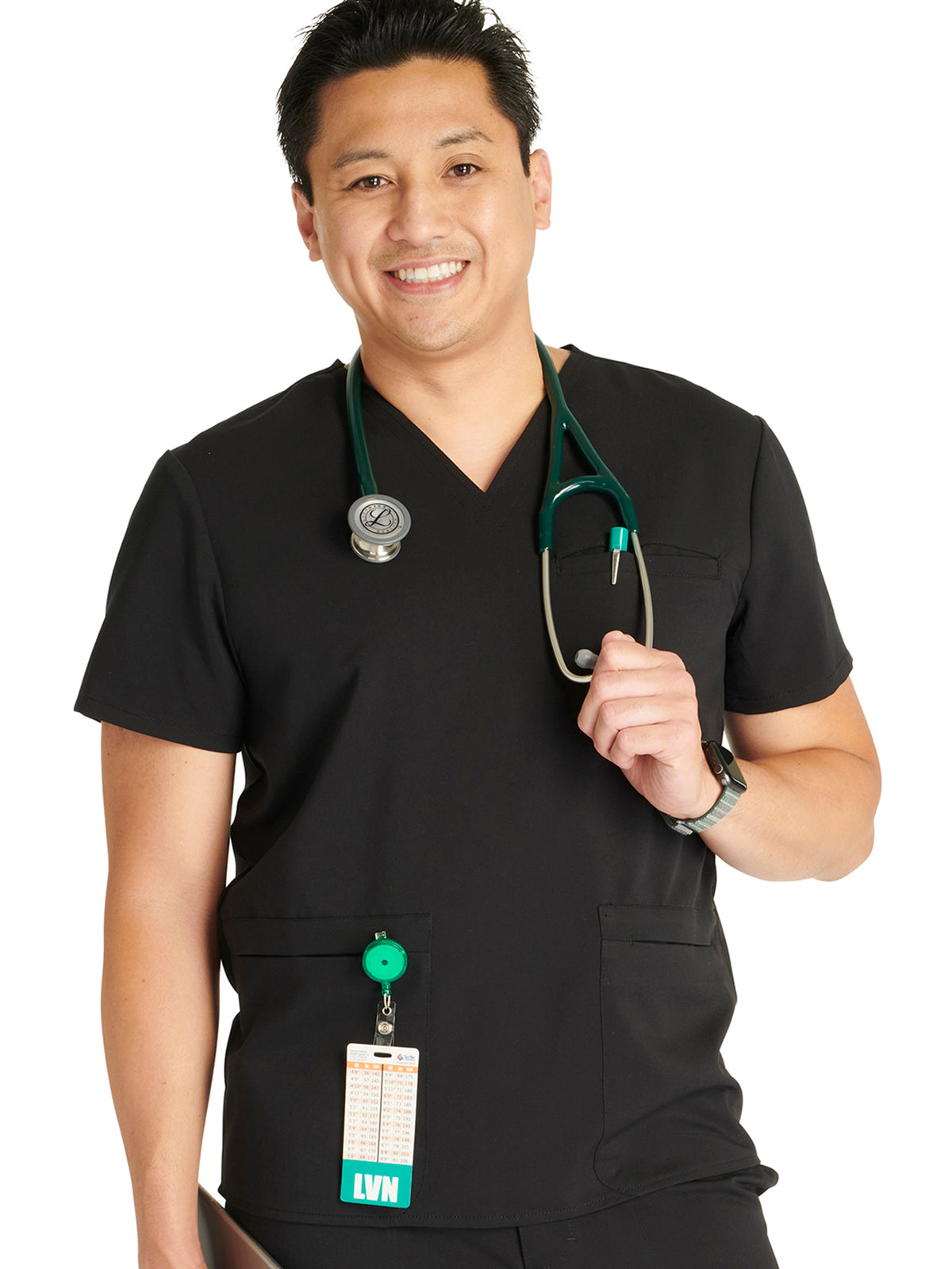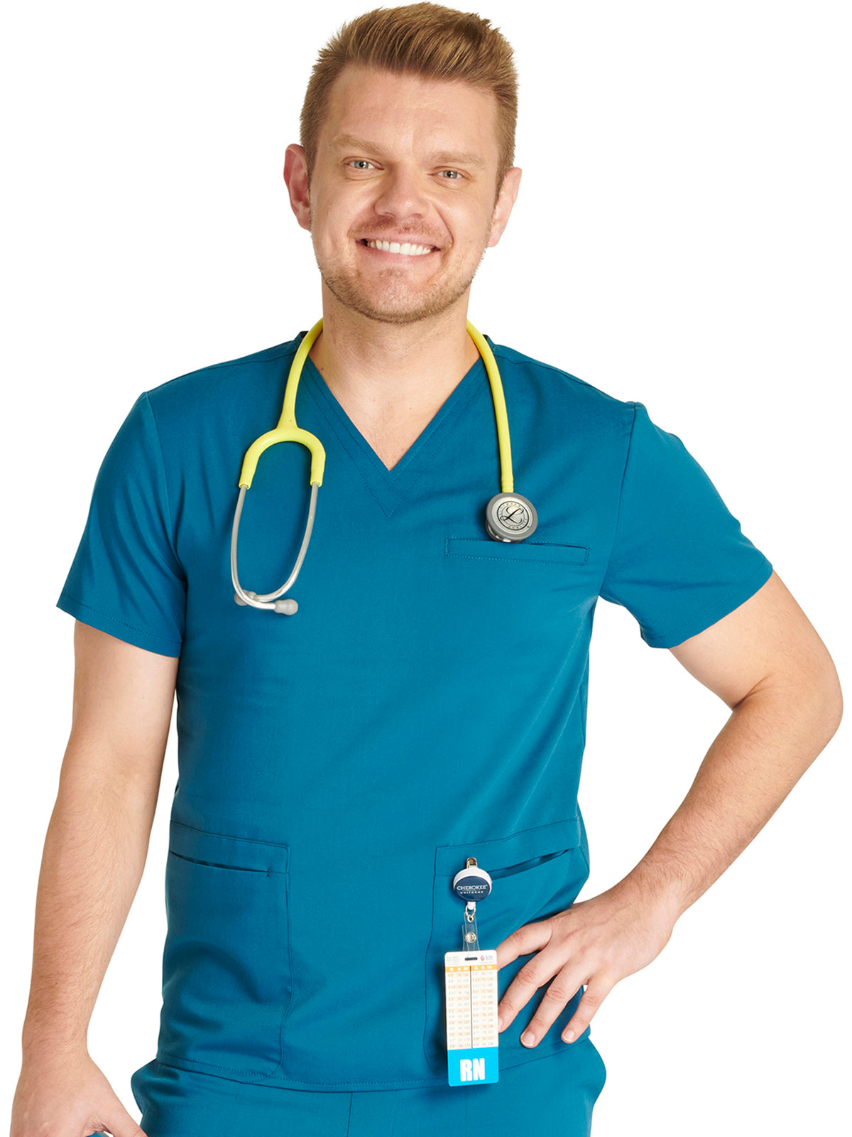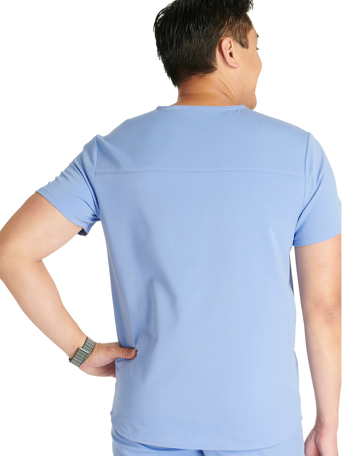 Men's V-Neck 3 Pocket Scrub Top with spacious pockets, easy-care comfort, and durability.