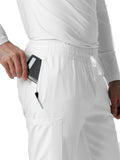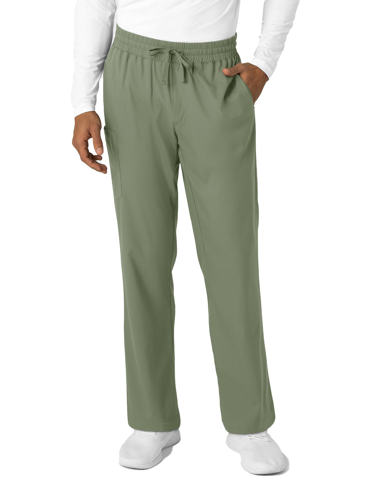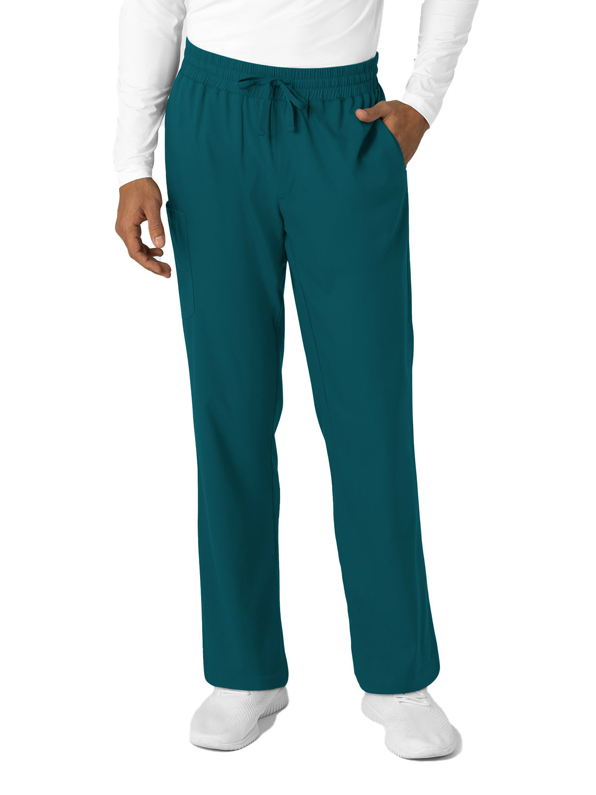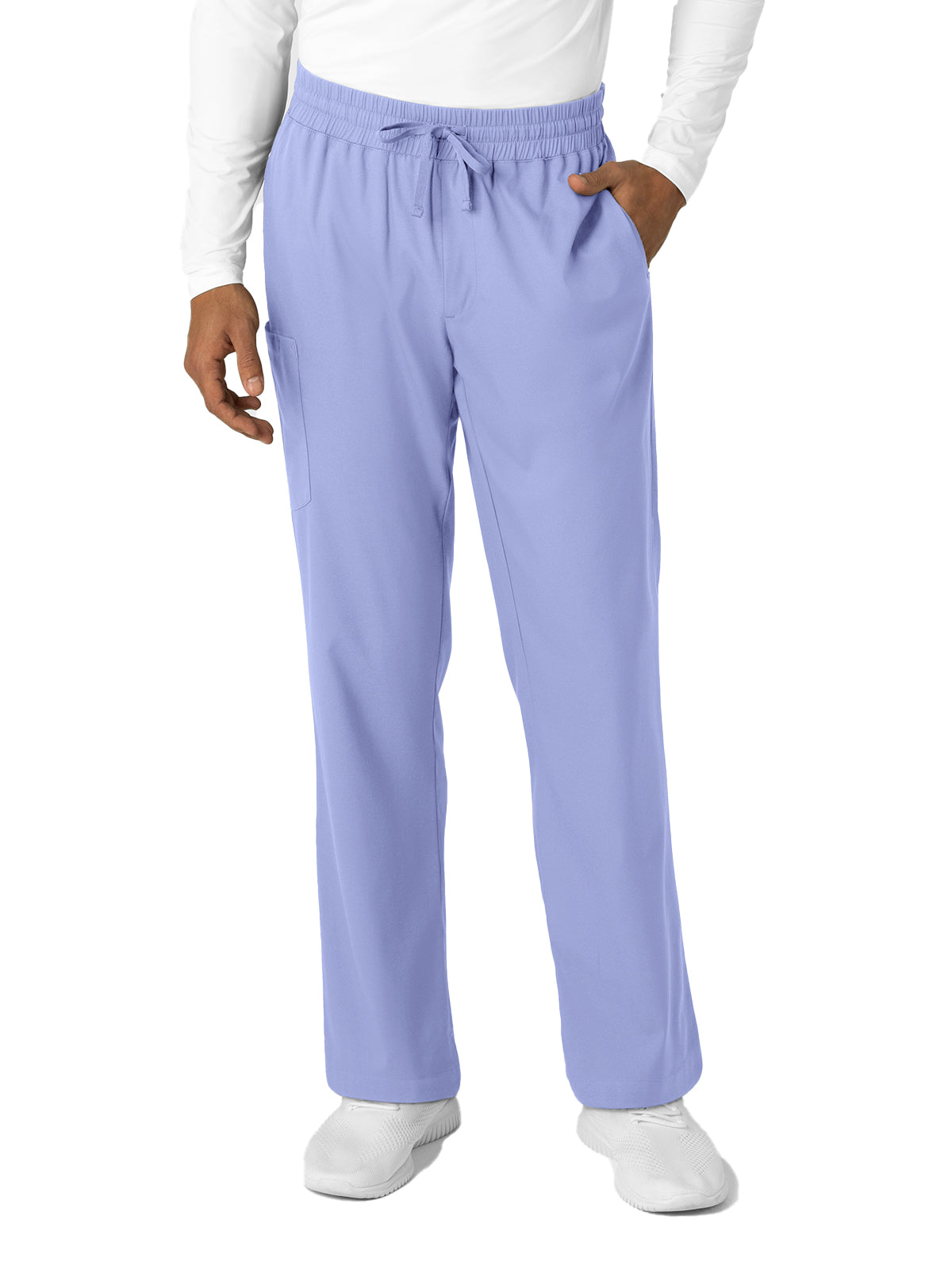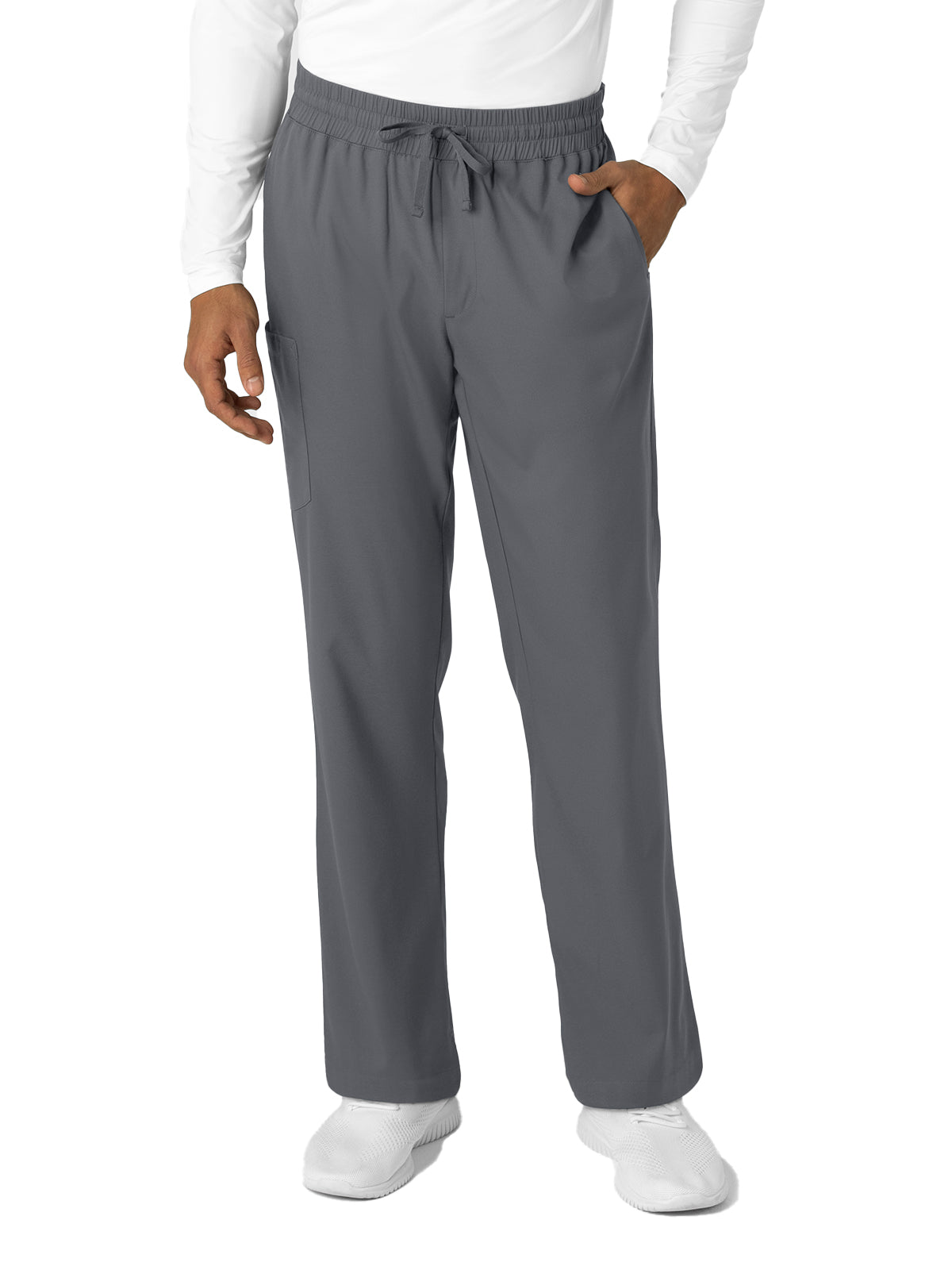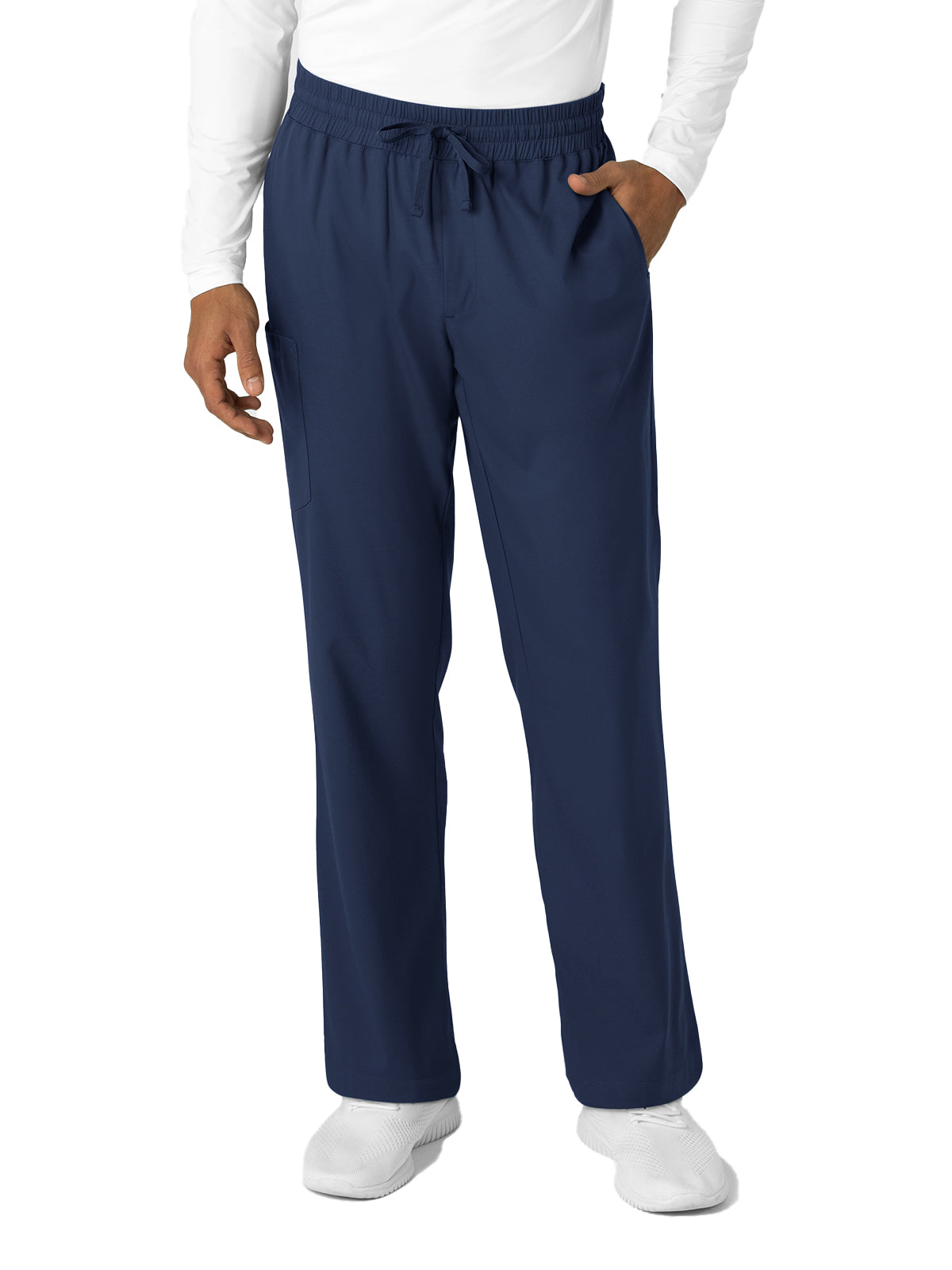 Fresh, modern, classic. These men's straight-leg scrub pants merge on-trend style with the functionality you need to be successful every shift. They're fabricated from a soft and stretchy fabric that's sustainably made, letting you feel good about doing your part to help protect the planet while you care for your patients. Get a customized, adjustable fit with a drawstring on the waist, which is made with a wide elastic band for comfort that never digs in or restricts your movement. Keep everything you need right by your side with two side-entry pockets plus a small security pocket that helps secure valuables you'd rather stay with you. A cargo pocket includes a bartack stitch for your pen. Internal vent slits let your scrub pants rest easy over your shoes, elongating the silhouette for a clean-lined drape. Built for bold confidence, these scrub pants give you the versatility you're looking for to make every shift one you can feel good about when it's done.