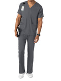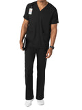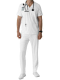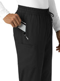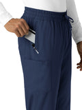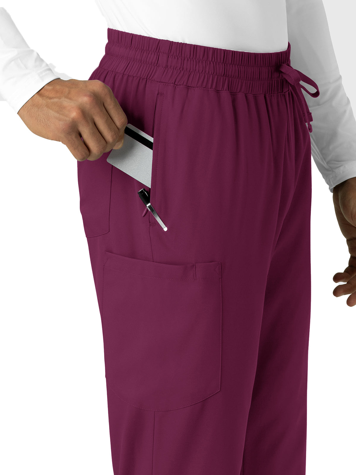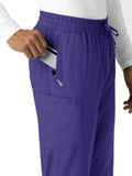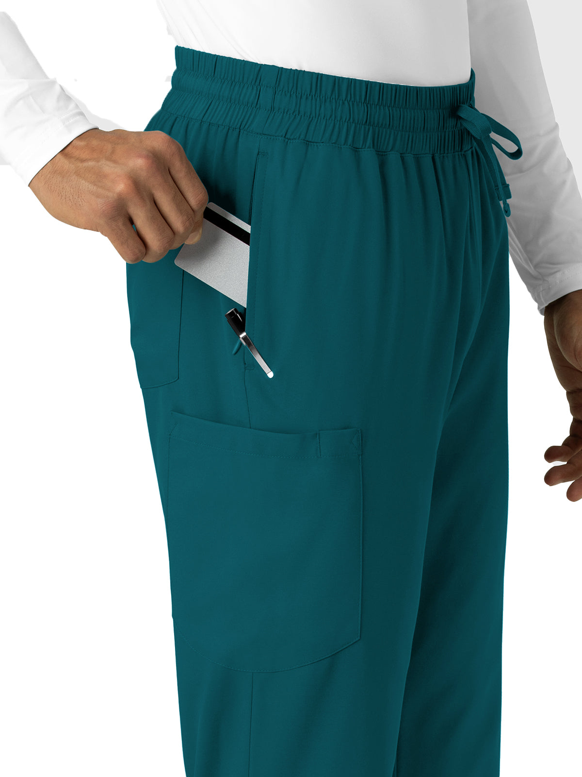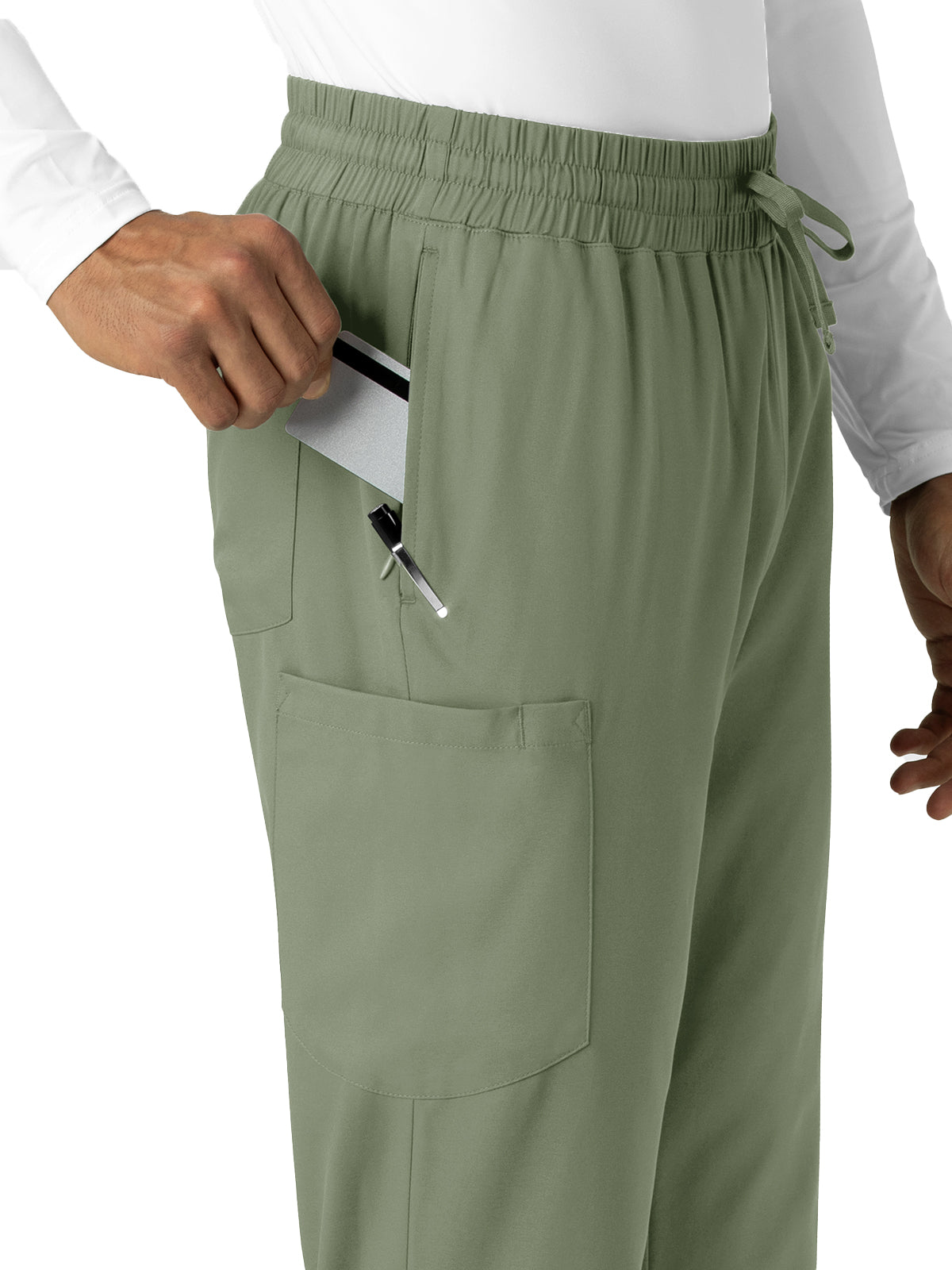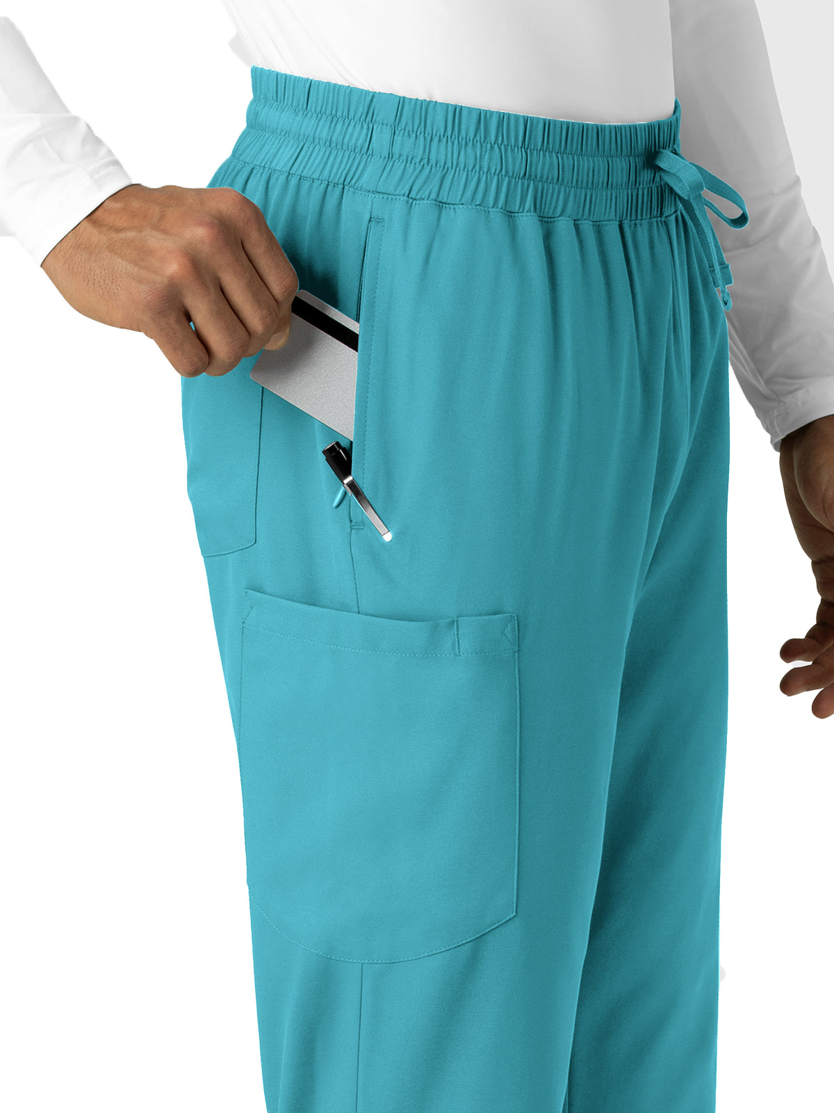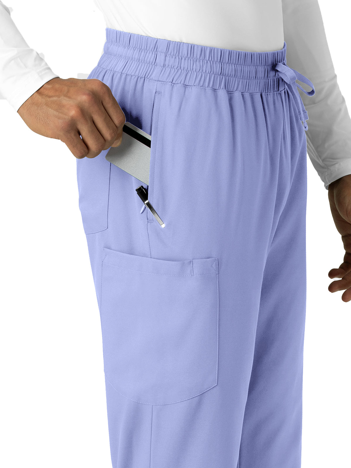 Fresh, modern, classic. These men's straight-leg scrub pants merge on-trend style with the functionality you need to be successful every shift. They're fabricated from a soft and stretchy fabric that's sustainably made, letting you feel good about doing your part to help protect the planet while you care for your patients. Get a customized, adjustable fit with a drawstring on the waist, which is made with a wide elastic band for comfort that never digs in or restricts your movement. Keep everything you need right by your side with two side-entry pockets plus a small security pocket that helps secure valuables you'd rather stay with you. A cargo pocket includes a bartack stitch for your pen. Internal vent slits let your scrub pants rest easy over your shoes, elongating the silhouette for a clean-lined drape. Built for bold confidence, these scrub pants give you the versatility you're looking for to make every shift one you can feel good about when it's done.