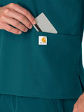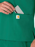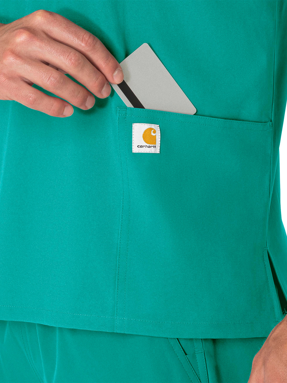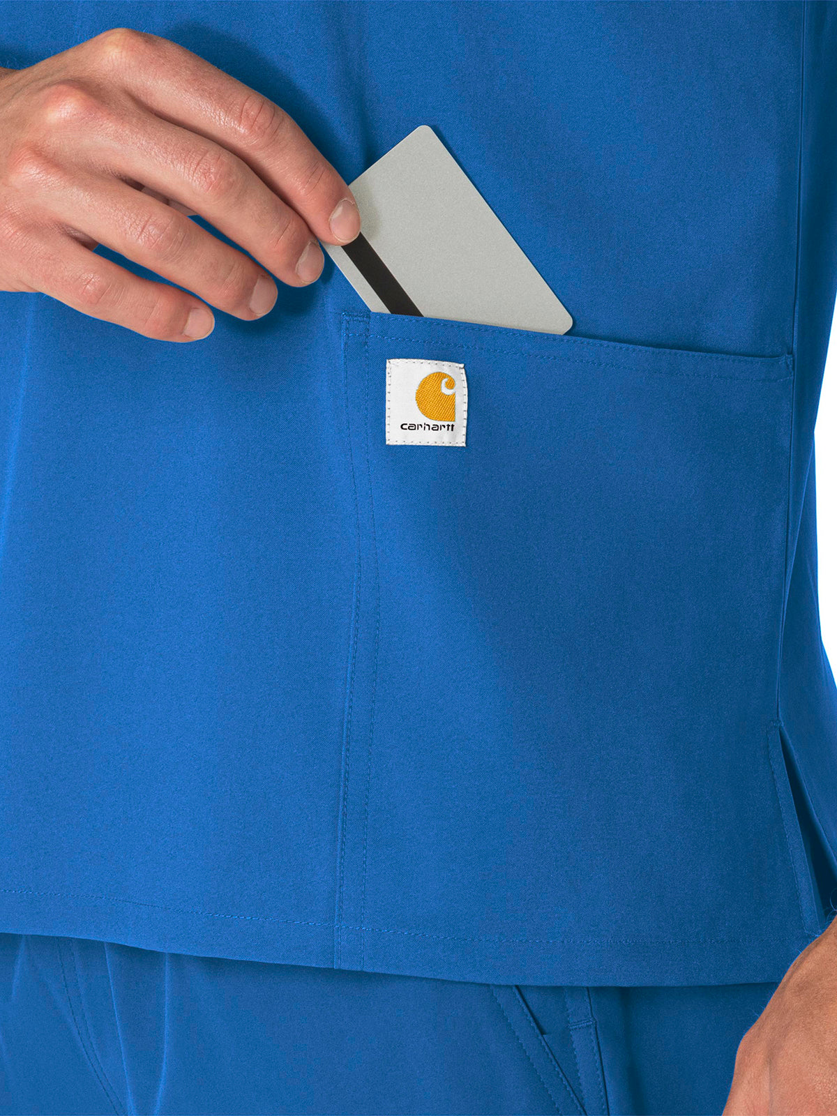 Carhartt Scrubs Women considered the need for accommodations for health workers and professionals while tailoring scrubs. There are a total of six pockets available in Carhartt Scrubs Women, out of which two are front large pockets, one chest pocket with a pen slot, one internal cell phone pocket at the left, and one internal successor pocket on the right(which is deeper than normal pockets), one additional pocket which can be used to carry items like wallets. These types of pockets in Carhartt Scrufulfill fulfill the needs of medical professionals, making it a top-notch choice for you.