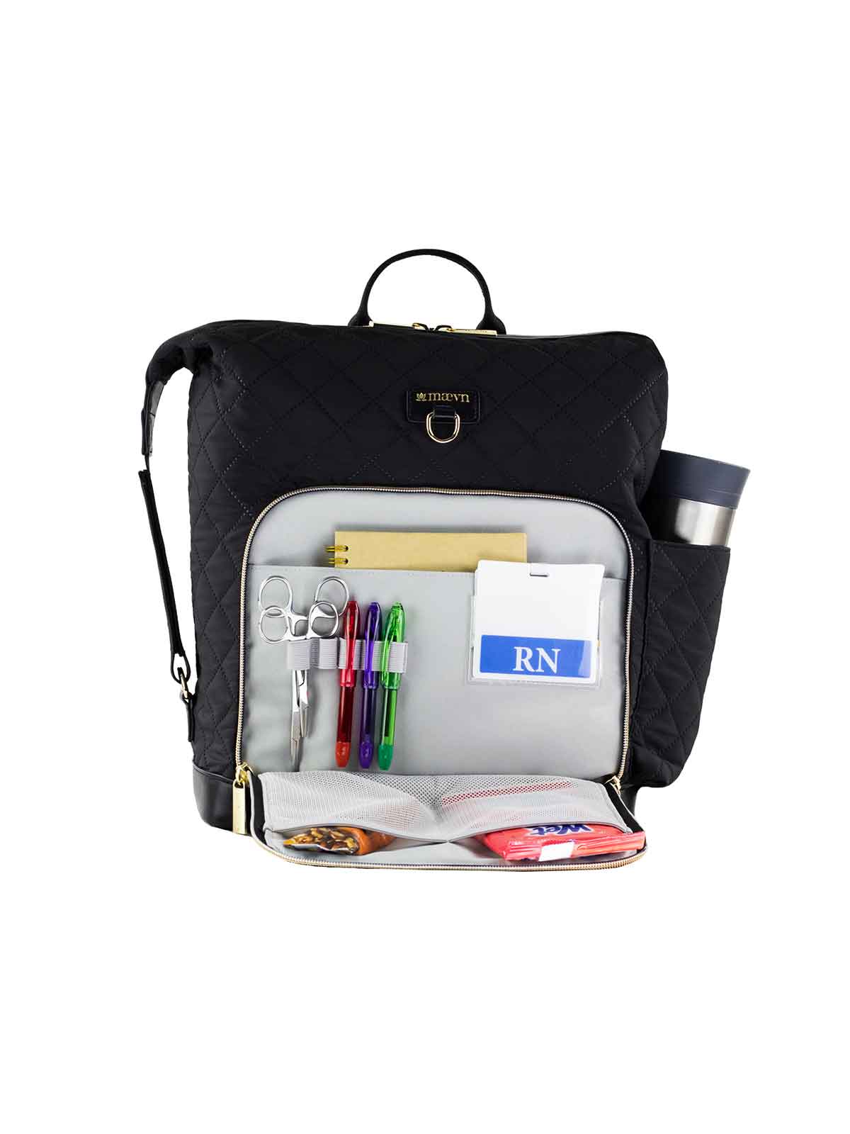 * Large front zipper pocket that opens wide for easy reach with built-in pockets