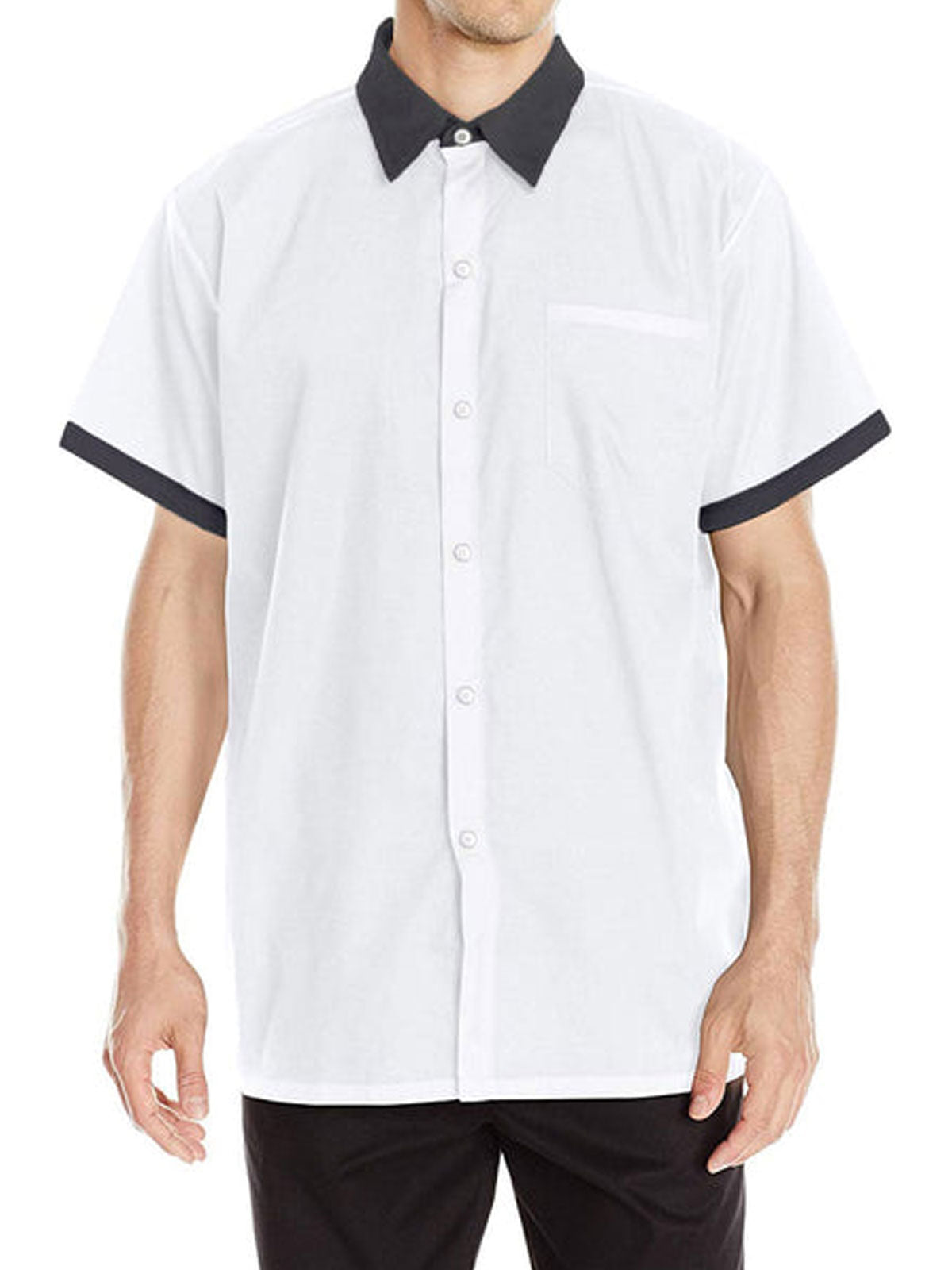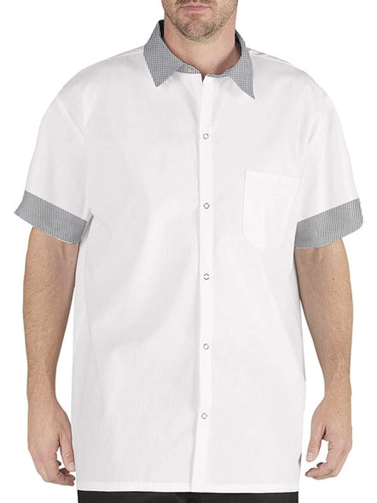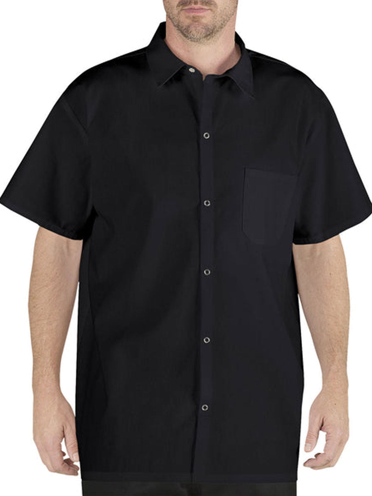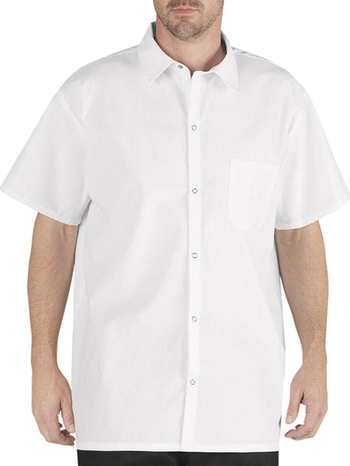 Our six snap button cook shirt is an easy care brushed poly cotton. This kitchen basic provides a polished look and is soft and comfortable with a longer body.