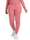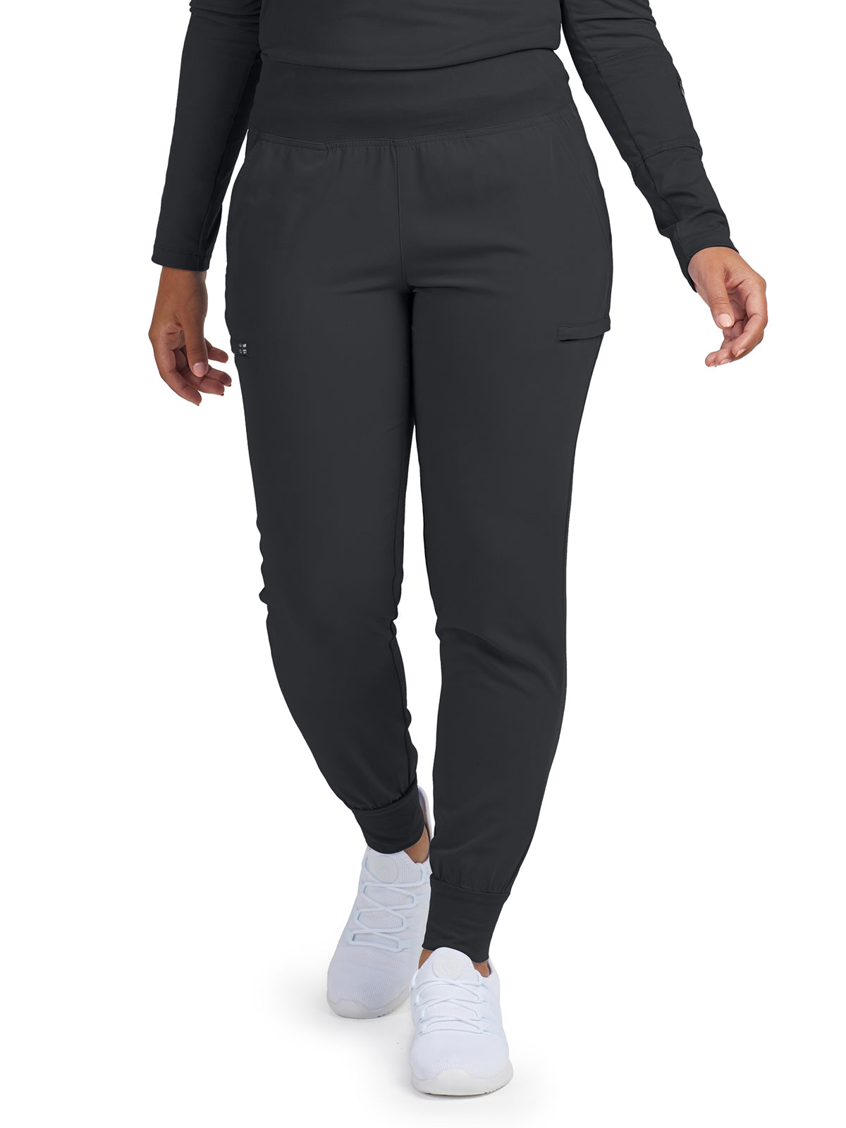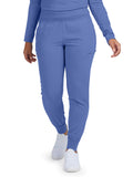 Modern Fit, High-Rise jogger with 6 pockets; 2 front pockets, 2 zipper cargo pockets and 2 back pockets. A cozy knit waistband for comfort and drawstring for adjustability. Knit cuffs complete the easy jogger silhouette.