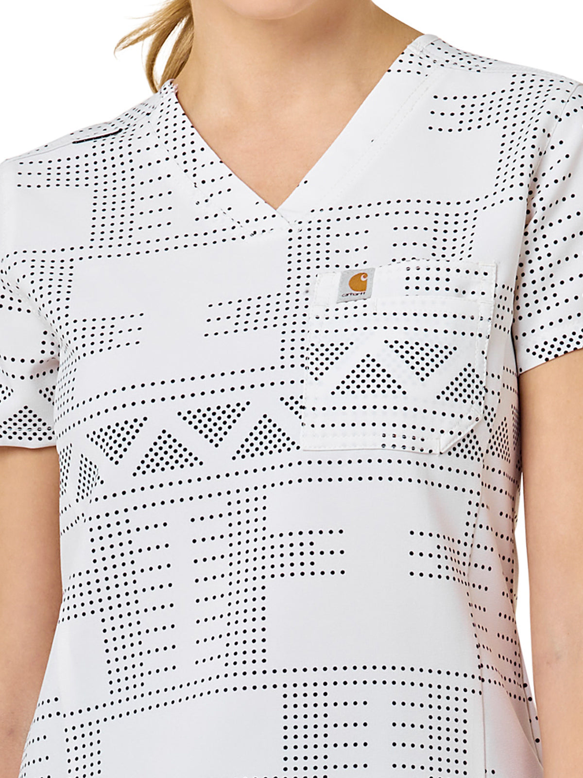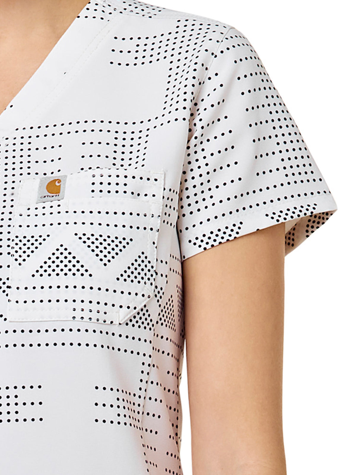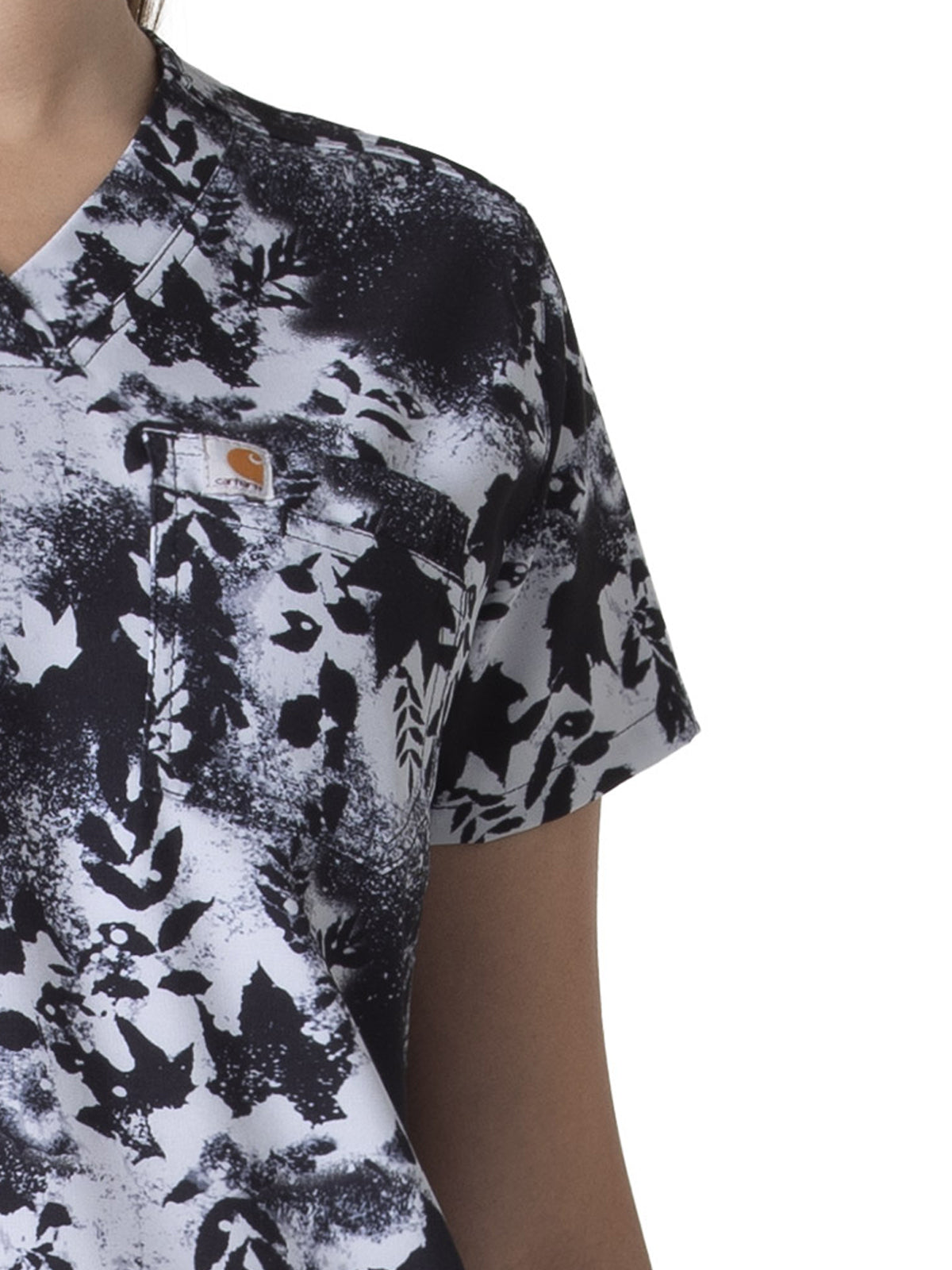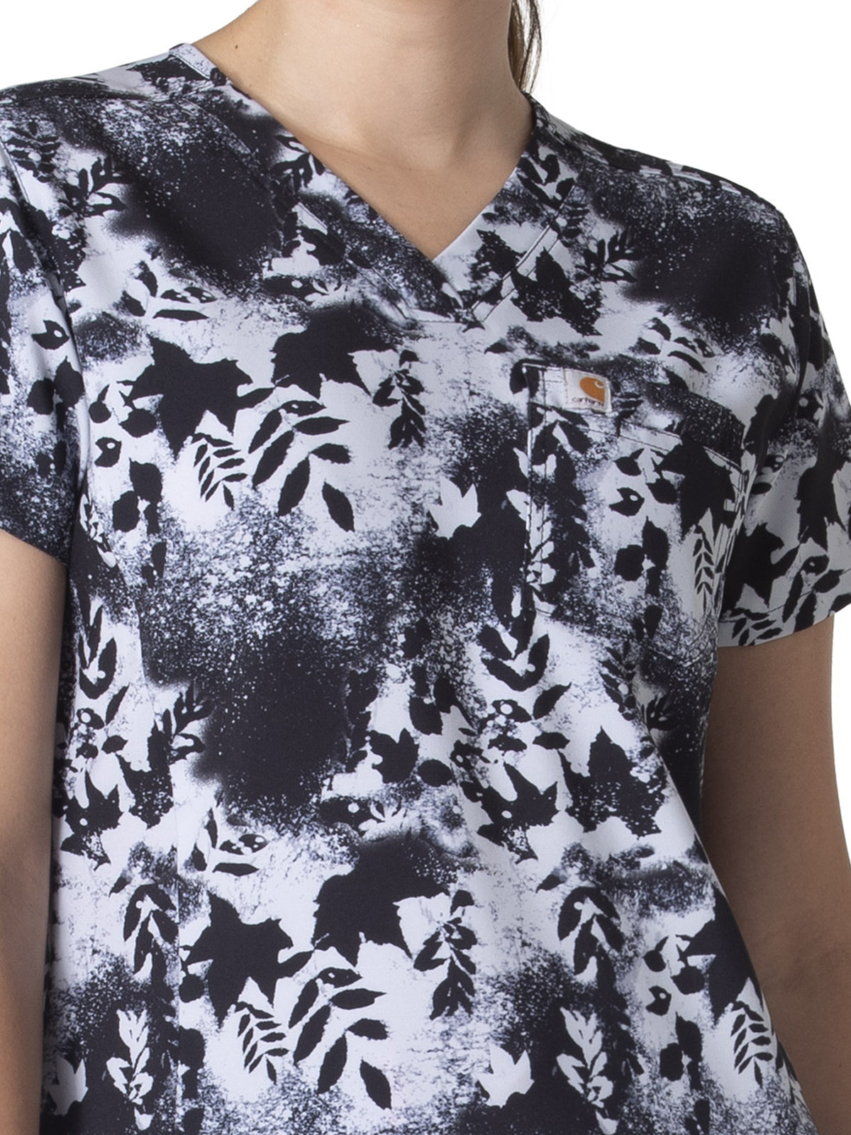 Elevate your professional style with the CROSS-FLEX by Carhartt Women's Tuck-In Fern Stencil Print Scrub Top. Ideal for tucking into your favorite scrub pants, this flattering scrub top is breathable, durable, functional, and oh so comfortable.