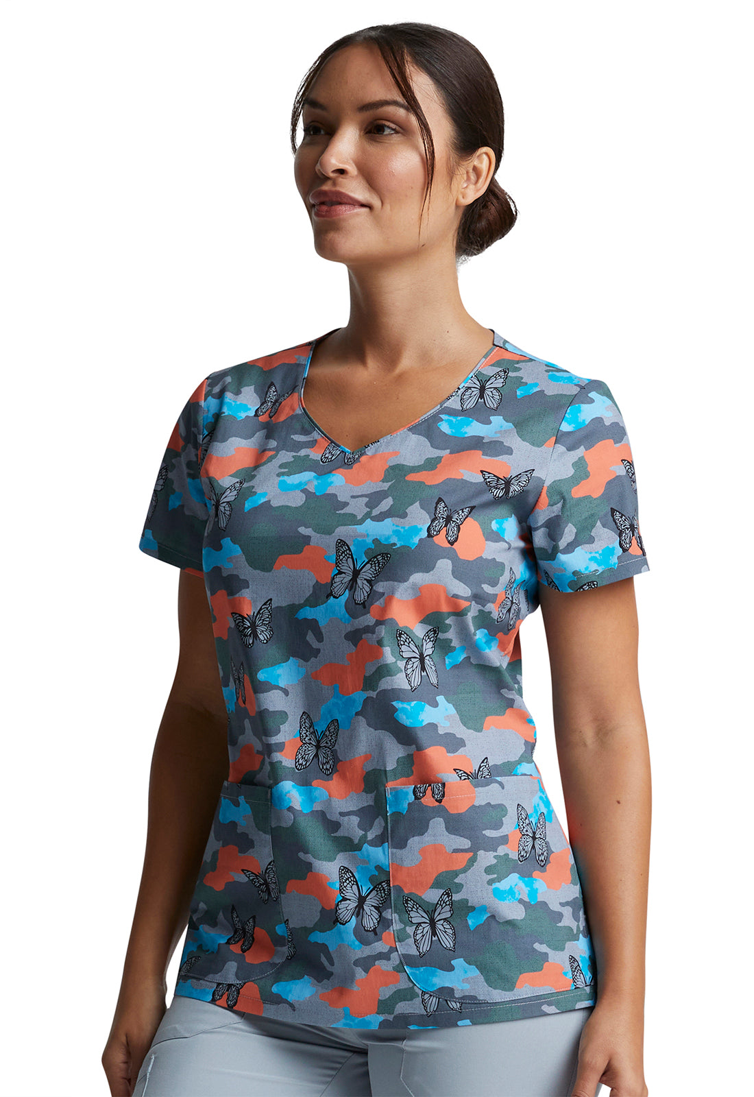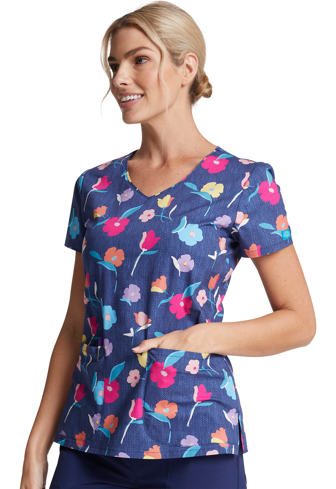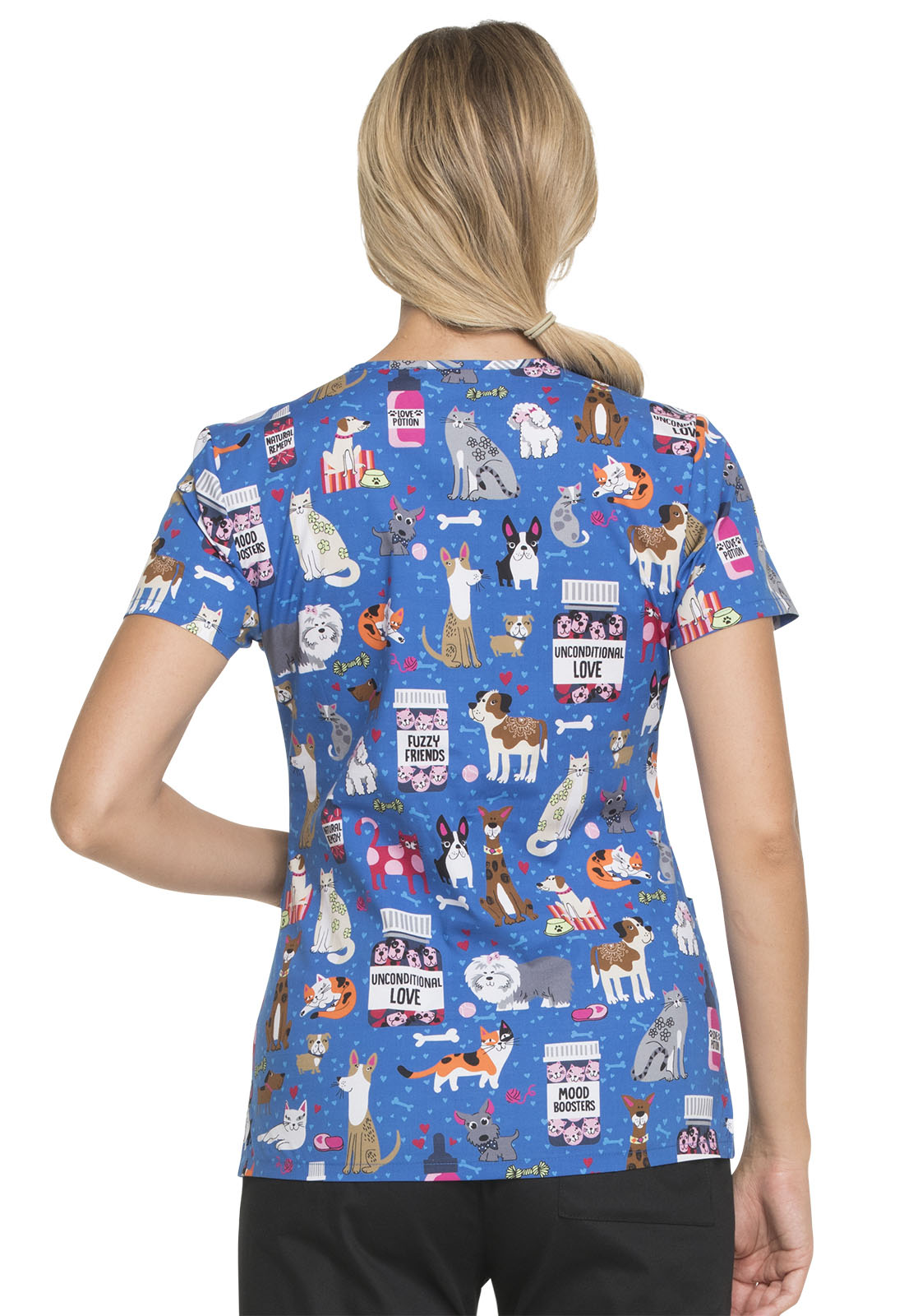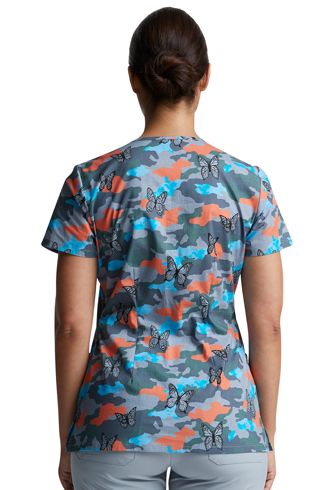 This V-neck top commands attention with its patch pockets, back darts, and side vents. Length: 26"