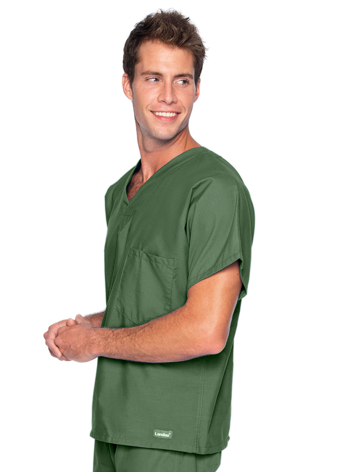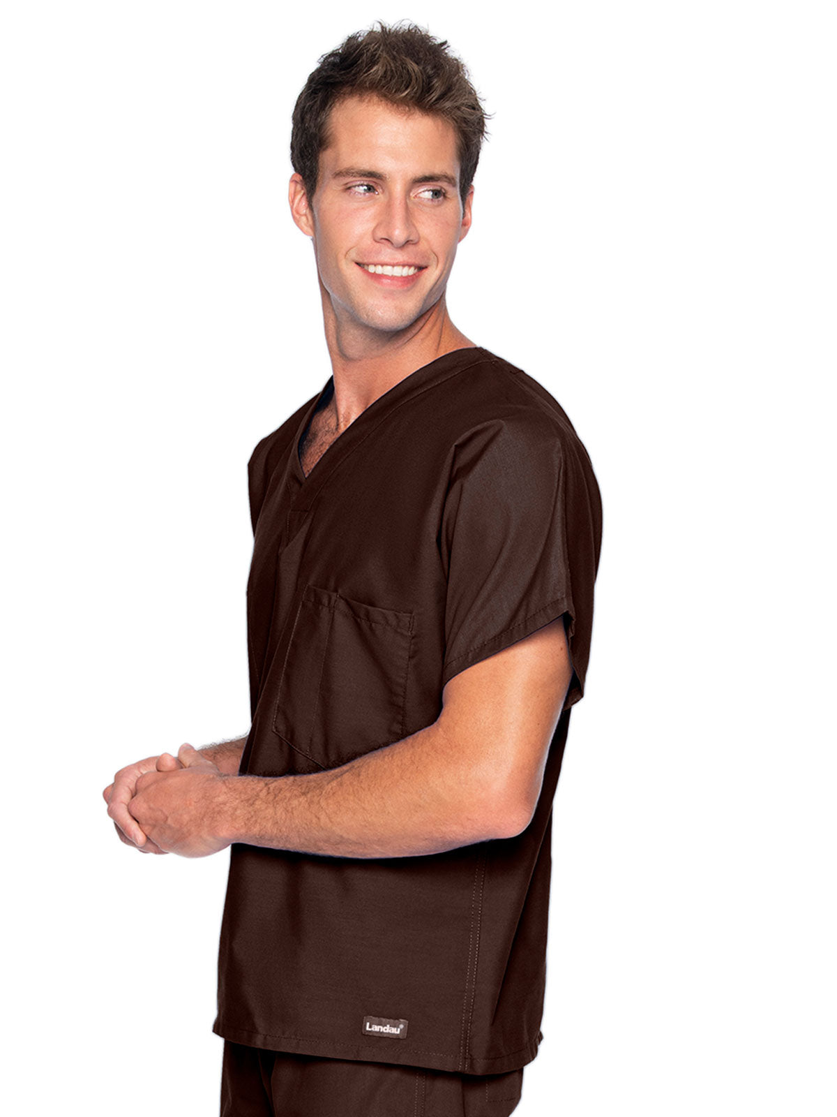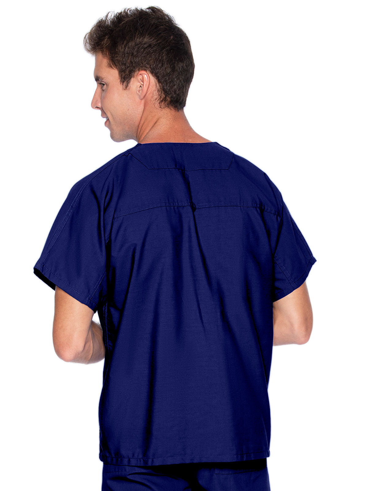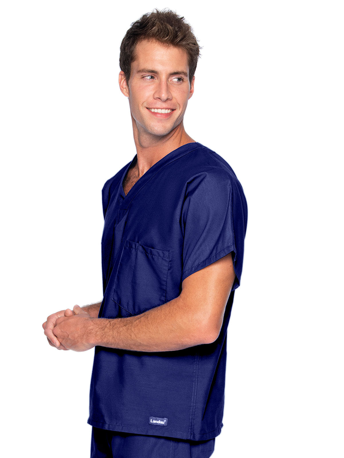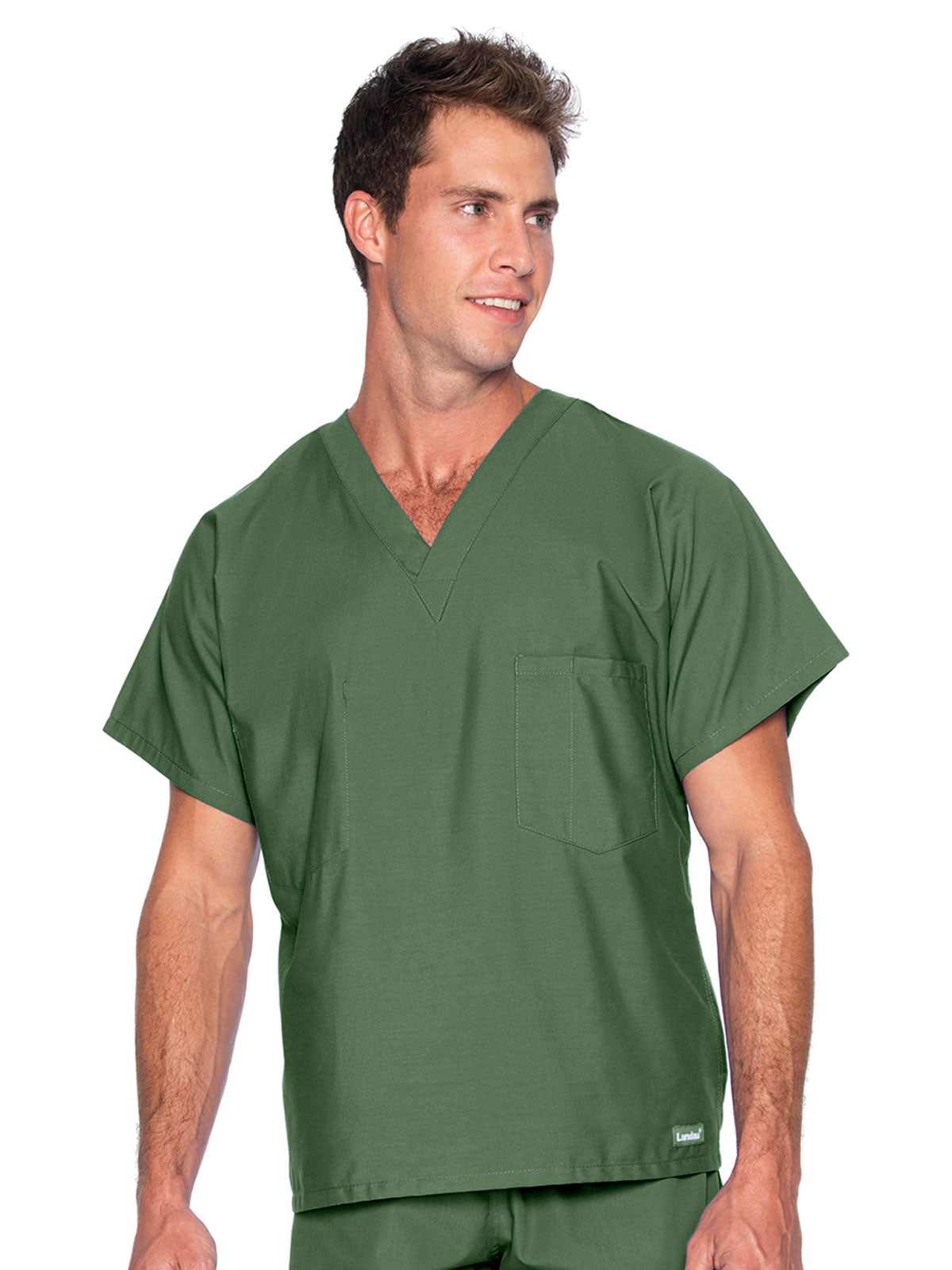 Landau Scrubs move with you all day long. The 7502 is a reversible, unisex V-neck top with reinforced neck facing, dolman sleeves and a breast pocket on both sides. Made of polyester/cotton fabric.