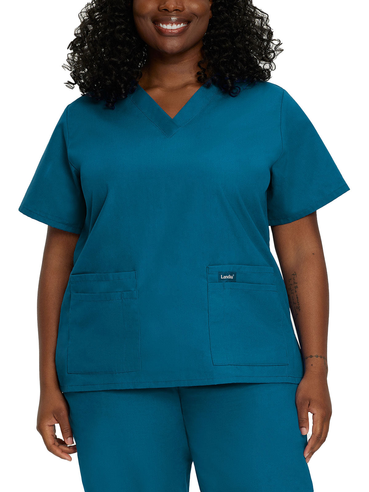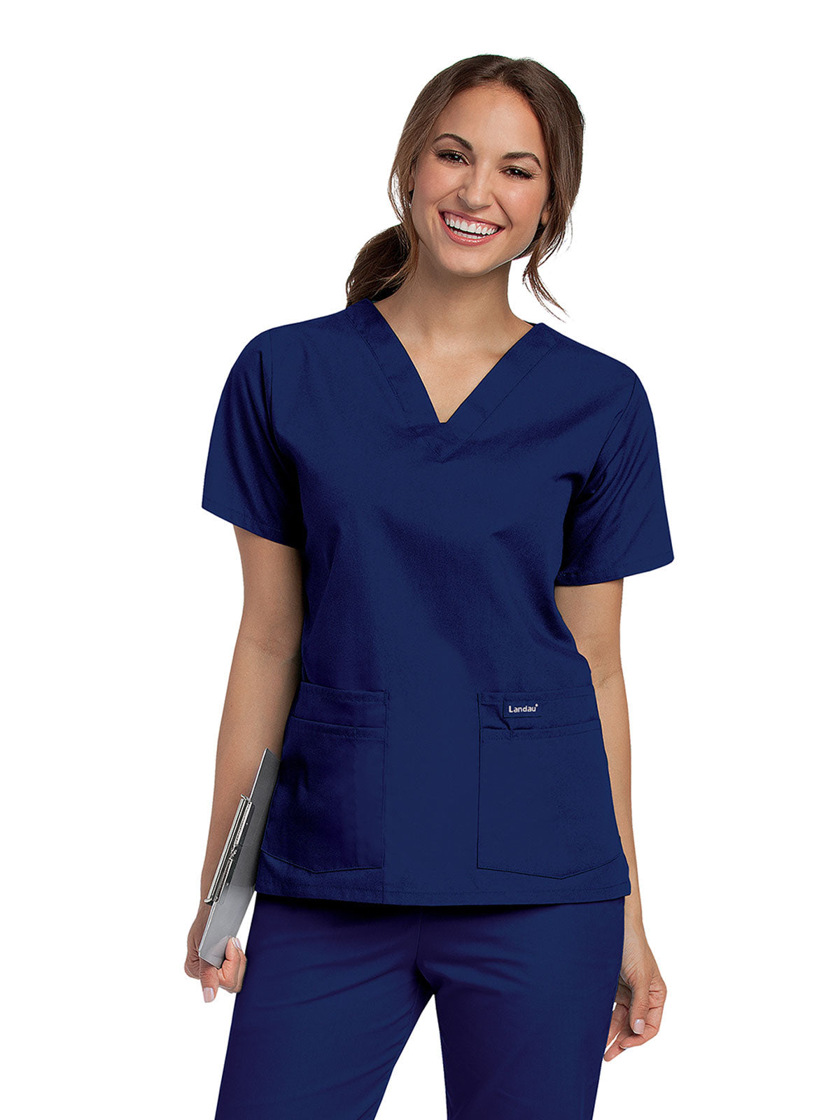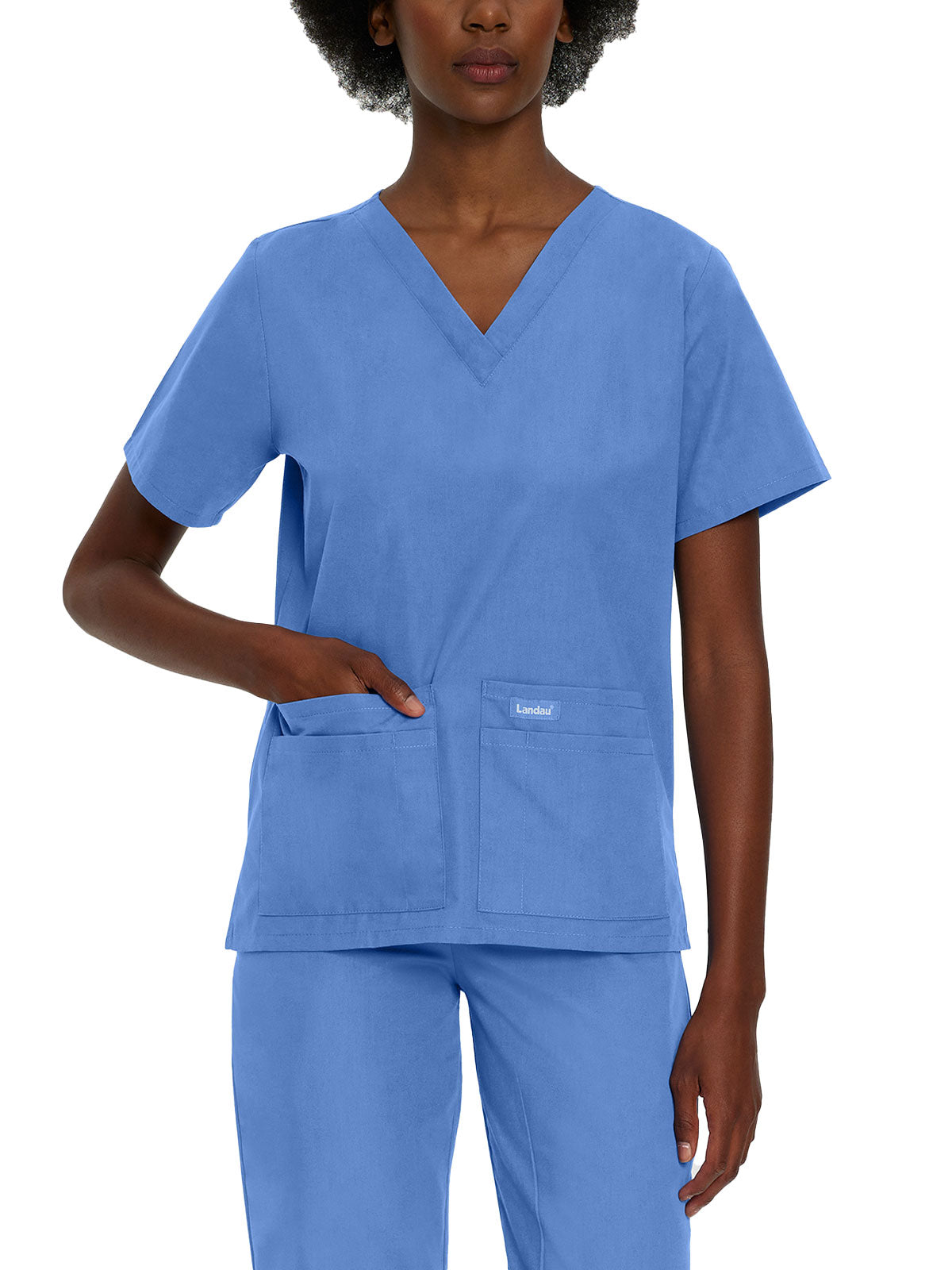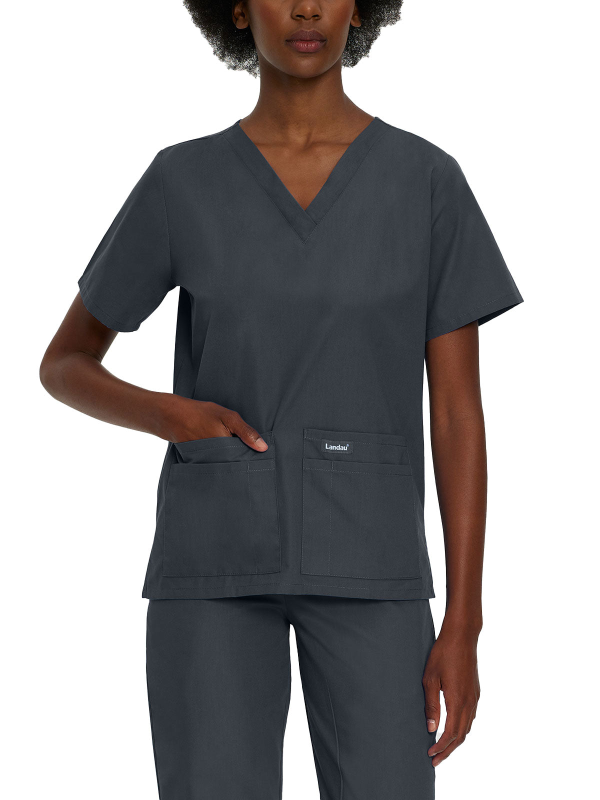 We design quality medical scrubs and medical uniforms with universal appeal. Comfortable and functional, this V-neck scrub top features a generous fit complemented by set-in sleeves for added freedom of movement and all-day wearability. A stylish silhouette features four pockets total, ensuring your medical essentials are always within easy reach. Whether it's Landau scrubs for men or scrubs for women, we're known for producing scrubs that work as hard as you do!