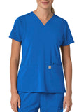 The Carhartt Women's Flex Panel V-Neck Scrub Top, constructed from durable, comfortable polyester material with Carhartt's signature Rugged Flex™ stretch technology. This scrub top ensures unrestricted movement, no matter the task. The rib-knit inserts at the shoulders and sleeves, along with the racerback detail, provide the freedom to move with ease, making your job more manageable. Not only do these scrubs keep you comfortable, but they also enhance your productivity.