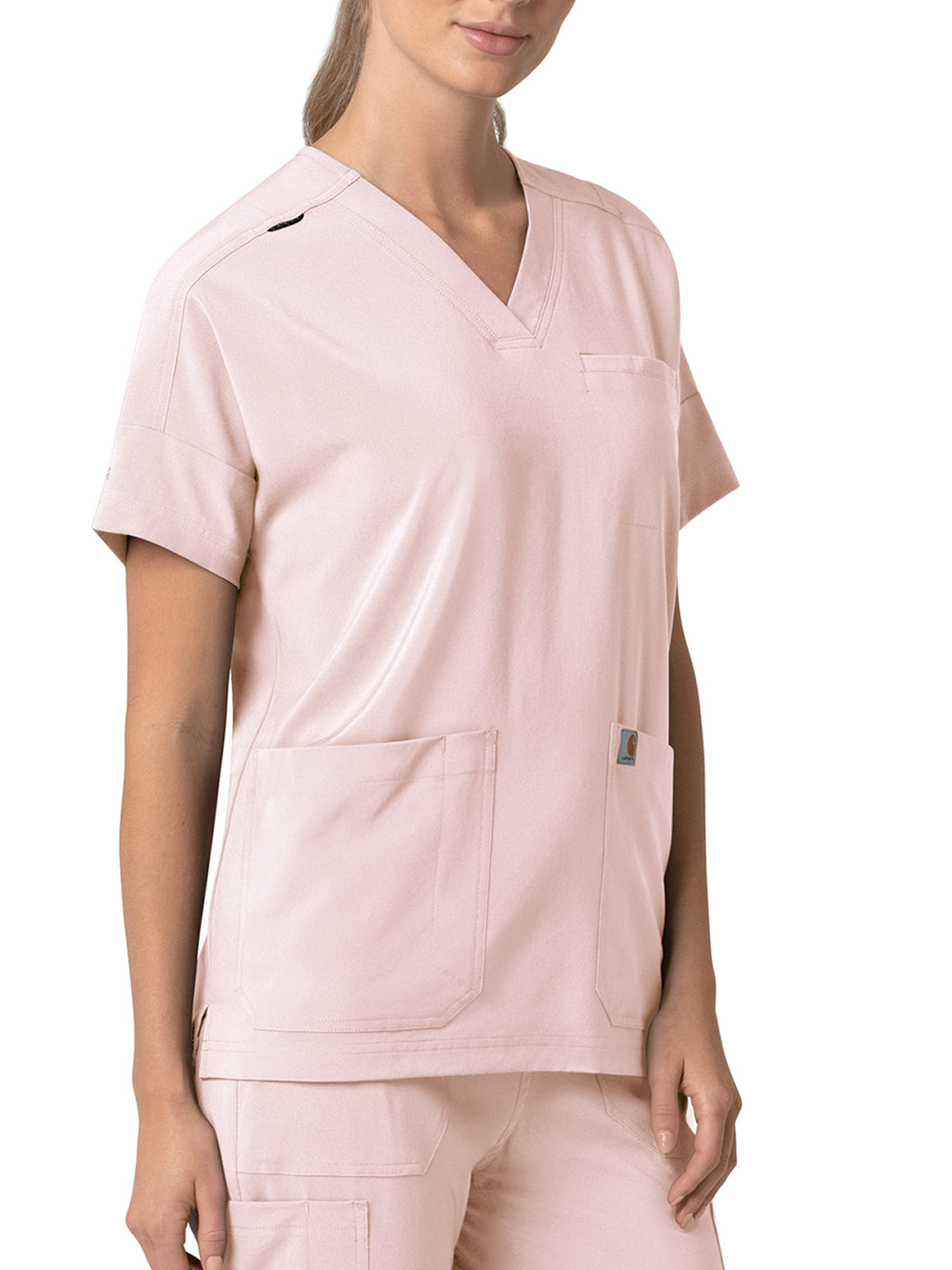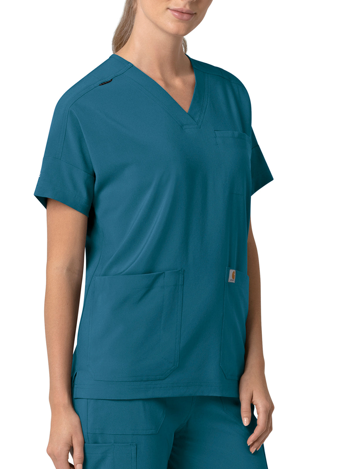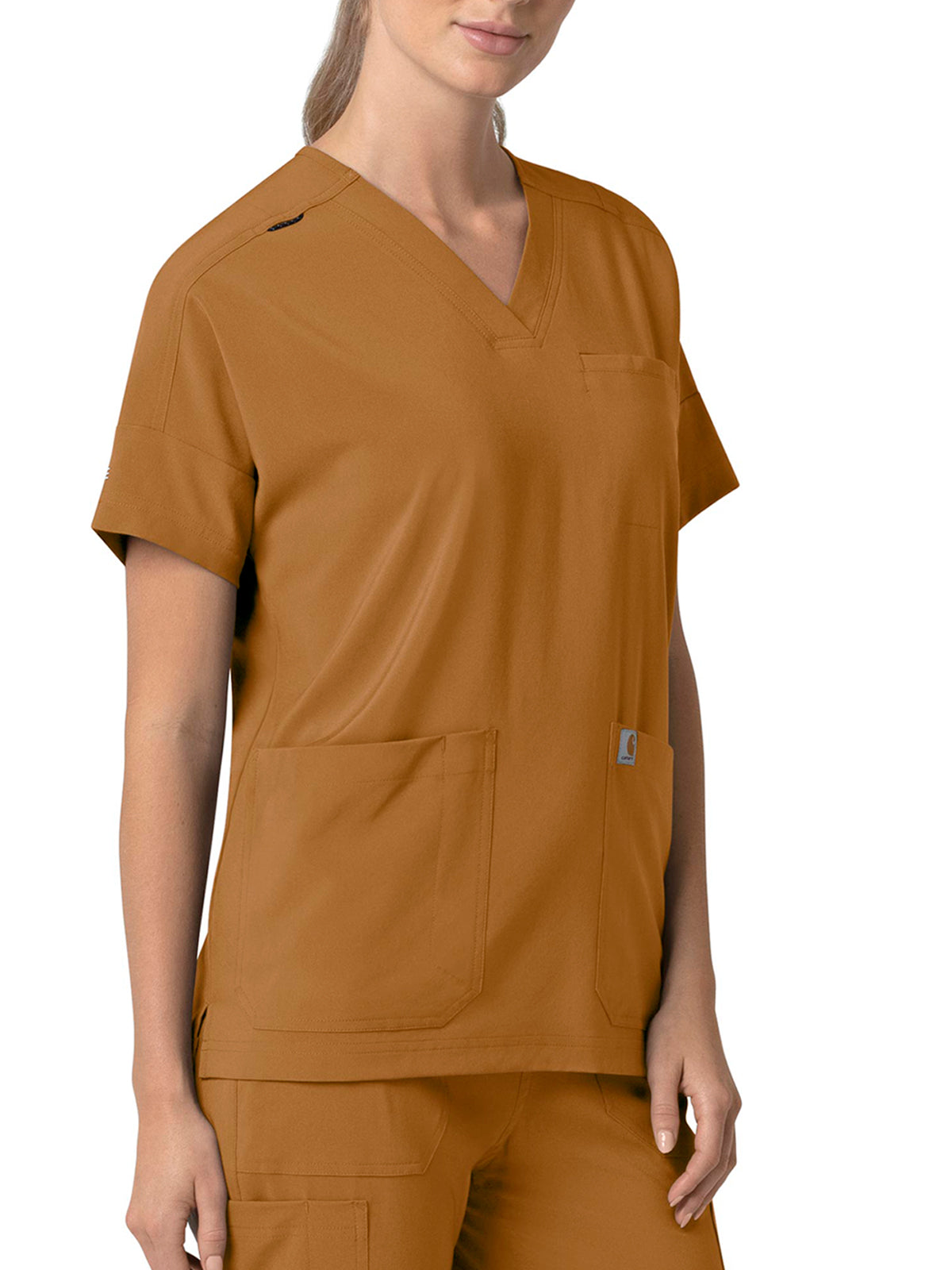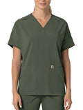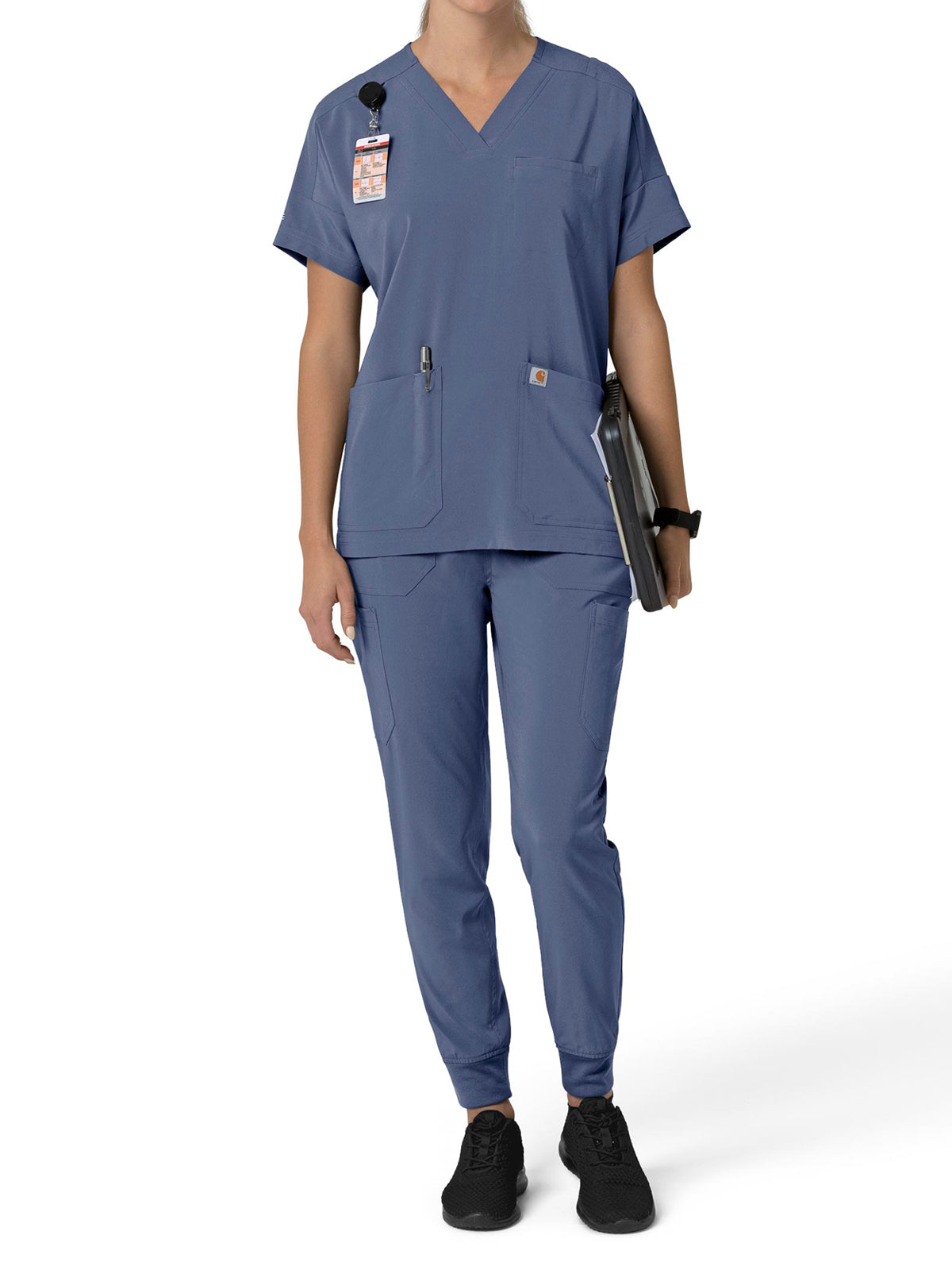 Upgrade your wardrobe with Carhartt's Women's Oversized V-Neck Scrub Top. It features pockets for functionality and moisture-wicking fabric that keeps you cool and dry all day long.