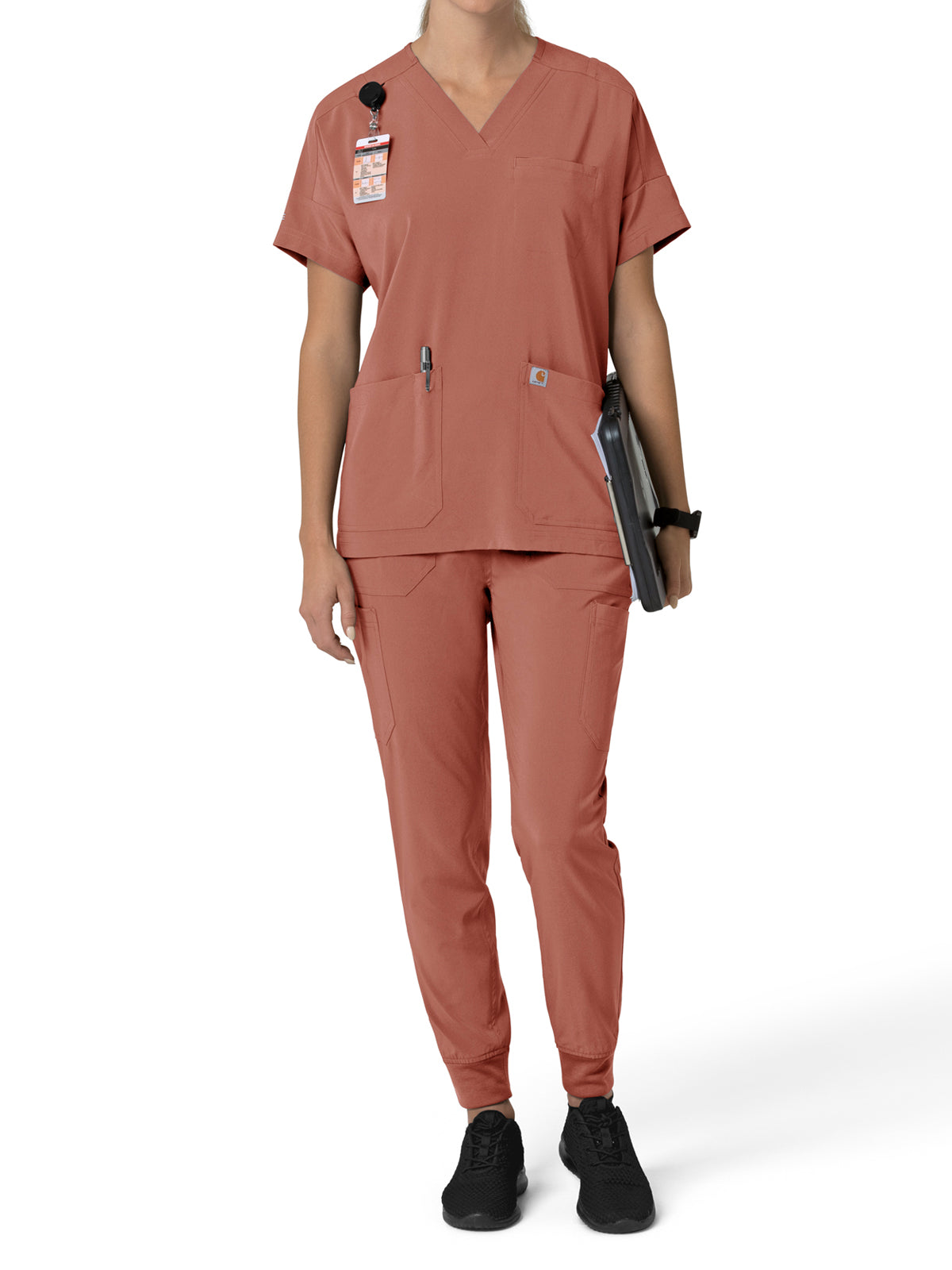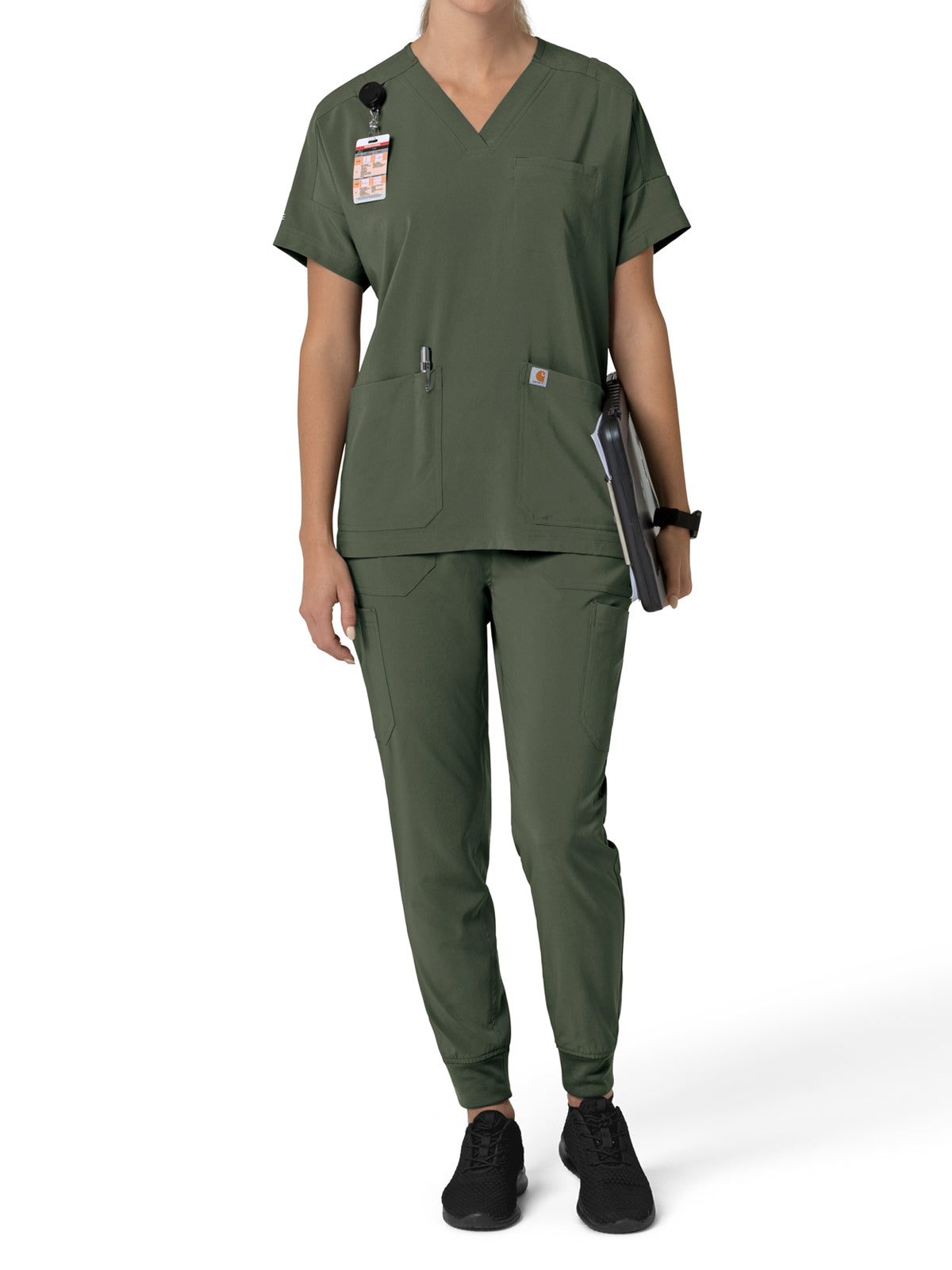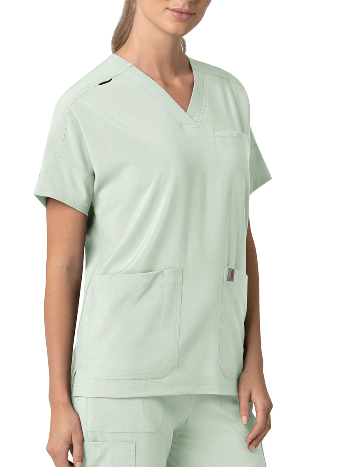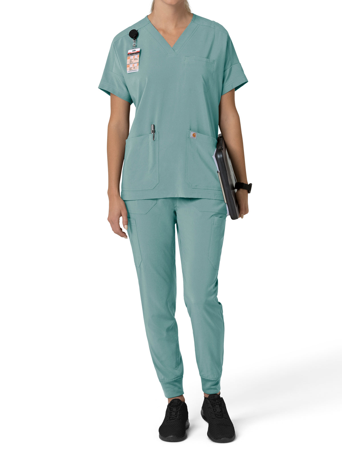Upgrade your wardrobe with Carhartt's Women's Oversized V-Neck Scrub Top. It features pockets for functionality and moisture-wicking fabric that keeps you cool and dry all day long.