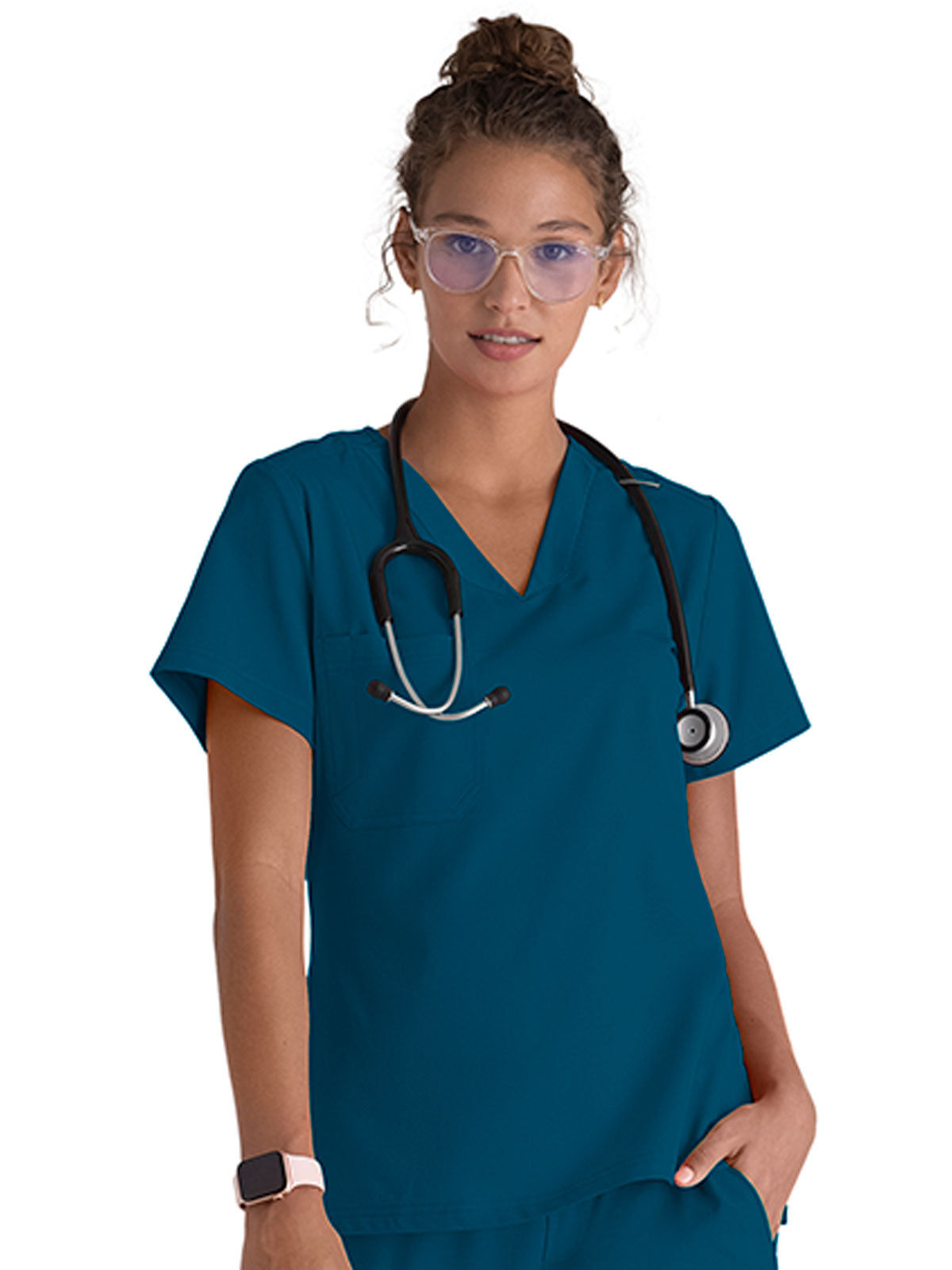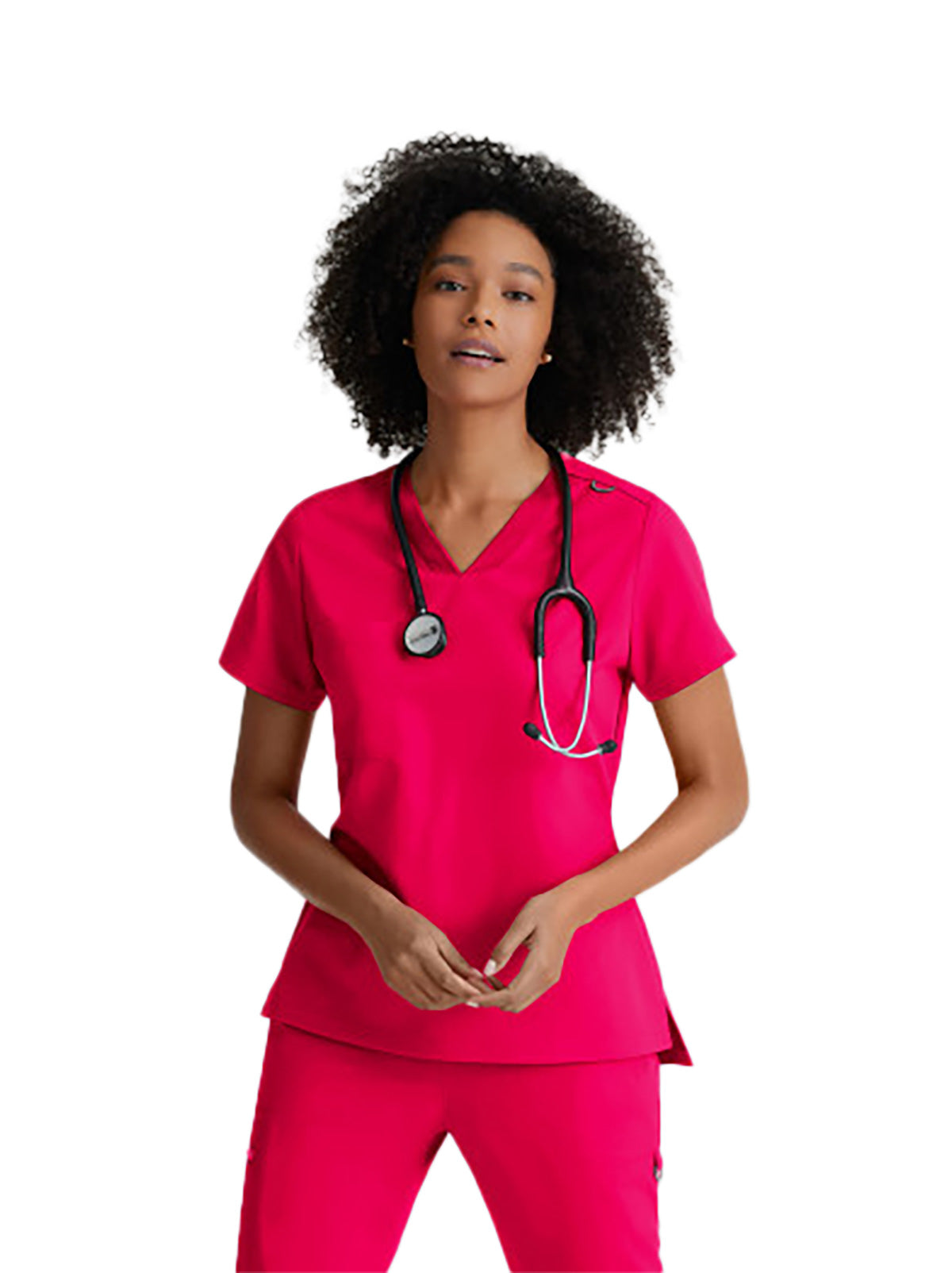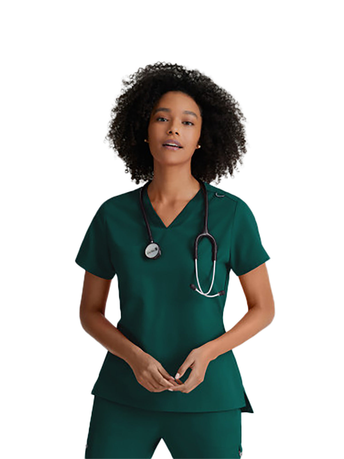 When working in the healthcare sector, where every little detail counts, your uniform is a vital component of your daily routine. Wearing the Grey's Anatomy Emma Top gives you flexibility in terms of comfort, practicality, and style. Whether you prefer the freedom of an untucked look or the refined elegance of a tucked-in design, this top is your flexible partner in the healthcare sector.