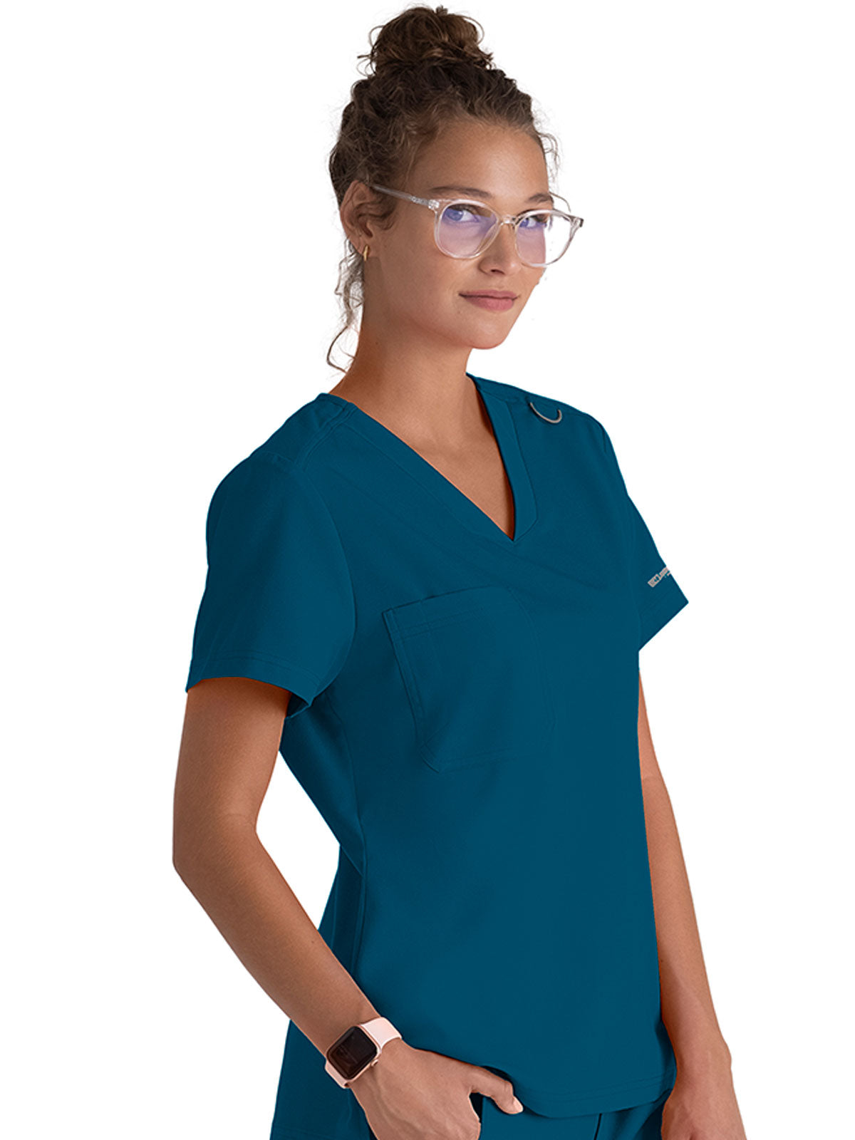 The Grey's Anatomy Emma Top is a product from a company with a reputation for creativity and attention to quality. For years, Grey's Anatomy has been a dependable name in the medical wear market, regularly supplying uniforms that effortlessly combine fashion and usefulness.