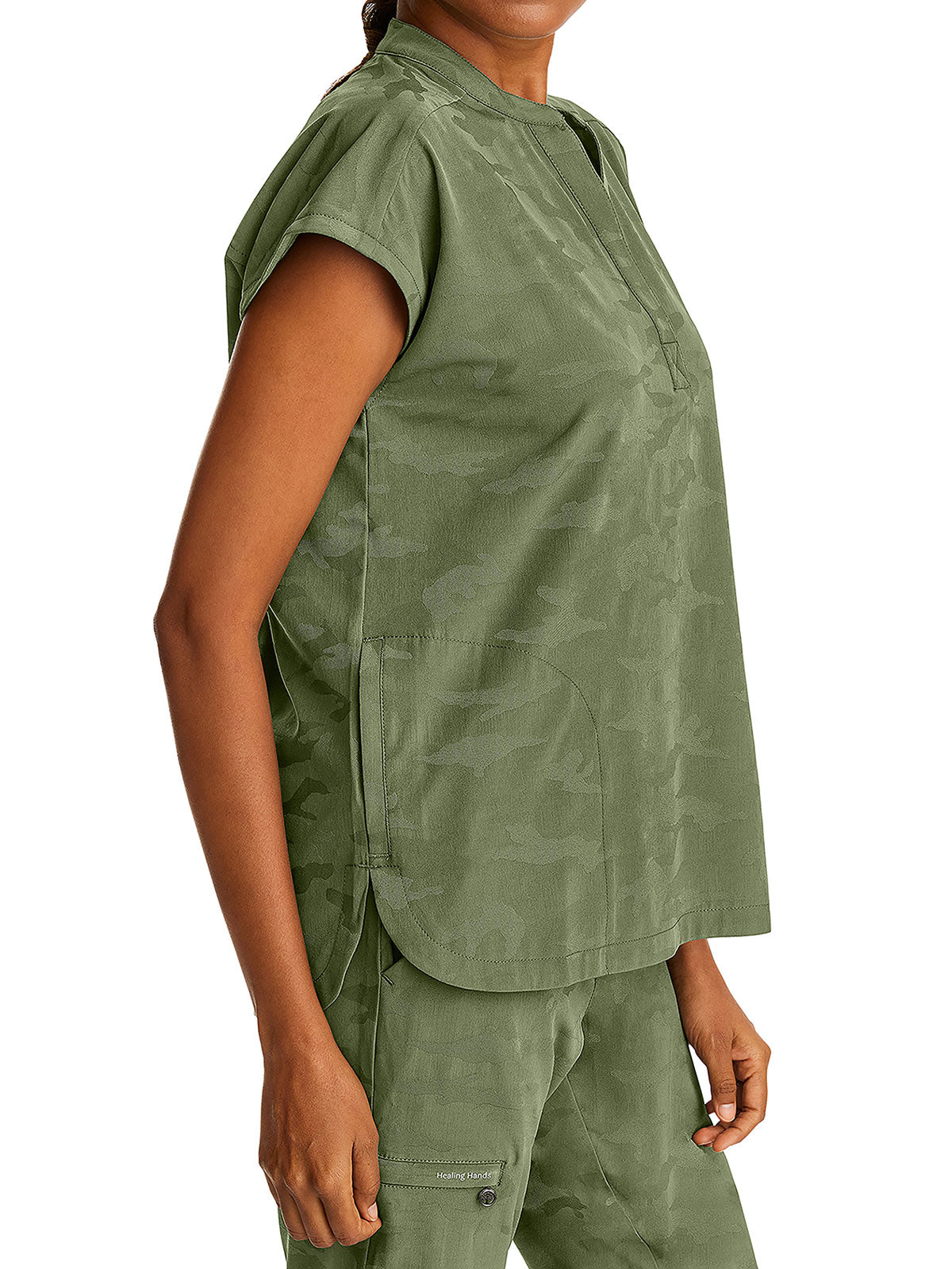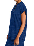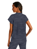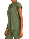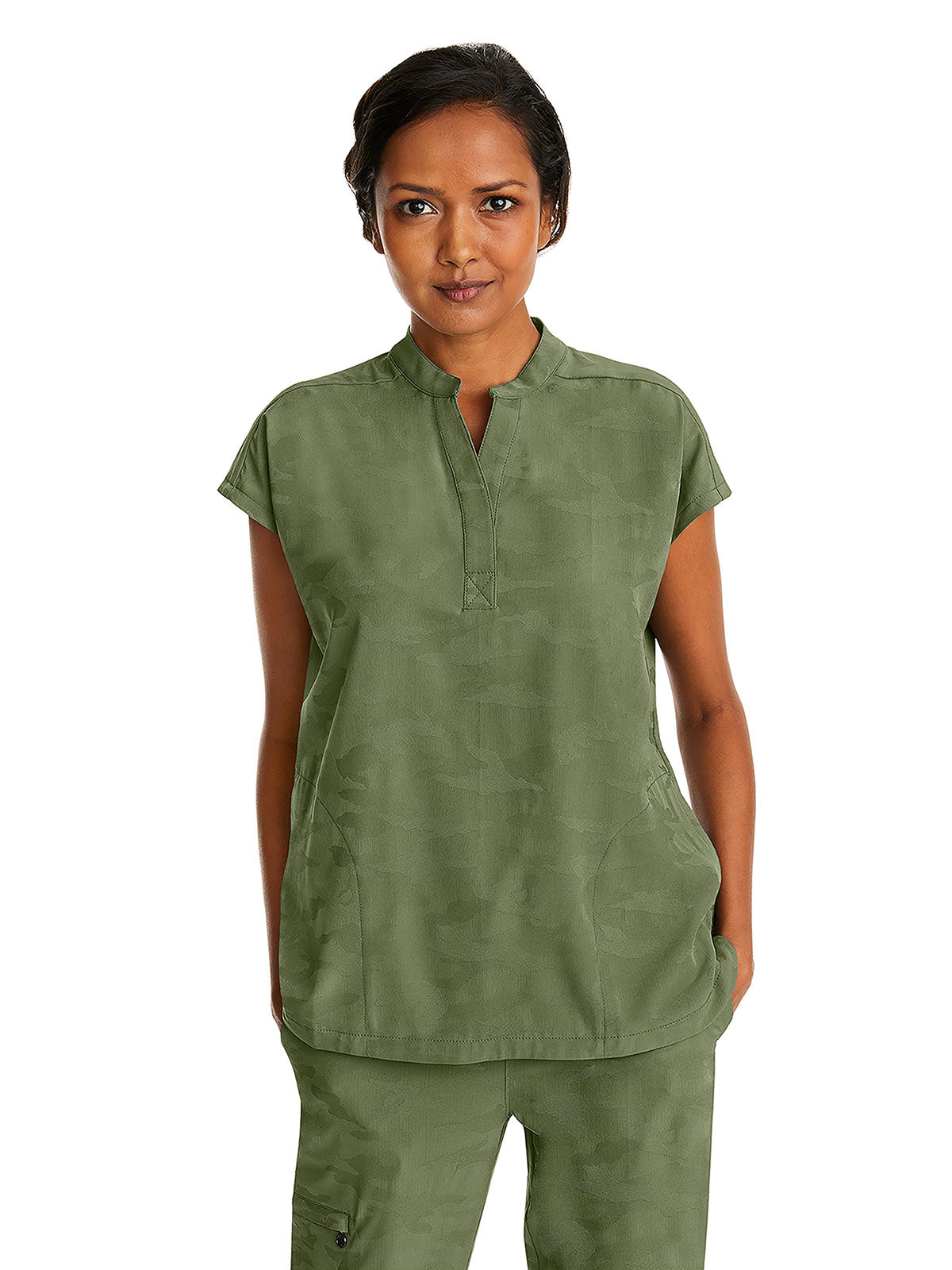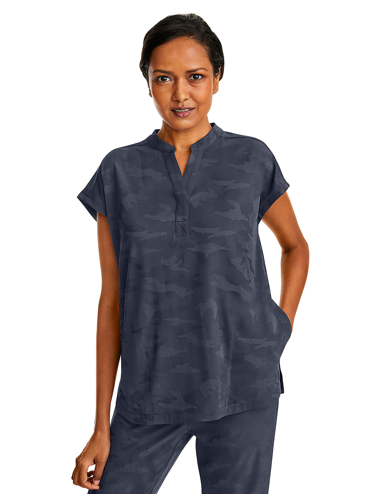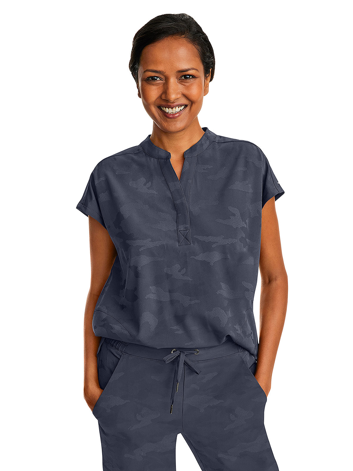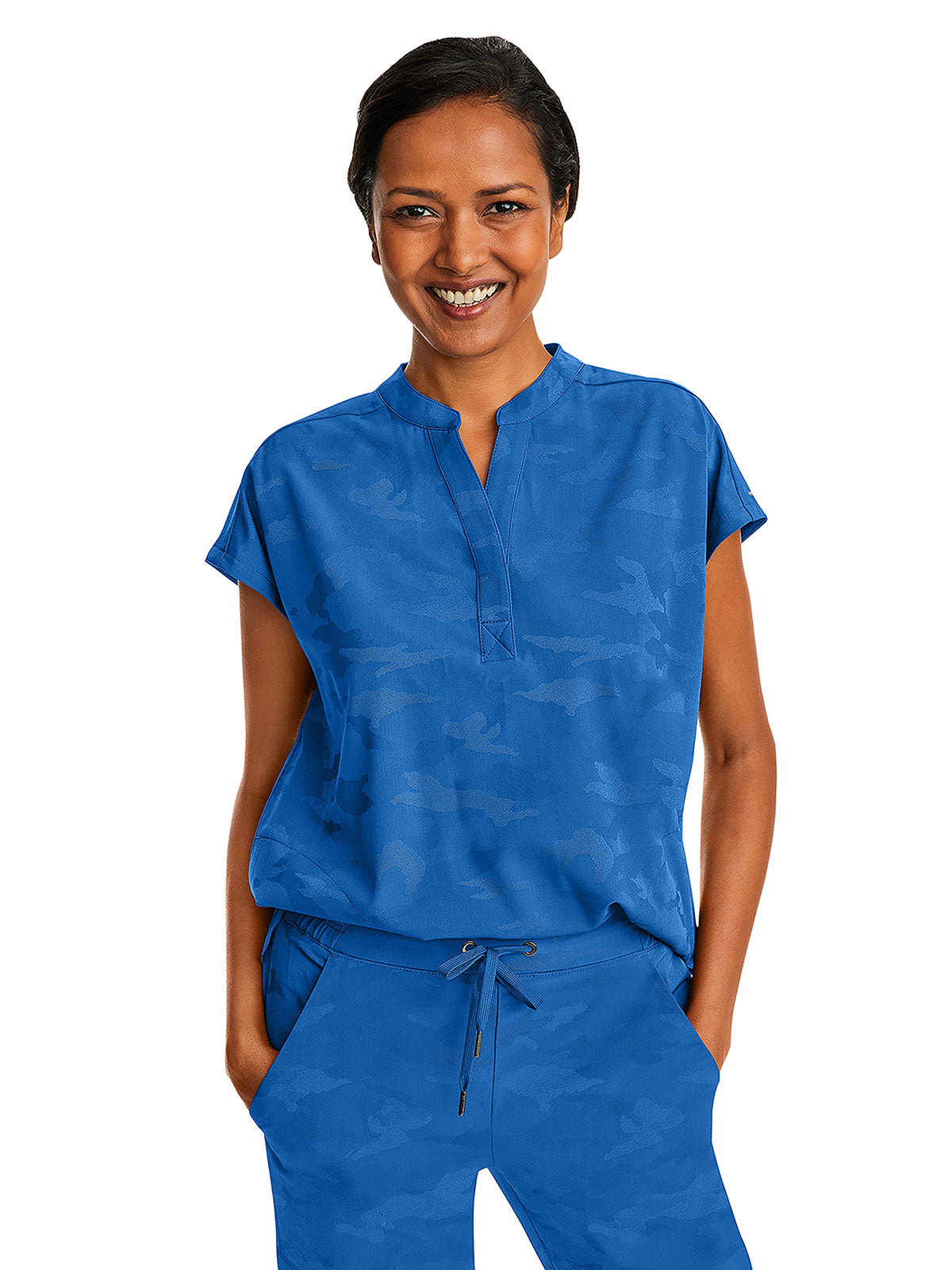 - Mandarin Collar Scrub Top With One-Button Half-Placket