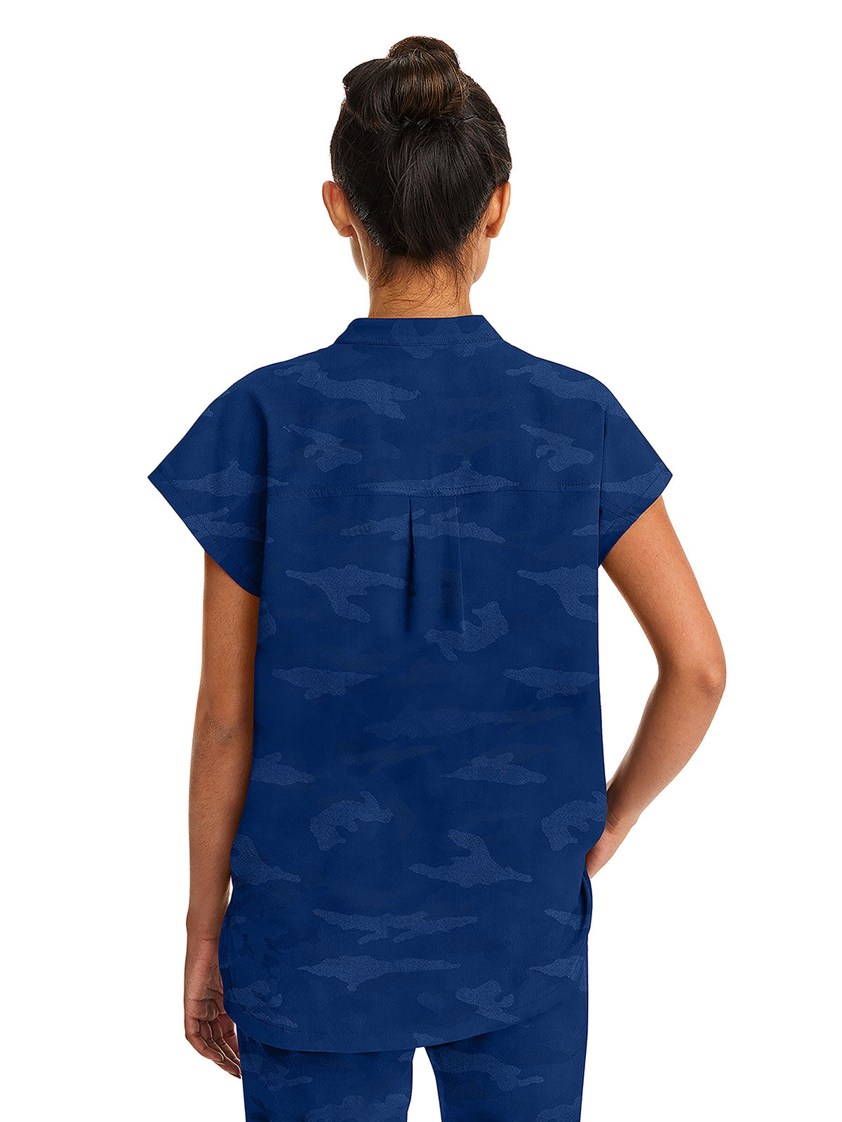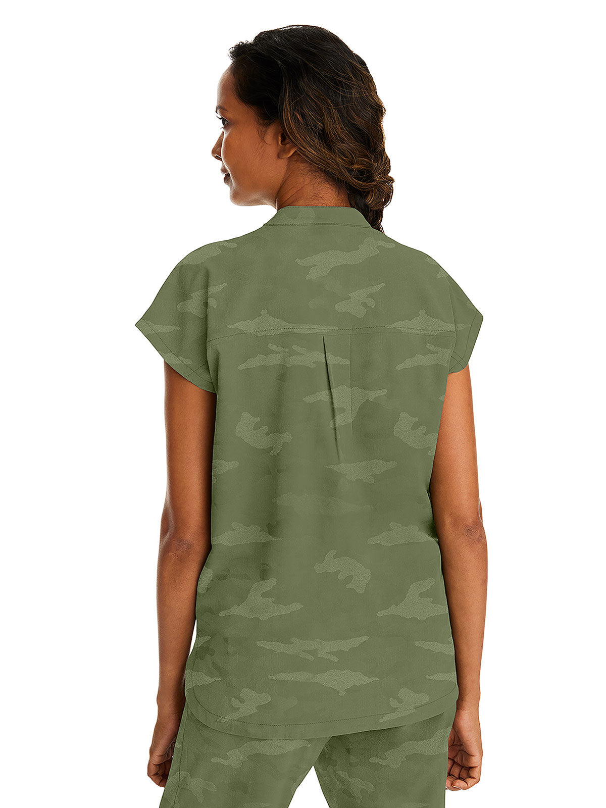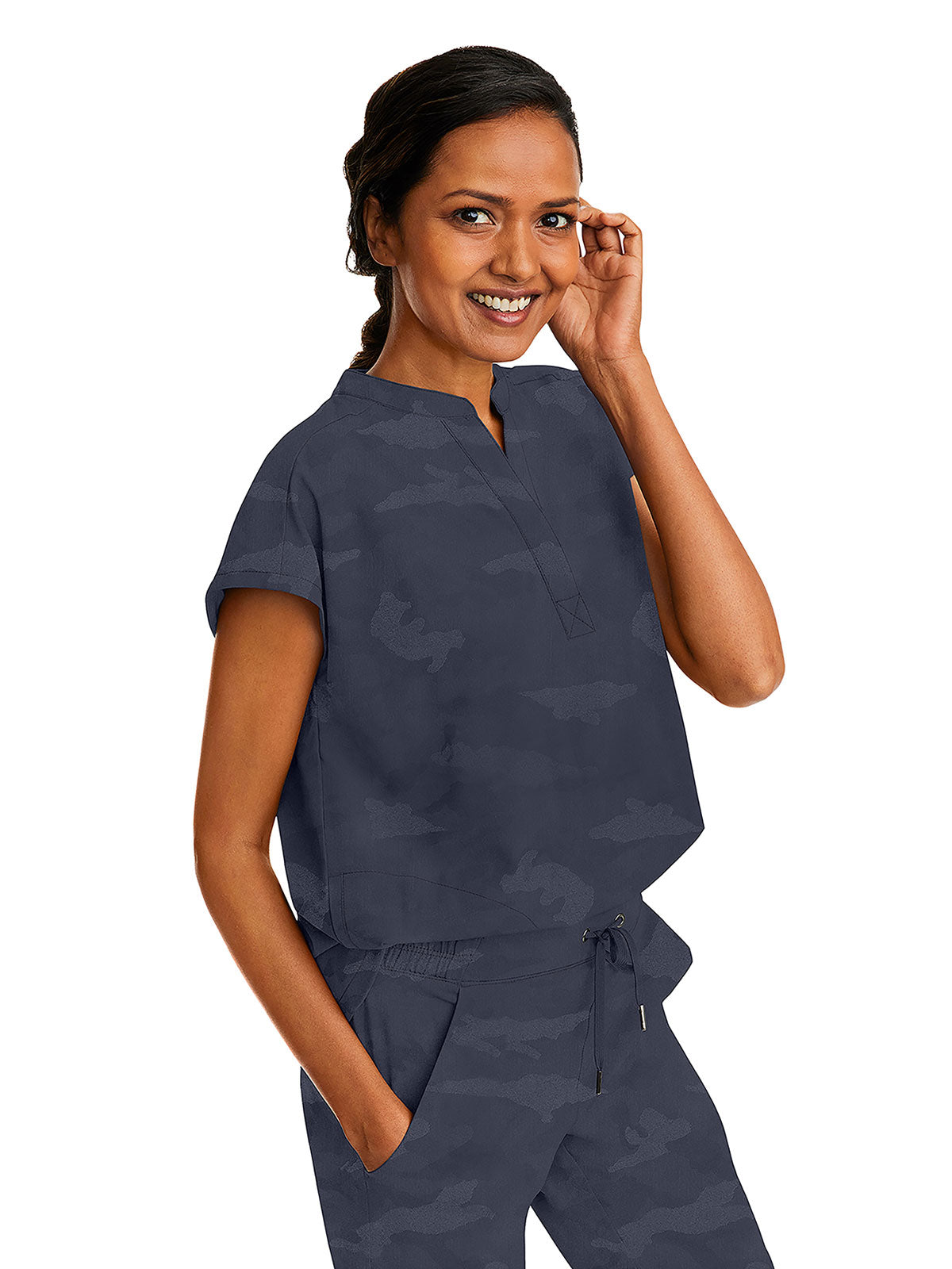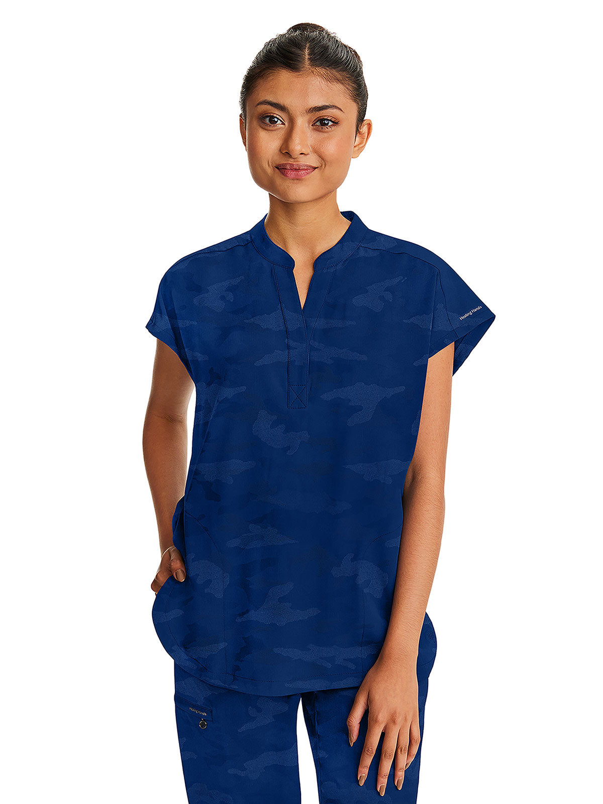 - Mandarin Collar Scrub Top With One-Button Half-Placket