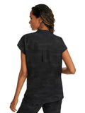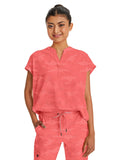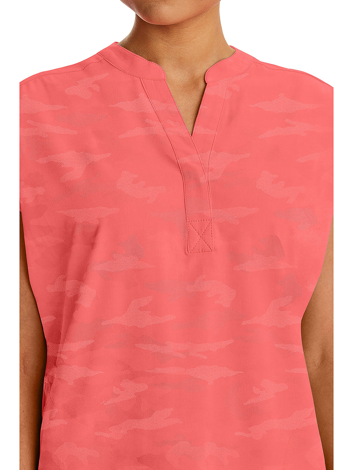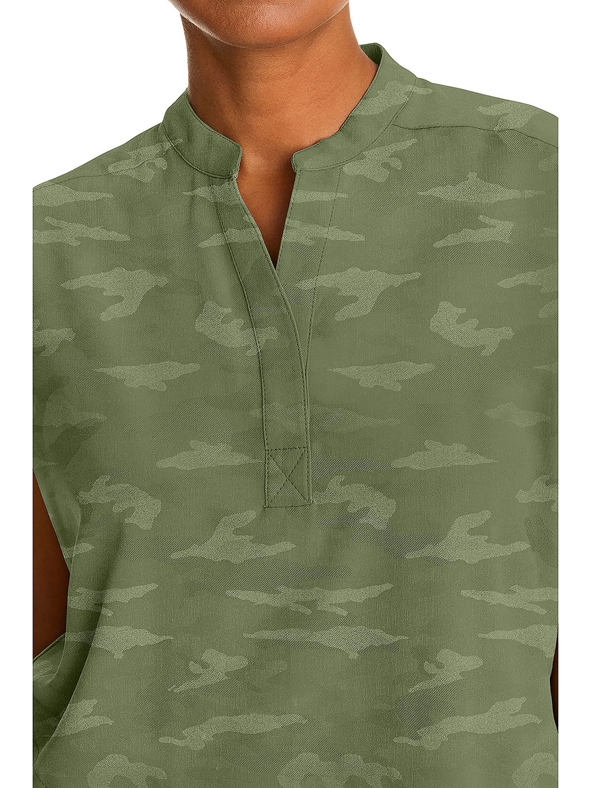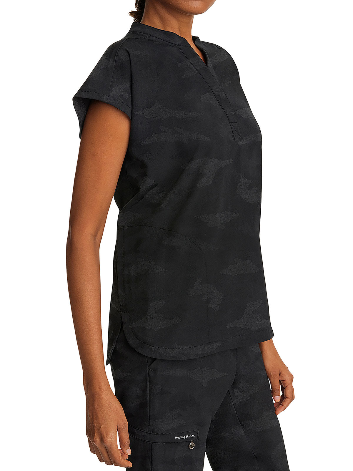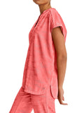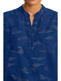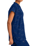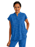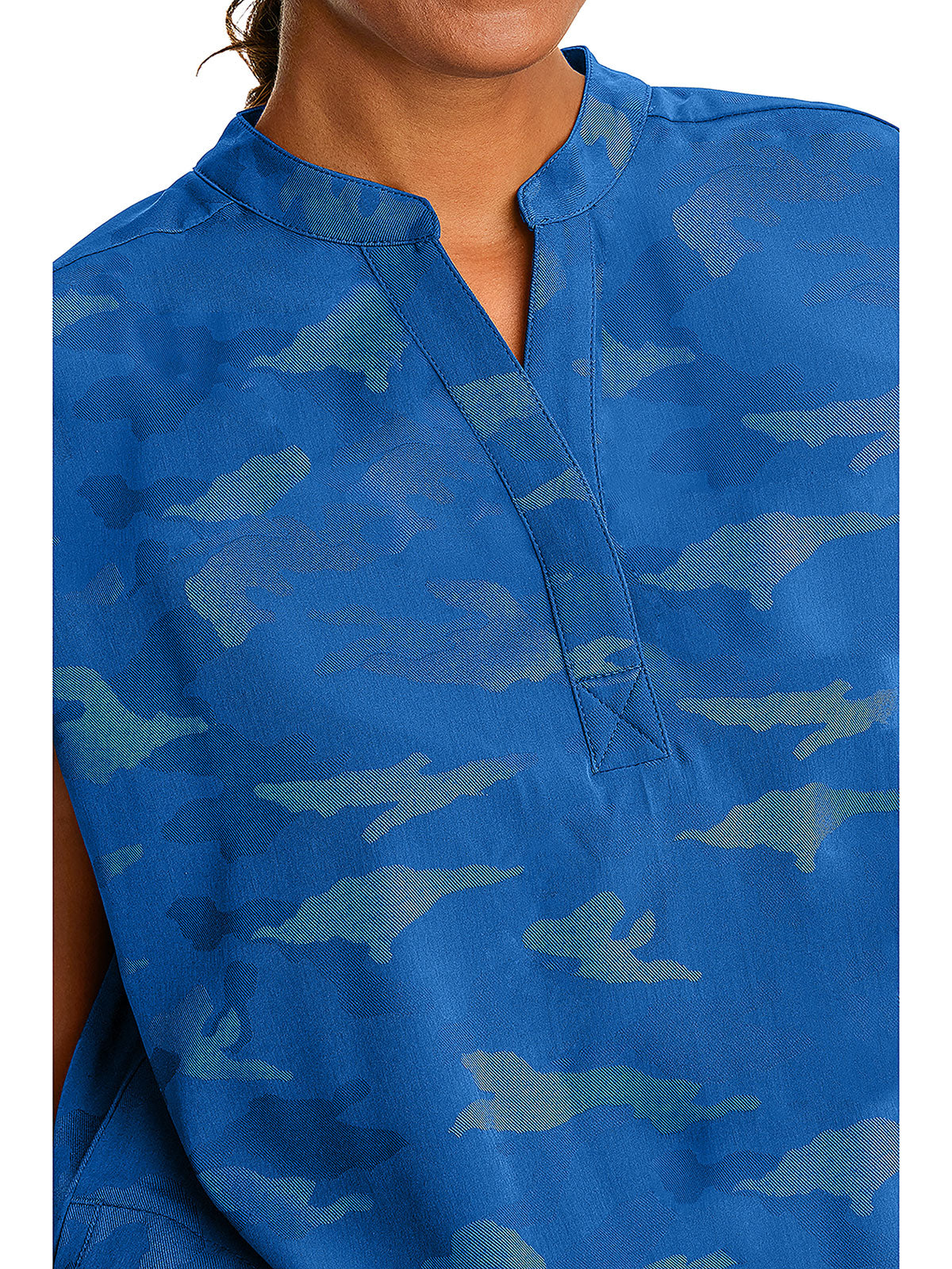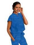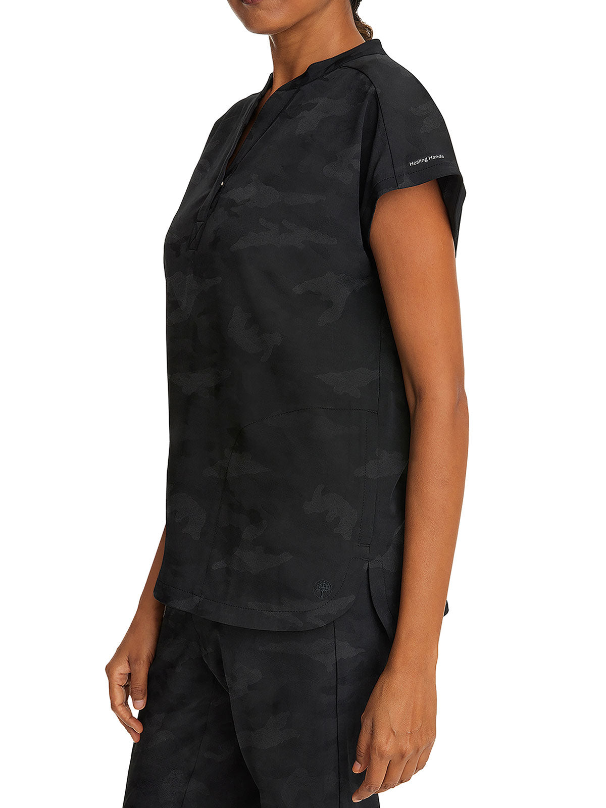 - Mandarin Collar Scrub Top With One-Button Half-Placket