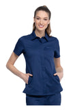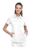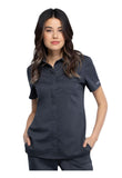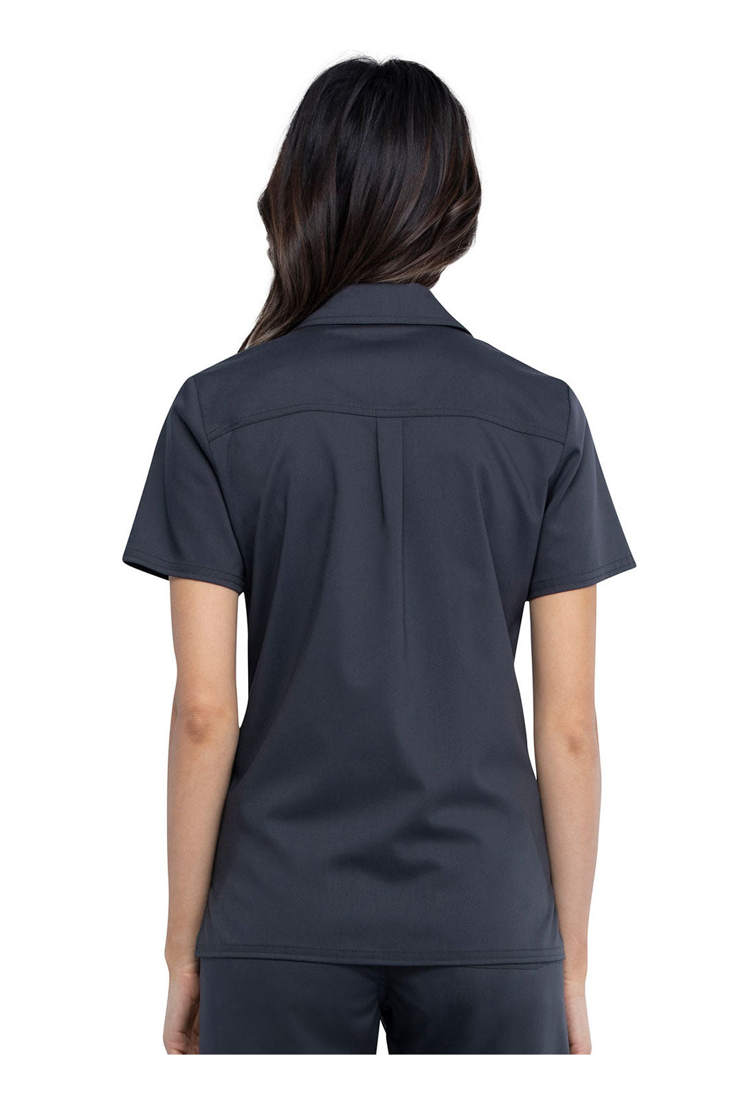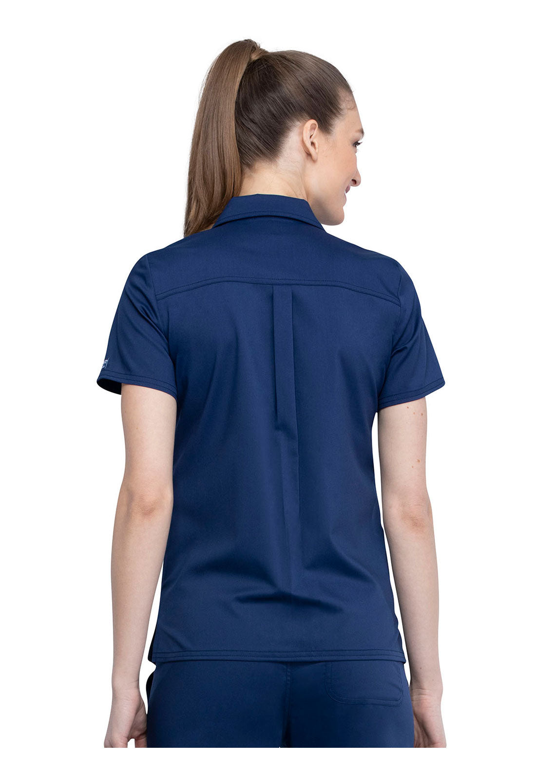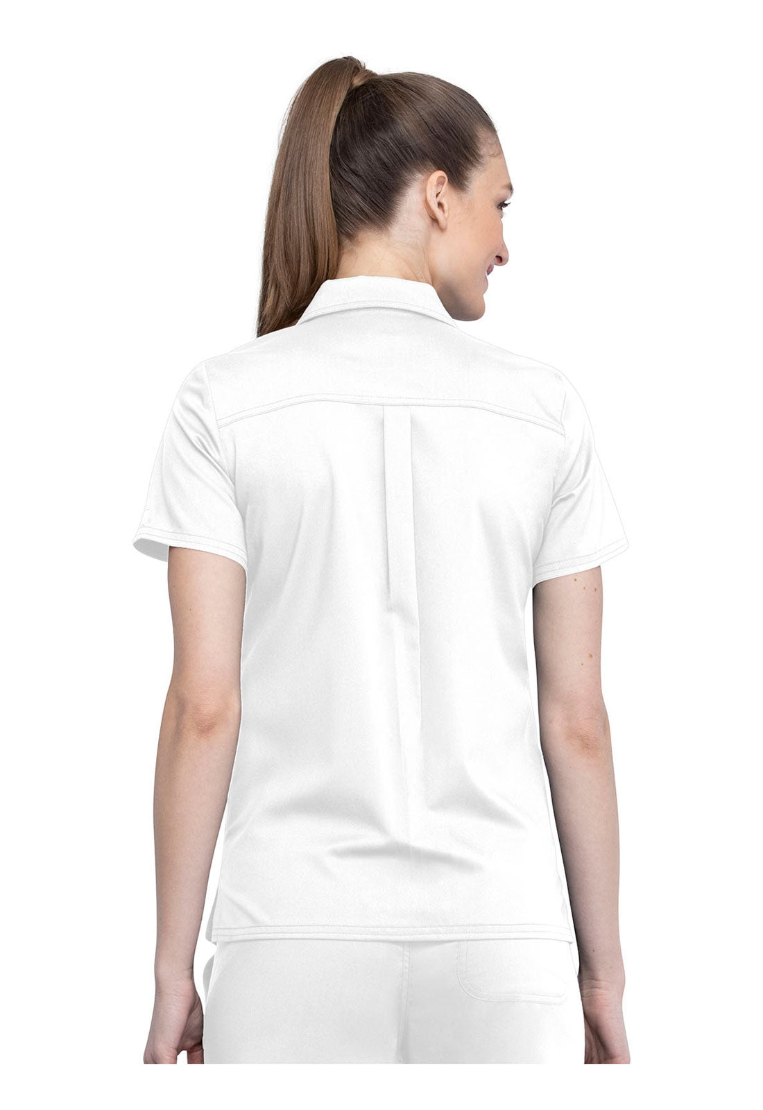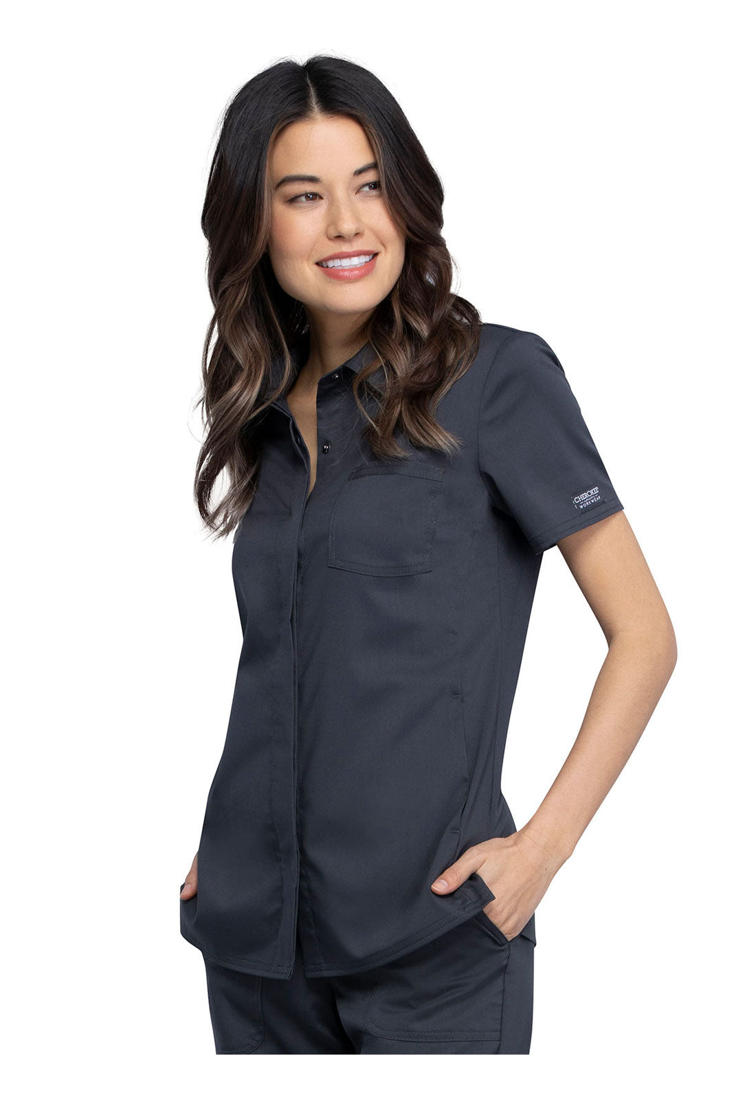 This Modern Classic Fit collared shirt is clean, chic and offers a lot of storage space. Two deep side seam pockets allow easy access to your belongings and a chest pocket adds to the tailored look. An added back pleat and hidden snap front placket create an effortlessly classic top. Center back length: 26"