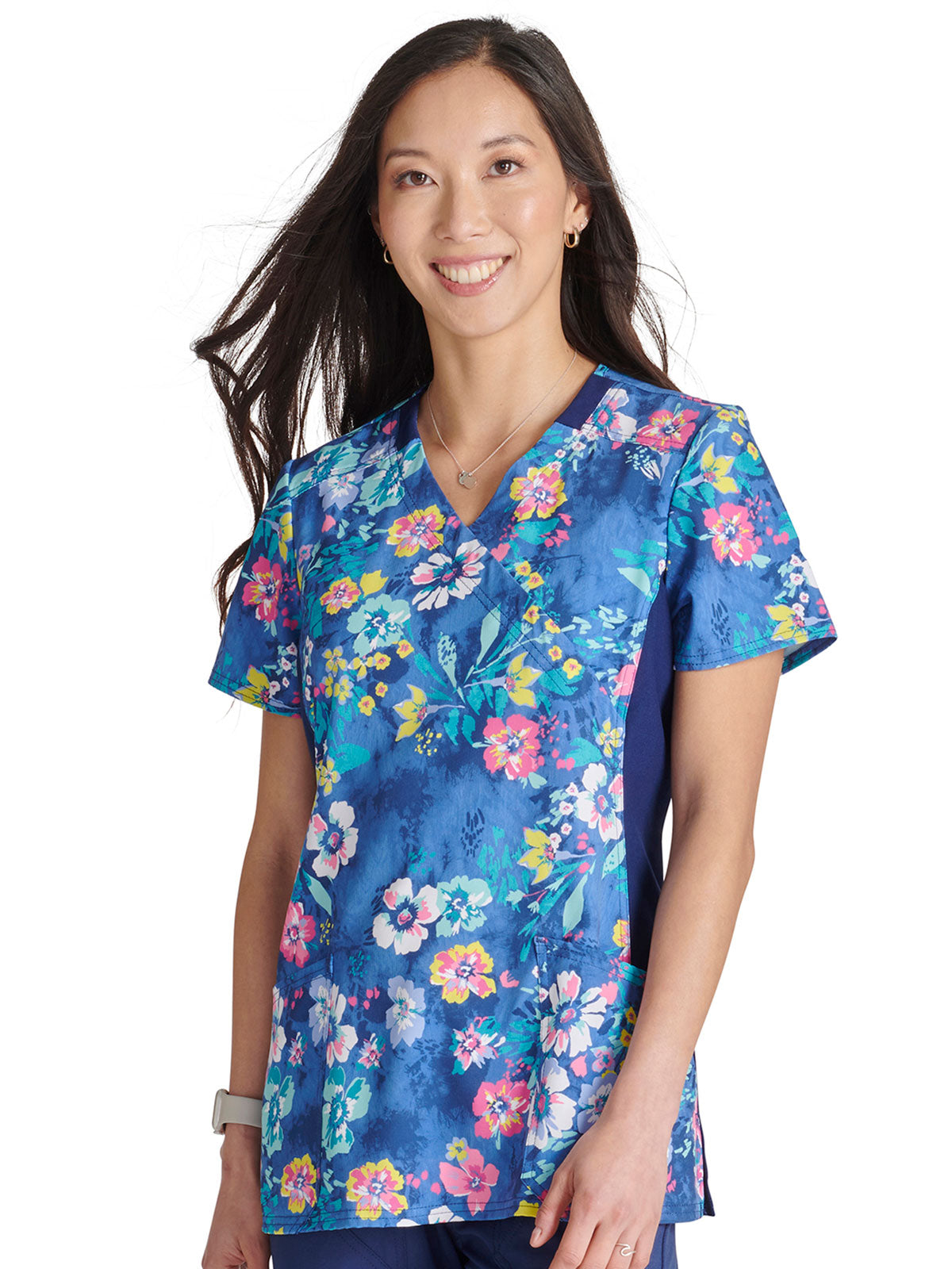Iflex - Women's Mock Wrap Knit Panel Print Top