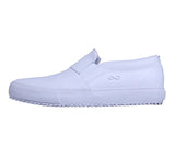 In casually cool styles for men and women, the slip-on leather Rush is the perfect work-to-weekend shoe. Genuine leather uppers, oil and slip-resistant rubber outsole, an excellent removable shock absorbing latex-free polyurethane insole with arch support and heel cupping for all day comfort and Certainty® antimicrobial lining inside each shoe to reduce odor causing bacteria. FEATURES 100% genuine leather upper. Hidden foam midsole provides exceptional cushioning that's different from mainstream vulcanized shoes. Oil and Slip-Resistant Rubber outsole, for better protection. Removable shock absorbing latex-free polyurethane insole with arch support and heel cupping for all day comfort. Certainty® antimicrobial insole and interior lining to reduce odor-causing bacteria. Heel height: 1" Collection: Cherokee Infinity Footwear Closure: Step In Insole: Latex Free PU W/ Arch Support Midsole: Hidden EVA Foam Outsole: Oil & Slip