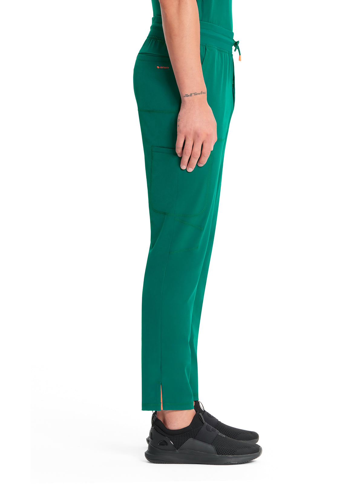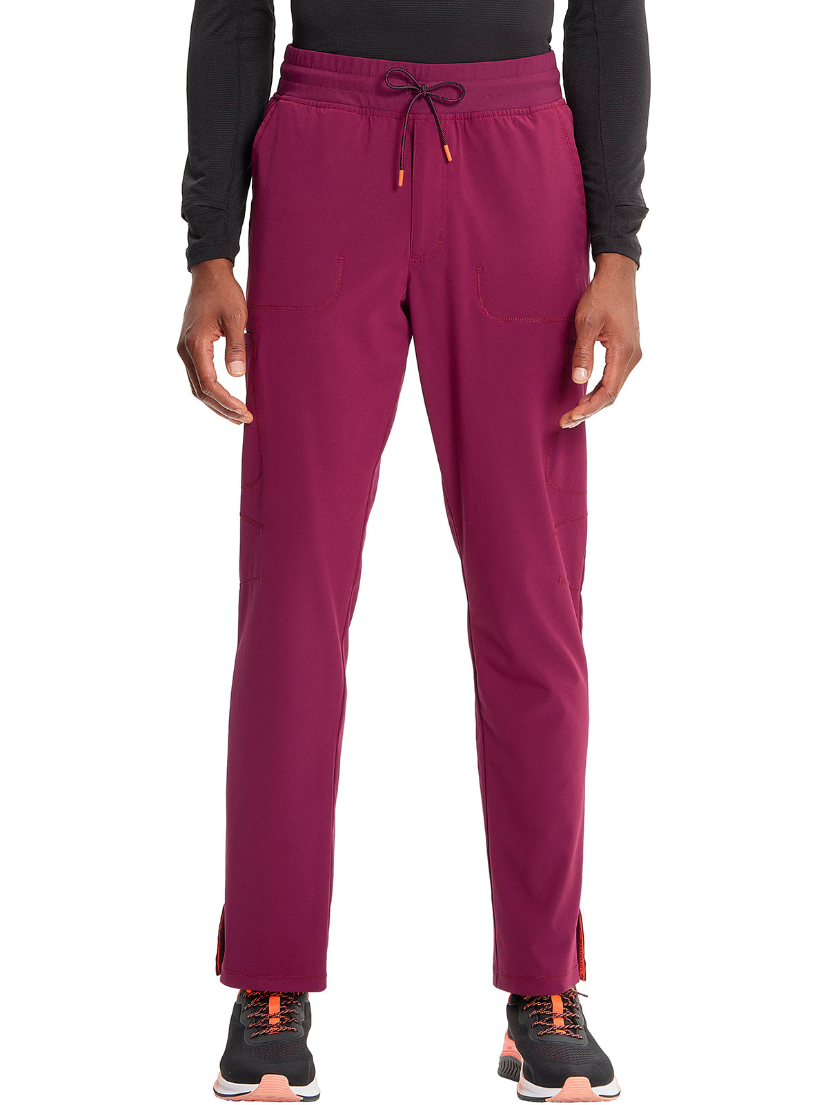 This Men's fit mid rise zip fly pant has a dyed-to-match rib-knit waistband reinforced with inside elastic and finished with a tipped drawstring. There are six pockets: two front pockets with dyed-to-match rib-knit insets at the corners, two welt cargo pockets, and two welt back pockets with signature contrast mesh pocket bags. Other features include knee darts and a curved back yoke seam. Side vents with logo twill tape lining complete this pant. Straight leg, 14" opening. Inseam 31"