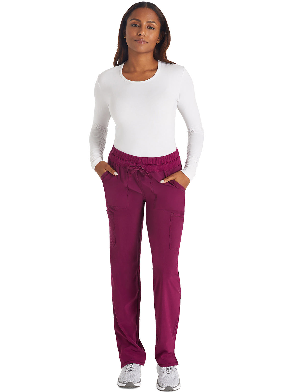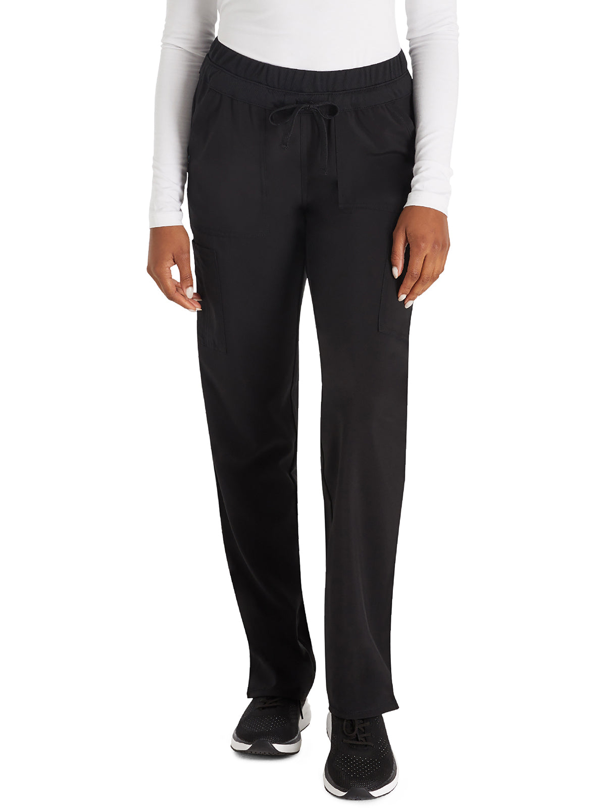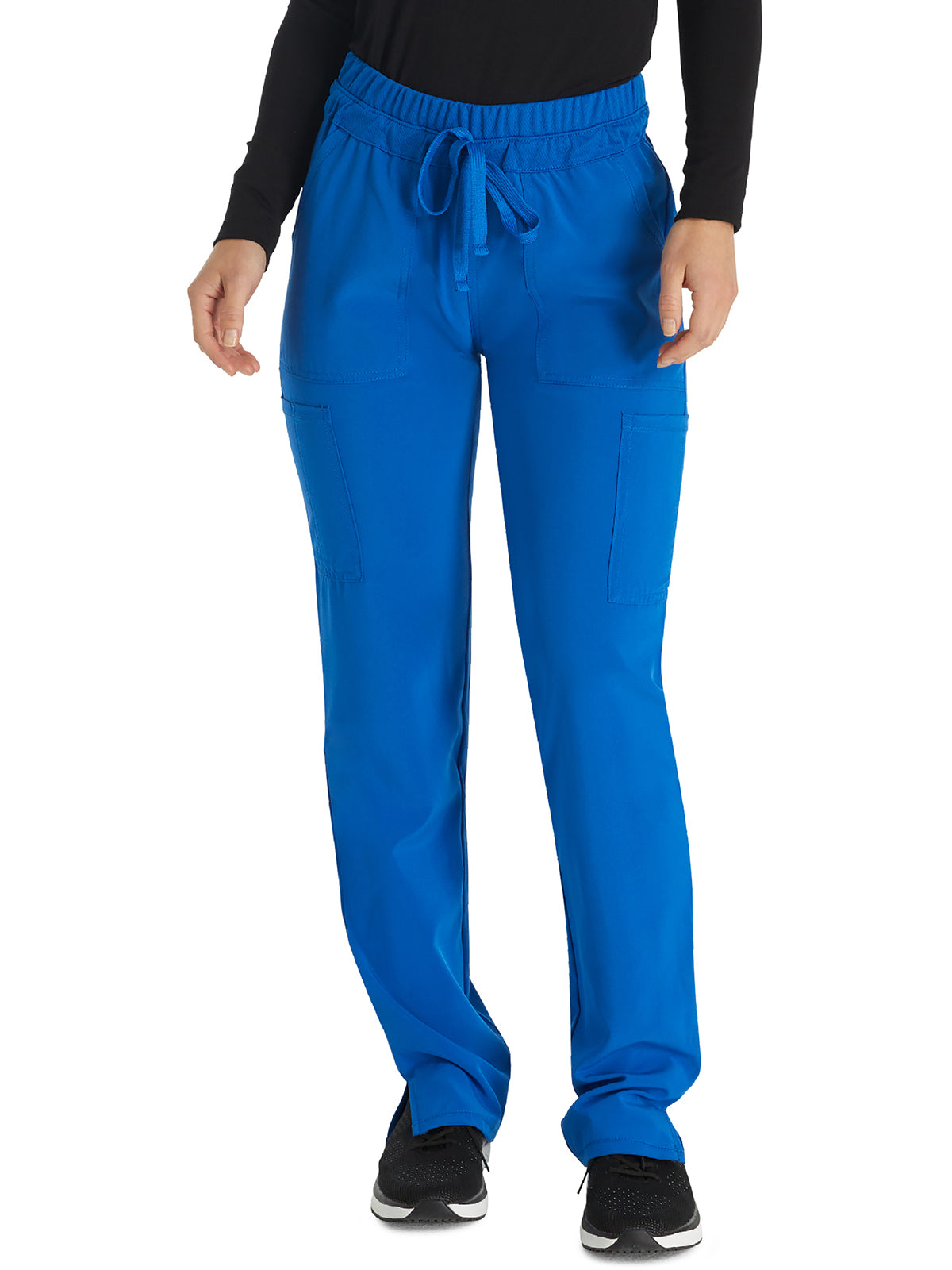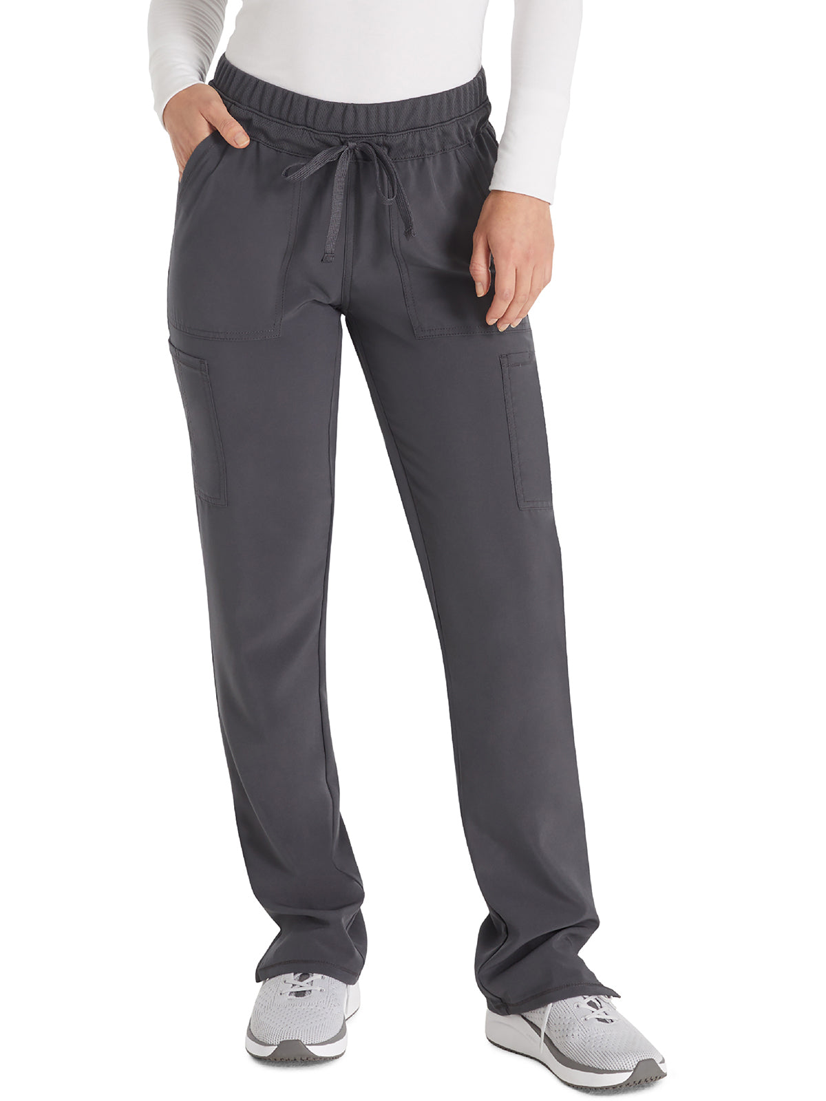 This Contemporary fit natural rise pant has a knit mesh interior elastic waistband with drawstring. There are four pockets: two front pockets and two cargo pockets. Other features include a pen slot on the wearer's left cargo pocket and side vents. Straight leg, 14" opening. Inseam: 30 1/2".