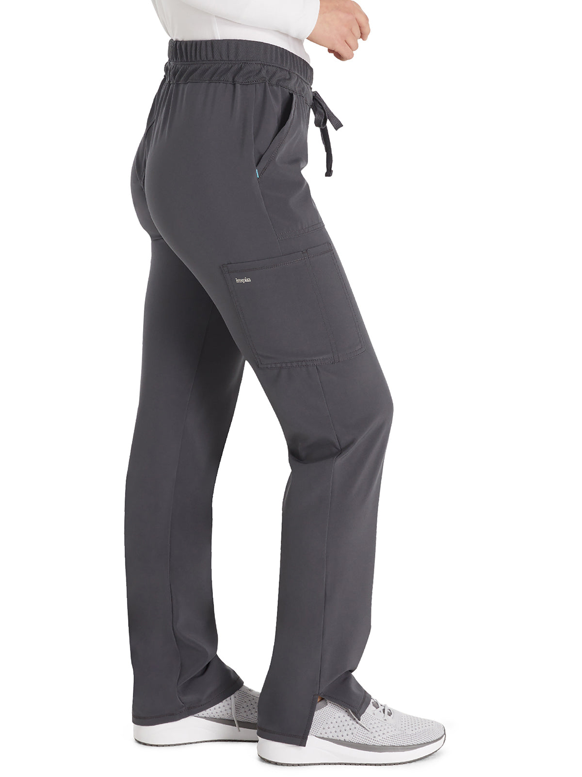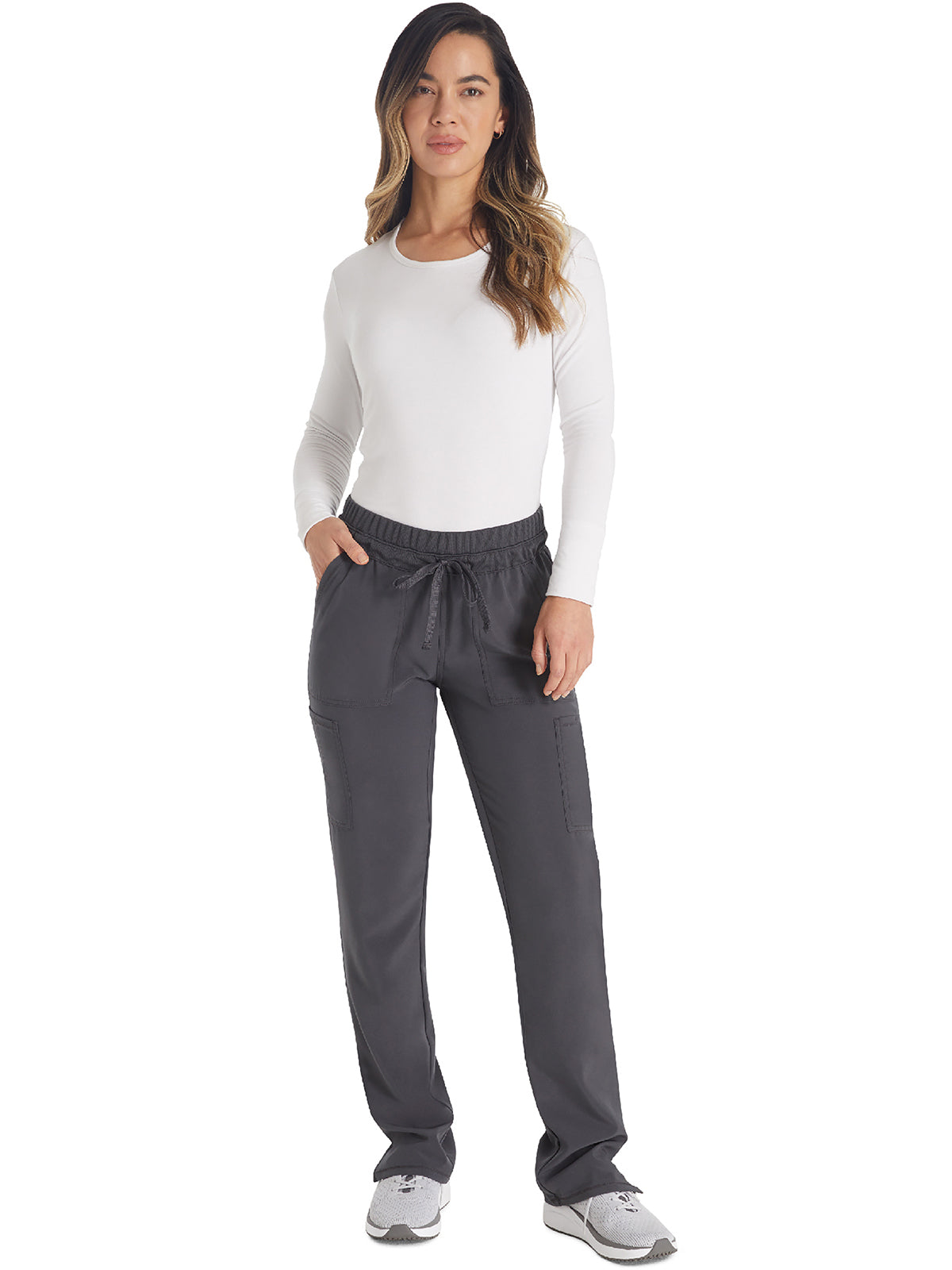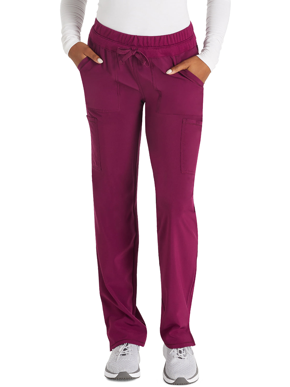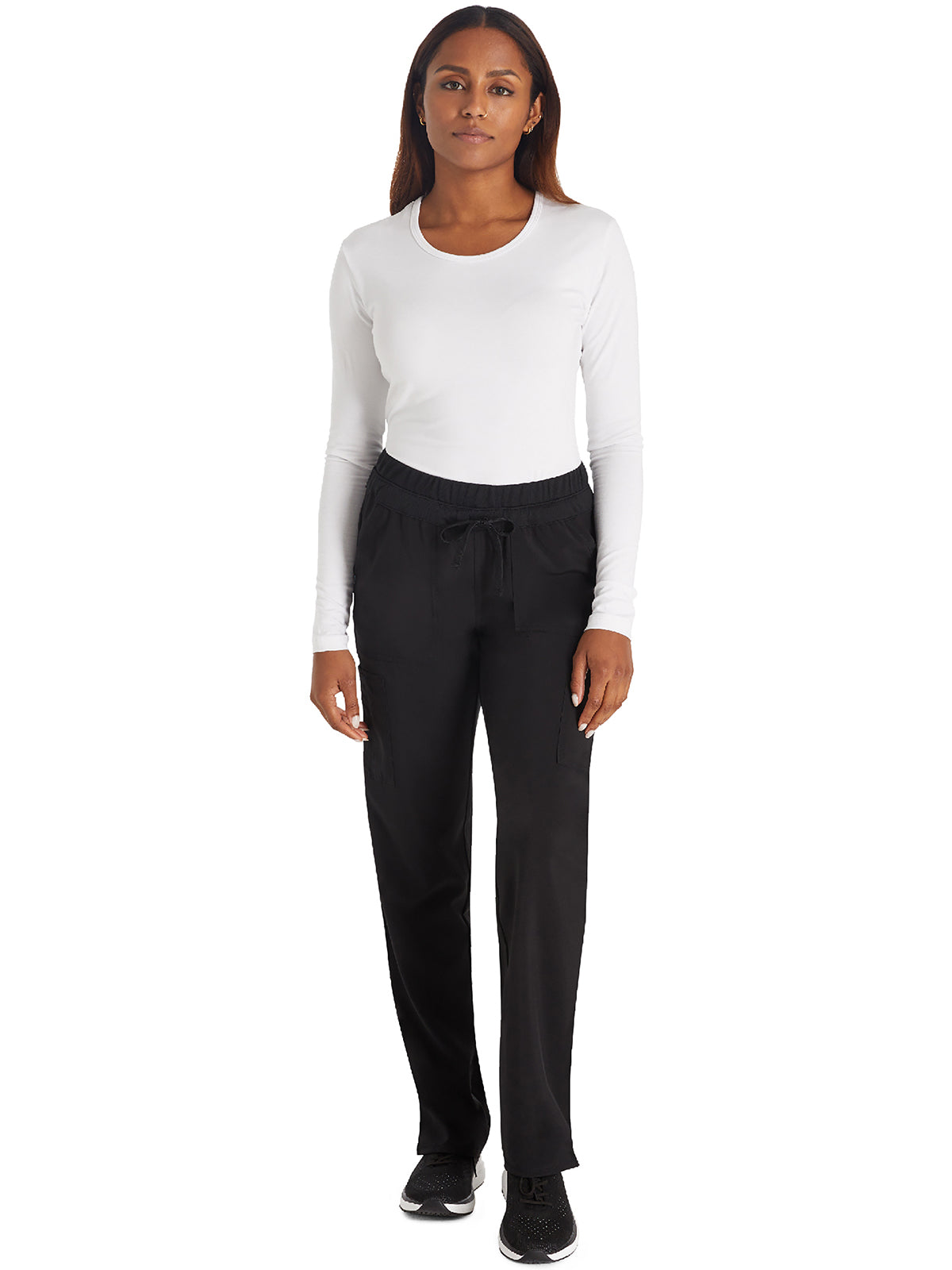 This Contemporary fit natural rise pant has a knit mesh interior elastic waistband with drawstring. There are four pockets: two front pockets and two cargo pockets. Other features include a pen slot on the wearer's left cargo pocket and side vents. Straight leg, 14" opening. Inseam: 30 1/2".